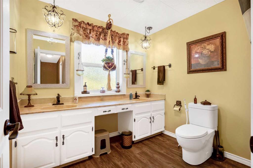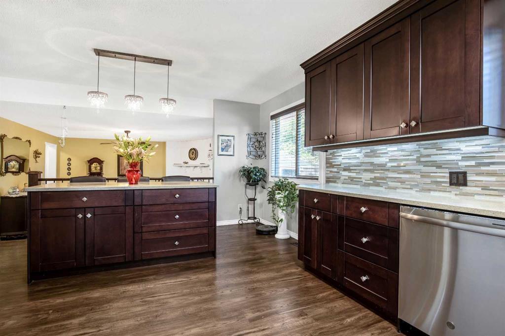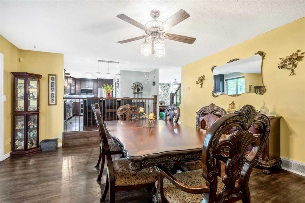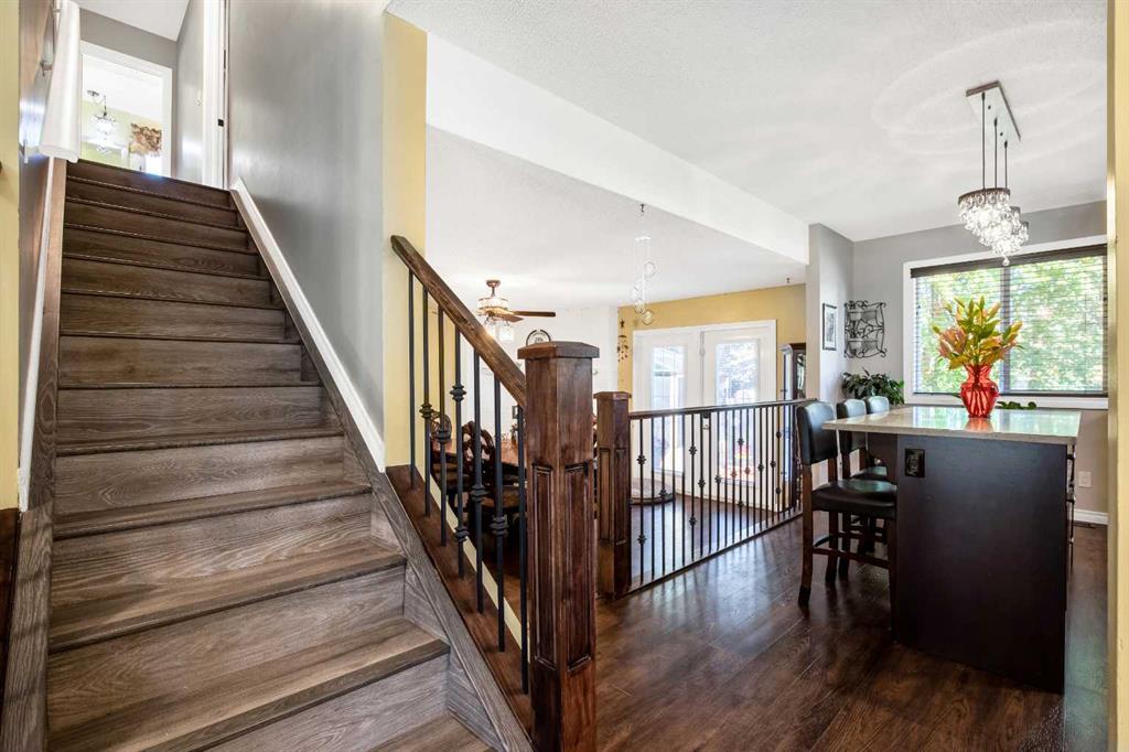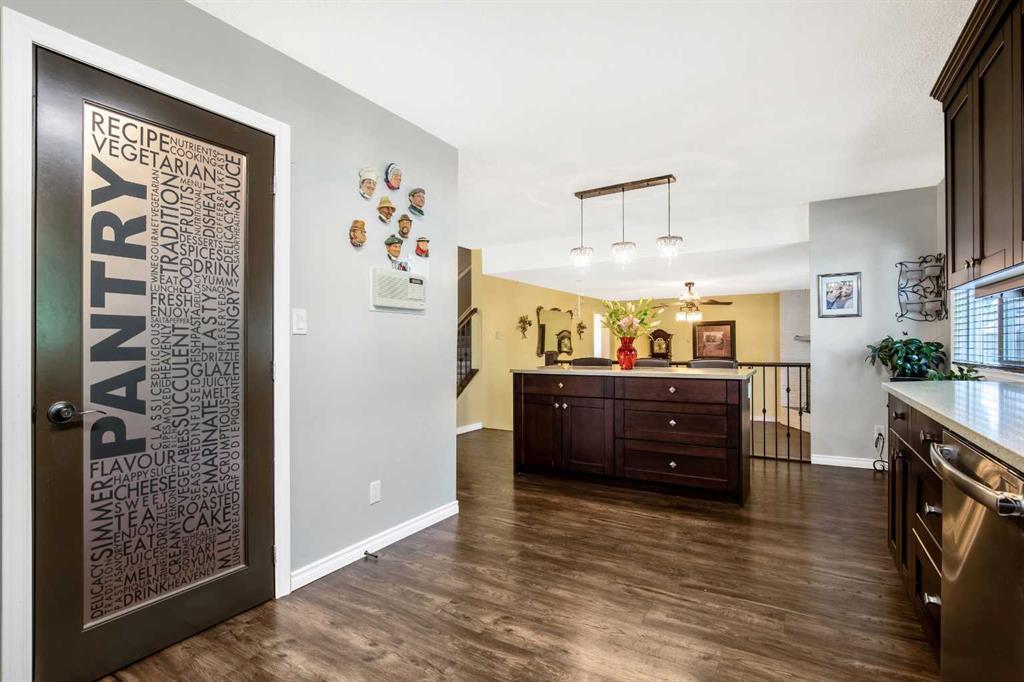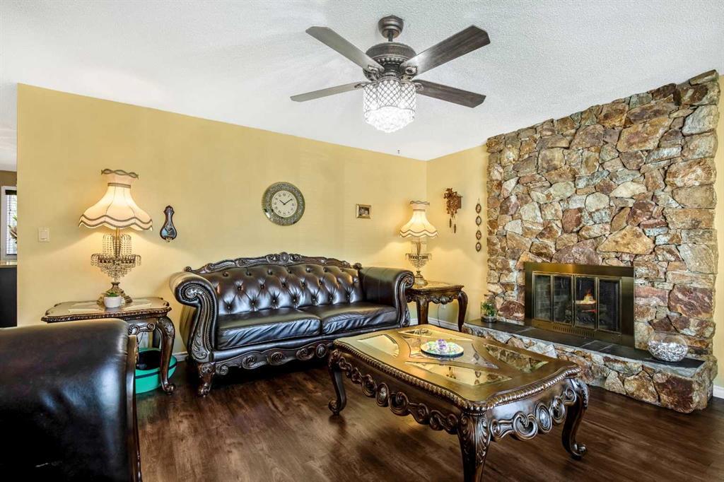 Welcome to this charming 2 storey home located in the quaint town of Carstairs! This lovely home boasts a new kitchen, complete with gorgeous quartz countertops and sleek stainless steel appliances, as well as a large pantry for all your storage needs. With 3 wood burning fireplaces, each with gas log igniters, you can cozy up in the sunken living room or enjoy the warmth in any of the other spacious rooms.This home features 1 bedroom, 1 office and laundry all on the main floor, perfect for those who work from home or need extra space for guests or those that need a main floor bedroom. The partially finished basement provides even more potential for additional living space with another bedroom and a living room with a fireplace. There is a huge storage room with a cold room to store all your canned goods! Upstairs, you'll find 3 more bedrooms, each with ample space and natural light. The primary bedroom comes complete with a large walk in closet and a 3 pc ensuite, ensuring that you'll have all the space and privacy you need.The large corner lot is a wonderful place to relax with a solarium on the deck, and the double attached garage along with RV storage offers plenty of room for vehicles and storage. Located across from a park/green space, this house is perfect for those who enjoy the outdoors. This house offers over 2000 sq ft of living space, making it perfect for families or anyone who needs a little extra room. Don't miss out on this wonderful opportunity to make this house your own! (id:22211)