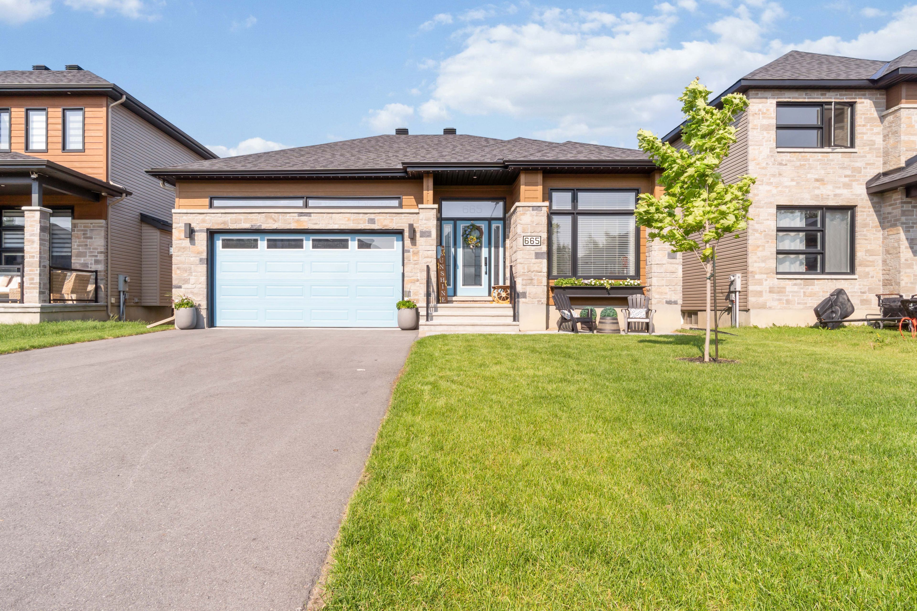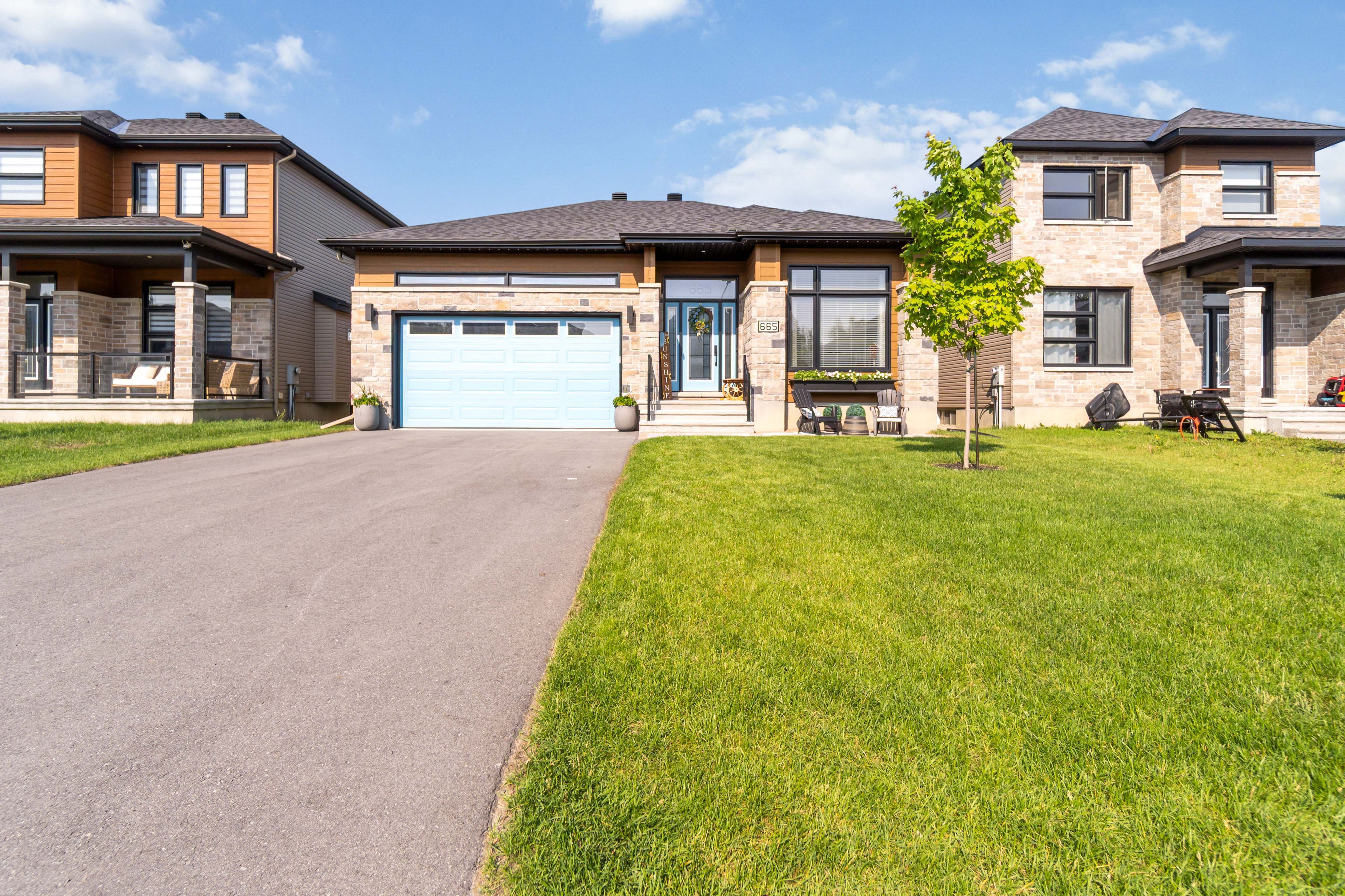 Modern 2022 Casselman Bungalow with Vaulted Ceiling, Designer Kitchen & Stunning Bathrooms Welcome to 665 Conservation Street, a beautiful 2022-built bungalow offering style, space, and versatility in the heart of Casselman. The bright open-concept main floor features a vaulted ceiling with wood beam-style detail, cozy gas fireplace, elegant dining area, and a designer kitchen with quartz counters, stainless steel appliances, large island, and custom lighting. The primary suite includes a large walk-in closet and an impressive spa-inspired ensuite with double vanity and oversized glass shower. The fully finished lower level offers a spacious family room, additional bedrooms, a sleek modern full bathroom, and ample storage. Perfect for extended family or entertaining. Ecowater Reverse Osmosis Drinking water system and Ecowater 3700 Series Water Refining system installed on this home. There is no carpet throughout the home, offering a clean, low-maintenance living environment. Outside, enjoy a fully fenced private backyard and a quiet street just minutes from parks, schools, shopping, and Casselman Arena, with quick Hwy 417 access for an easy Ottawa or Montreal commute. A rare blend of modern comfort and small-town charm/ book your showing today!