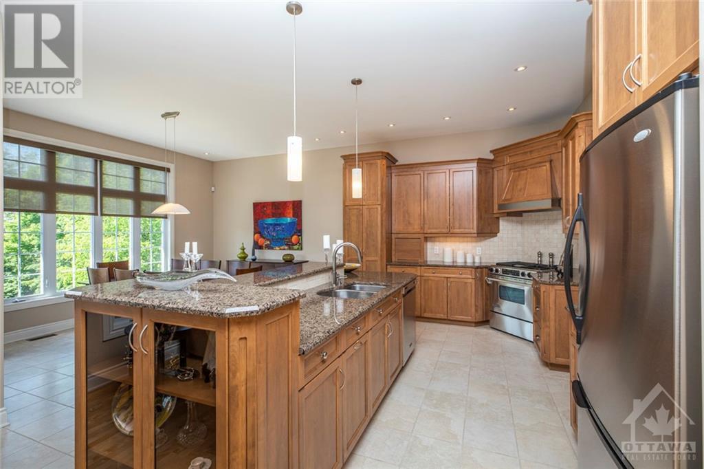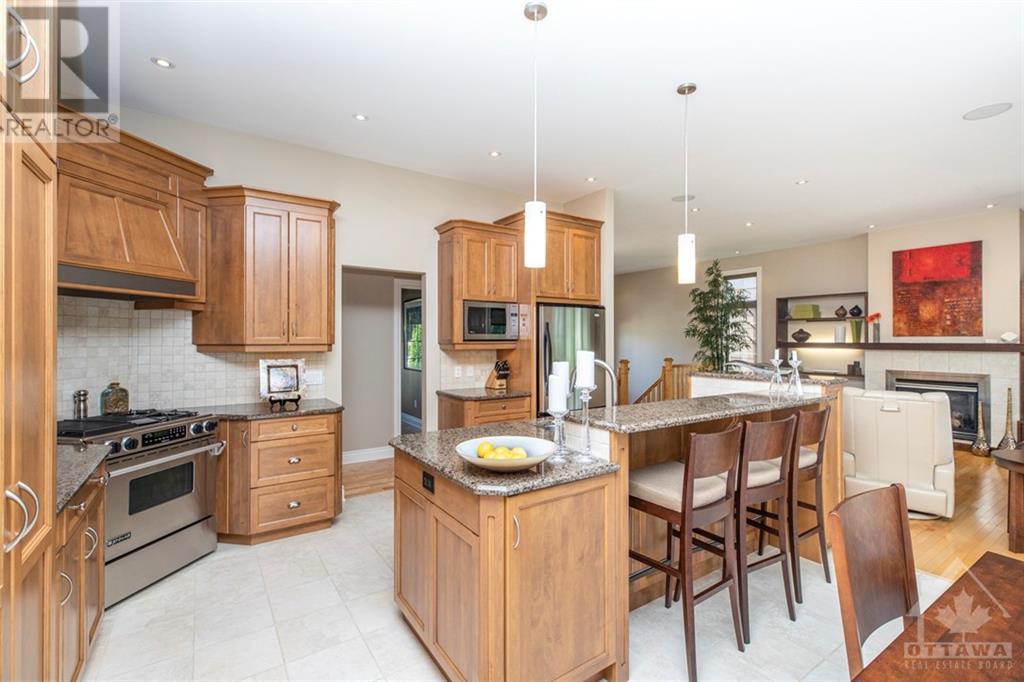 Rarely offered for sale!Bungalow w/walkout basement on Nation River in heart of Casselman! 10ft ceiling throughout main floor.Open concept living space w/awesome view of the river & mature trees.Kitchen has granite counters w/breakfast bar, gas stove, stainless steel appliance & high end cabinets.Primary bed has huge & organized walk-in closet. Luxurious bath w/double sink/soaking tub/separate shower/separate toilet.Laundry rm at entrance of oversized garage.Office on main floor,could be used as bedroom.Custom built-in shelves surrounding gas fireplace adds stylish touch to this home.Walkout basement has 2 spacious bedrooms w/large windows, full bath,rec rm,storage areas & walkout workshop. Extensive landscaping wraps around this beautiful stone house including cozy firepit/sitting area to enjoy the view. Inclusions: Generac(Cummins) 20KW 2023(value 19K)hooked to natural gas,Sprinkler system,Heated floors in basement.Roof (2018)Furnace & AC(2021)Window seals(2021) (id:22211)