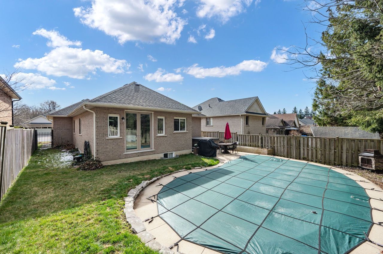 Unwind in this move-in ready; 3 bedroom, 3 bath home and discover beach life of Port Stanley. Nestled on a quiet street, this beautiful brick bungalow-style home has everything including a 2 car garage; the main floor boasts large windows throughout with 9ft ceilings, bringing in tons of sunlight. It's open concept, main floor living features laminate flooring throughout, newly faced kitchen cupboards and luxurious granite countertops; including a large kitchen island for all your prepping and entertaining needs. In addition to the 2 bedrooms on the main floor, the primary bedroom with ensuite bathroom and walk-in closet provides an oasis of its own, including private access through large-scale terrace doors onto your backyard with inground salt water pool and hot tub. The basement offers a large finished rec room, laundry, a full bathroom and 2 rooms, each with their own walk-in closet and ample storage.