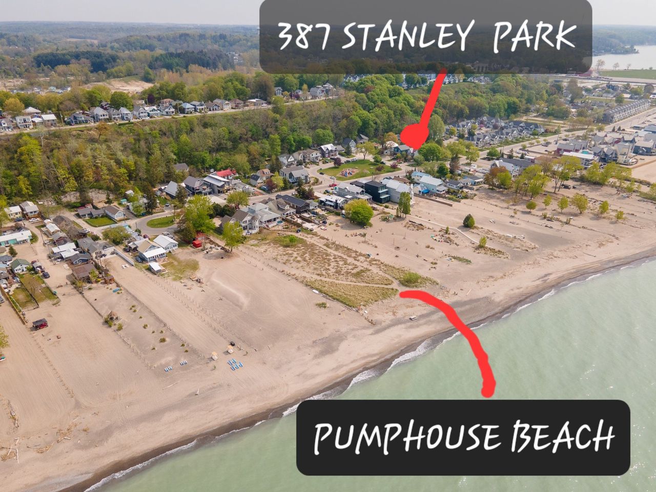 PRICED TO SELL, GREAT VALUE, 1.6 MILLION REPLACEMENT COST. Best investment on the coveted Edith Cavell Beach District in Port Stanley. Walk across the street to Pumphouse Beach. New house, never lived in full time. This 2 Story Custom Build was constructed in 2019 having 2 large decks overlooking a park with the lake in the background. 4 bedroom, 2.5 Baths. Low maintenance, No grass to mow outside and completely carpet-free inside. Easy to clean vinyl plank flooring installed throughout both levels, Lots of large windows with custom blinds. LED pot lights throughout the ceilings. Main floor Primary Bedroom with Ensuite. A modern Chef's Kitchen with high gloss white cabinetry, many drawers, lots of storage, high-end Stainless Steel appliances, gas stove and range hood, built-in oven & microwave, built-in dishwasher, Island with counter height stools, and all Granite Countertops. Stainless Steel Washer & Dryer on the main level in the utility room, (crawl space is accessed through a hatch in floor of the utility room). Designed by grandparents to entertain their kids and grandkids, the park nearby even has a little playground. Whether you're seeking a turn-key family vacation property or a lucrative investment opportunity, this home has it all. It comes fully furnished and equipped. To explore this unique property further, take a virtual tour with the iGuide, browse additional photos, watch a drone video, and view floorplans available for this listing.