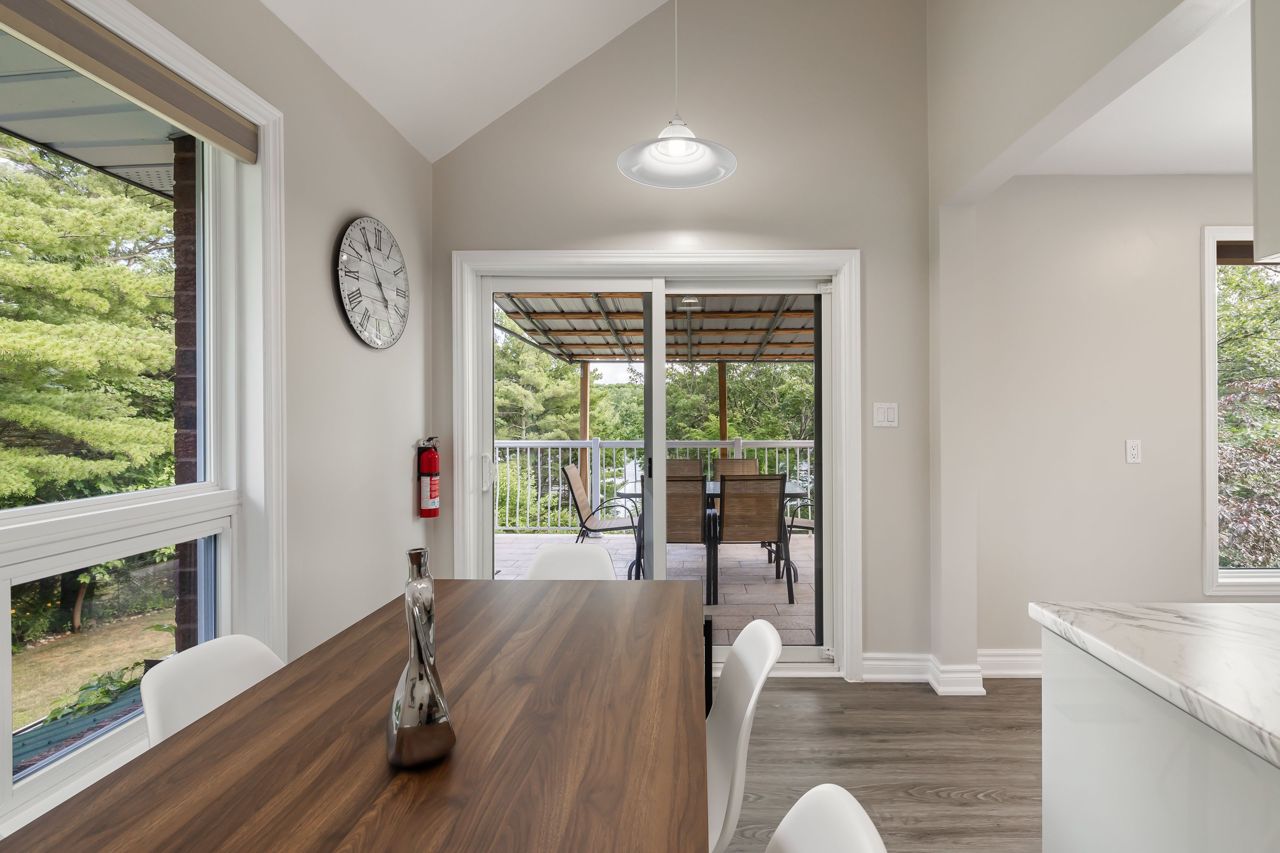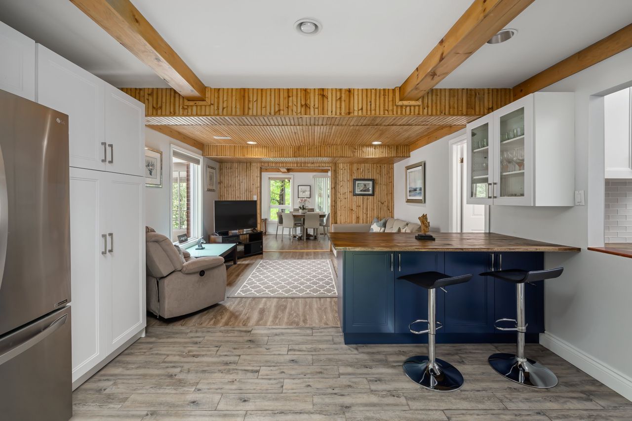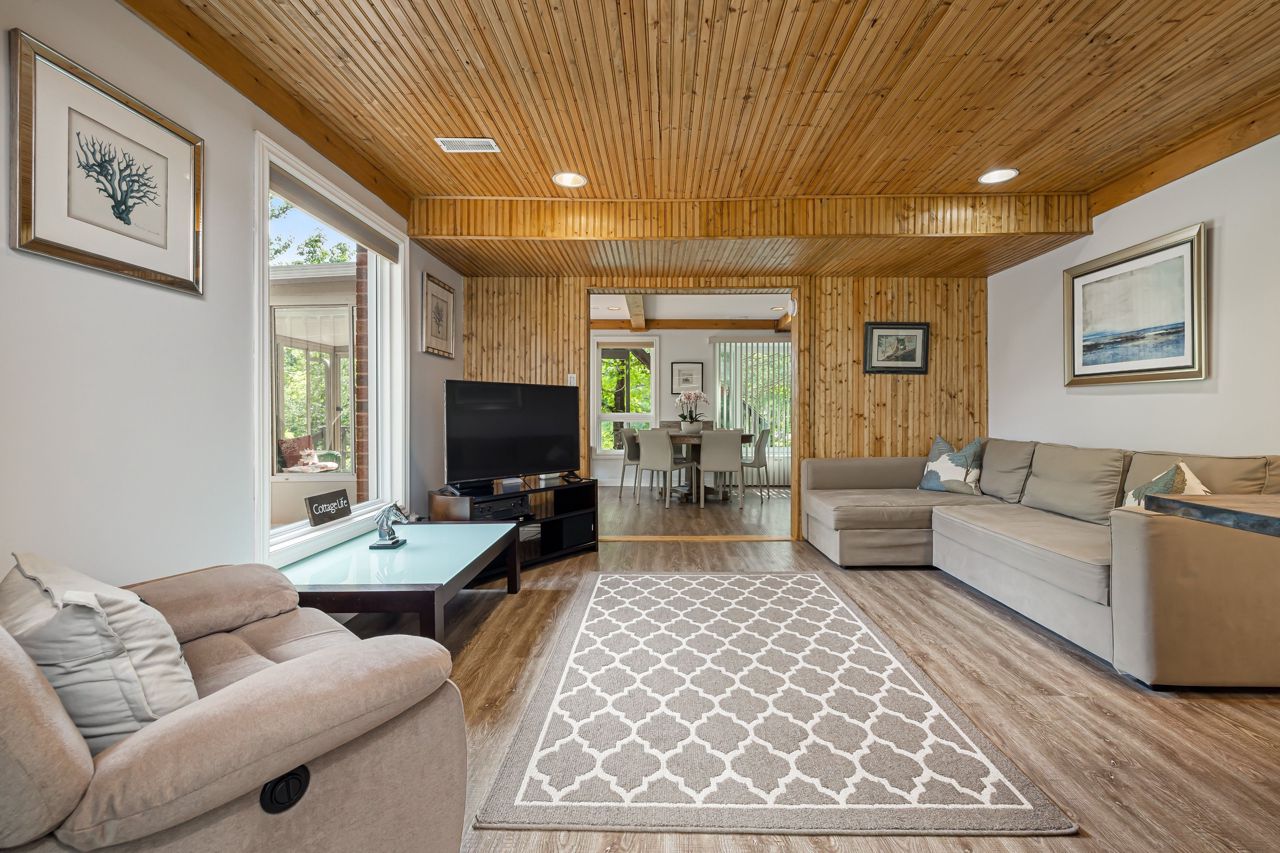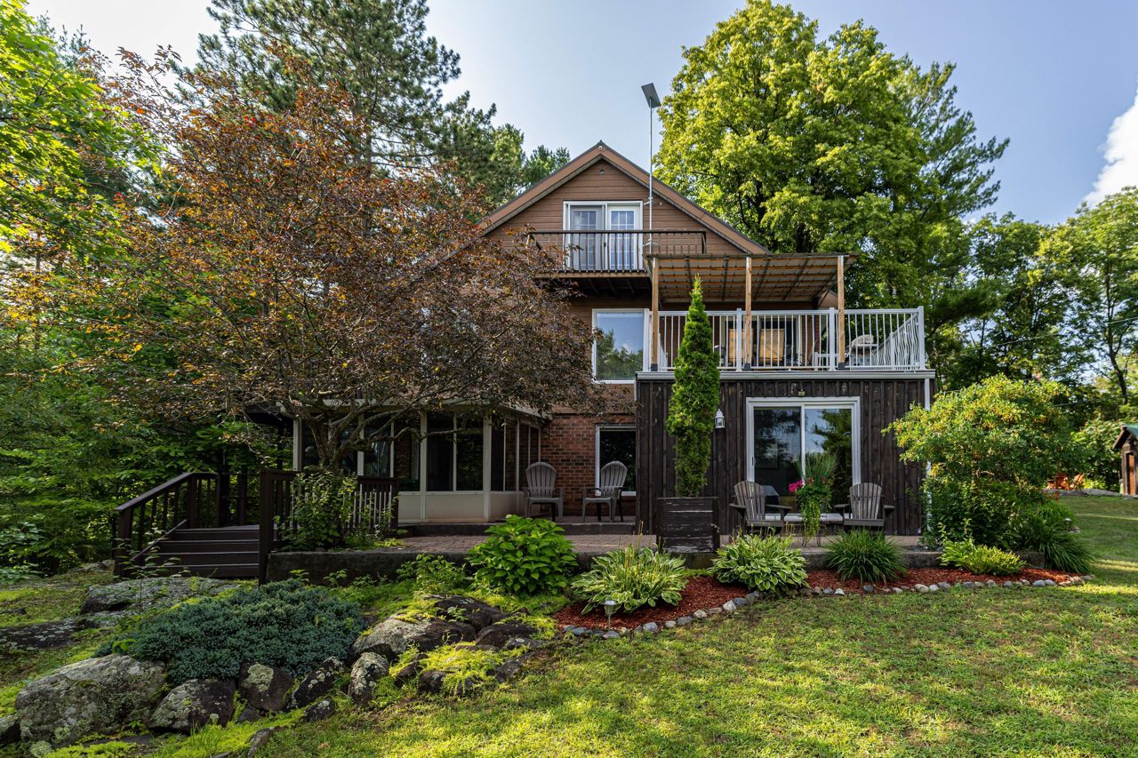 One of a kind. Absolutely gorgeous updated top to bottom 4 season rec property on Long Lake. Custom built kitchen with SS appliances/wood countertop. Modern bathrooms w/ceramic tiles. Ideally situated on an oversized lot 1.70 acreage and south facing waterfront lots w/226 feet of deep natural shoreline. Property boasts 2200 sf of high quality finished space with 3 oversized bedrooms and lot of living space. Main floor offers it's own bedroom, bath & kitchen, laundry and a sunny sunroom. 2nd floor offers new kitchen, large bedroom, 3pce bath and private terrace. 3rd bedroom offers oversize bedroom and private terrace.High efficiency heat pump, steel roof, wood burning insert fireplace, 2 car detached garage, detached carport, new bunkie and floating dock, new water tank (2022), newer windows (2018)