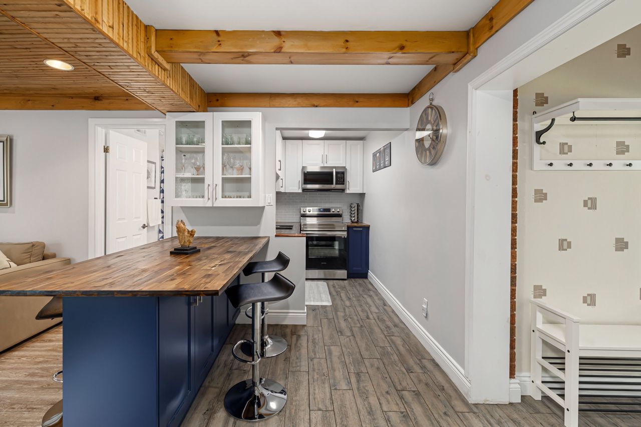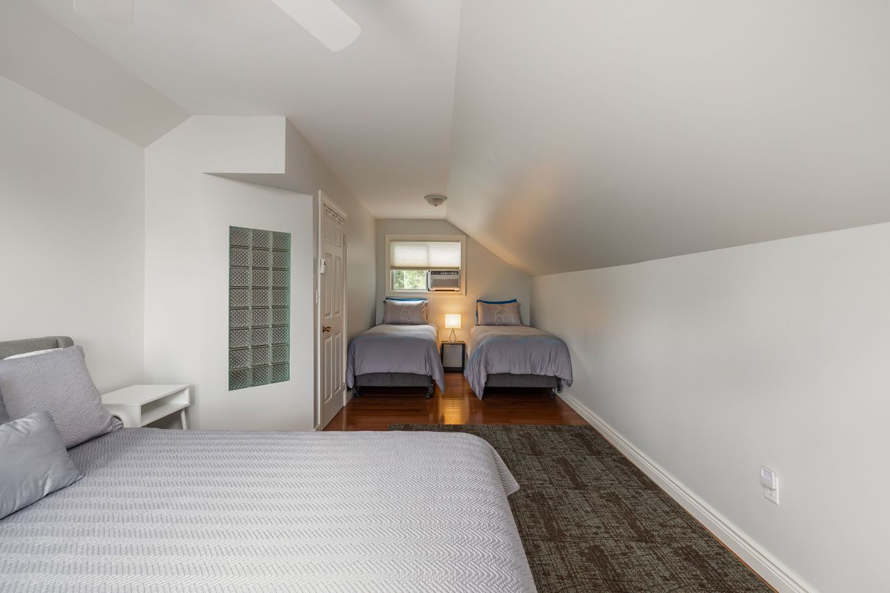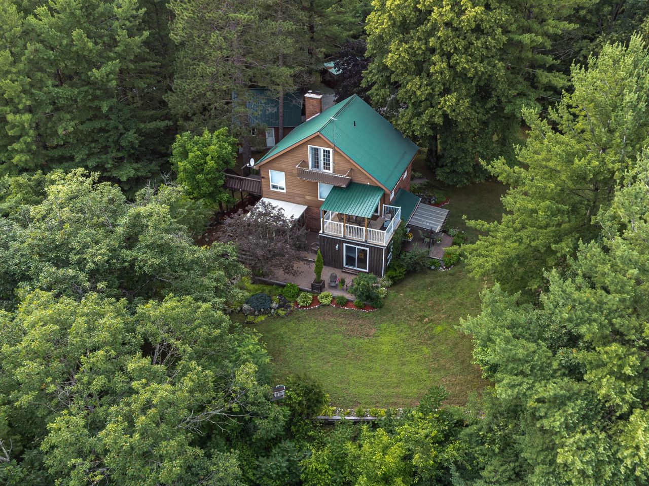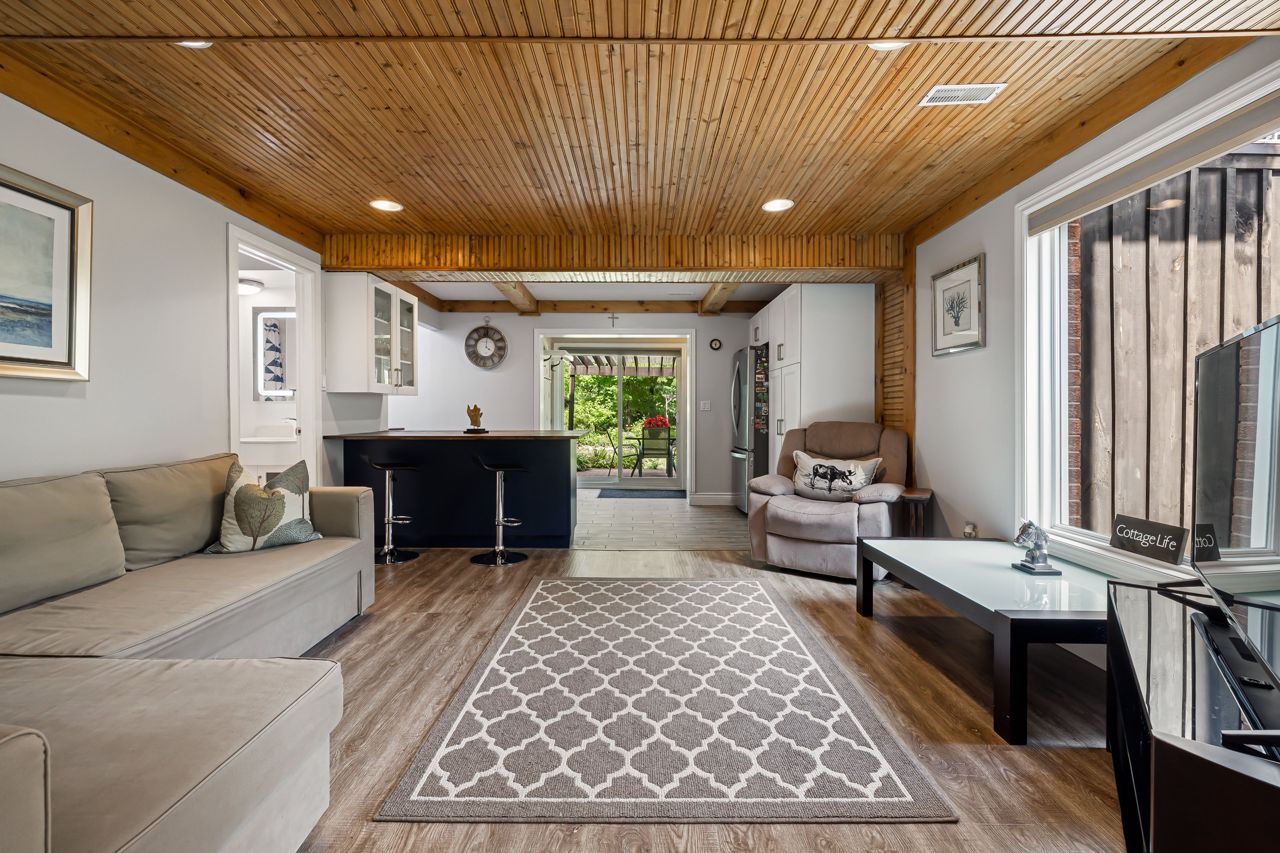 One of a kind. Absolutely gorgeous updated top to bottom 4 season rec property on Long Lake. Custom built kitchen with SS appliances/wood countertop. Modern bathrooms w/ceramic tiles. Ideally situated on an oversized lot 1.70 acreage and south facing waterfront lots w/226 feet of deep natural shoreline. Property boasts 2200 sf of high quality finished space with 3 oversized bedrooms and lot of living space. Main floor offers it's own bedroom, bath & kitchen, laundry and a sunny sunroom. 2nd floor offers new kitchen, large bedroom, 3pce bath and private terrace. 3rd bedroom offers oversize bedroom and private terrace.High efficiency heat pump, steel roof, wood burning insert fireplace, 2 car detached garage, detached carport, new bunkie and floating dock, new water tank (2022), newer windows (2018)