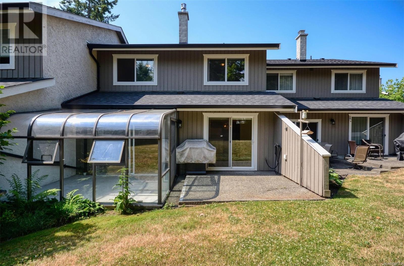 This bright three bedroom three bathroom townhome is situated in a picturesque setting of gardens and green space.The main floor features a lovely sunken living room with cozy gas fire place and access to sun room , dining room off the spacious kitchen opening on to a patio overlooking your own private oasis.Main floor has plenty of storage and a two piece bathroom with plenty of cupboard space. Large double car garage and also driveway parking. Upstairs you will find two good sized bedrooms and an updated bathroom with walk in shower .The spacious primary bedroom has access to a large sundeck and also ensuite bathroom. Cultra court is a professionally managed 14 Plus community allowing one small dog or up to two indoor cats . Well maintained with new exterior paint and new roofs this complex is on a quiet street and yet within walking distance to all amenities. Freshly painted and with new skylights this warm light filled home represents a fantastic opportunity that should not be missed. (id:22211)