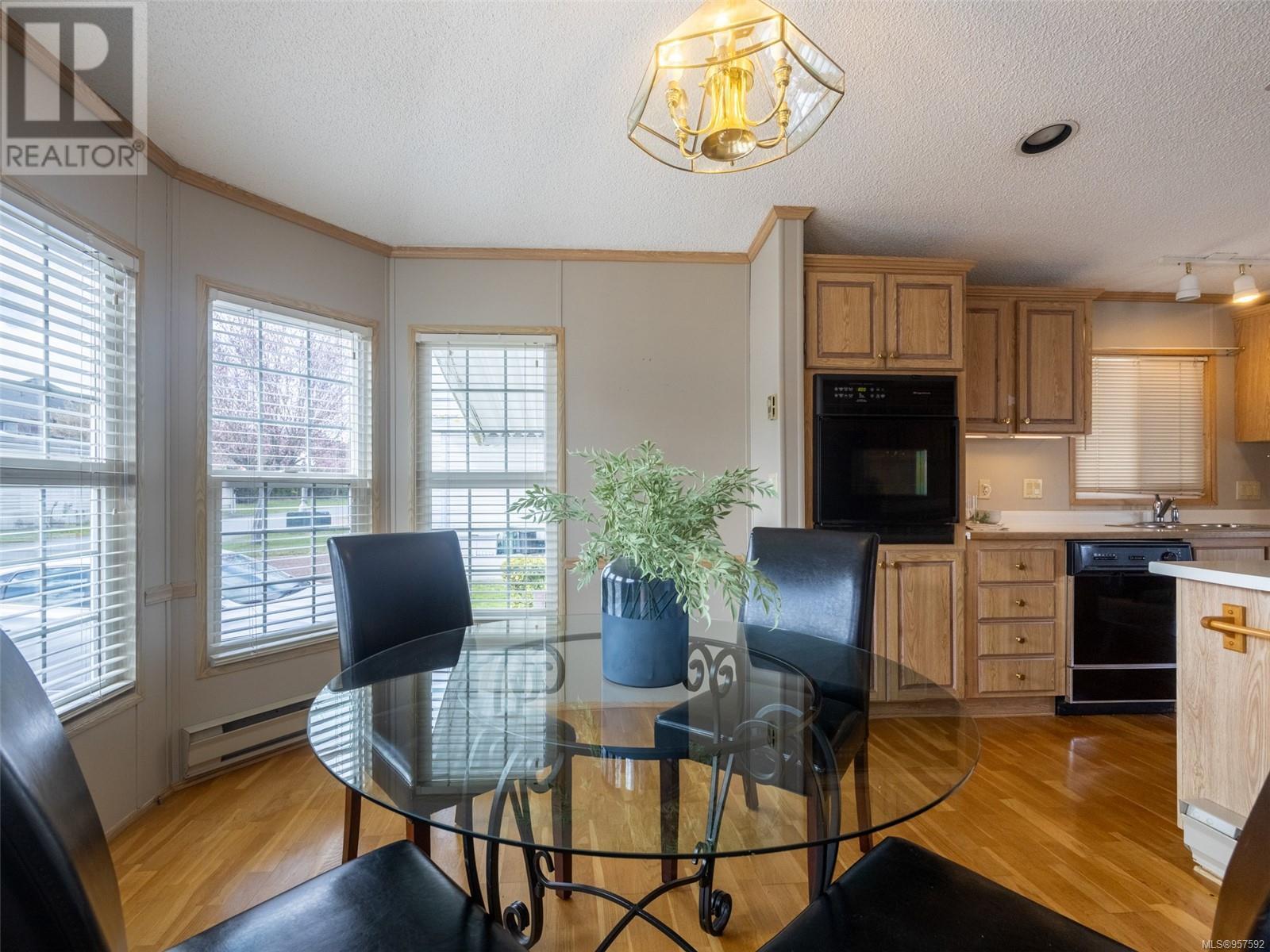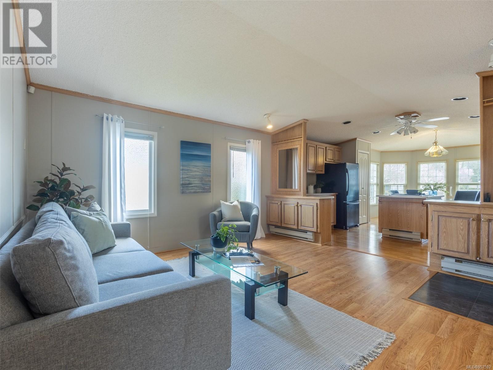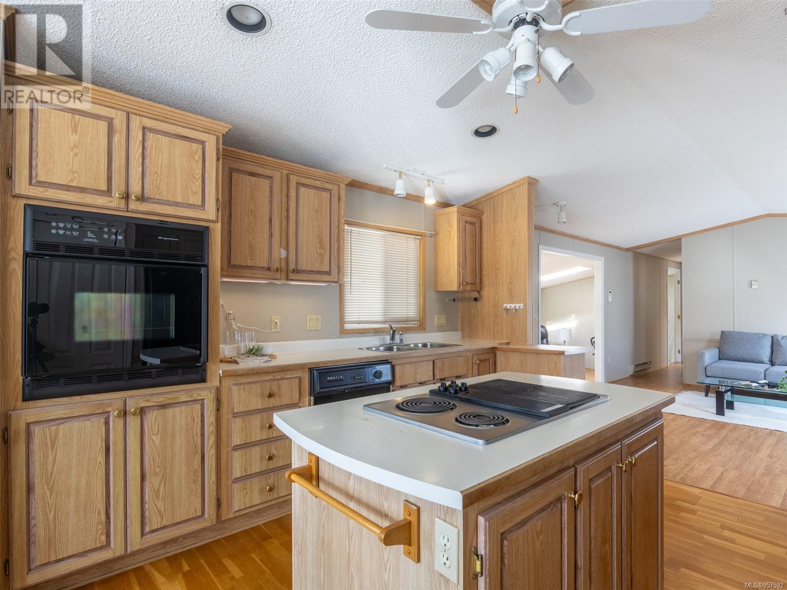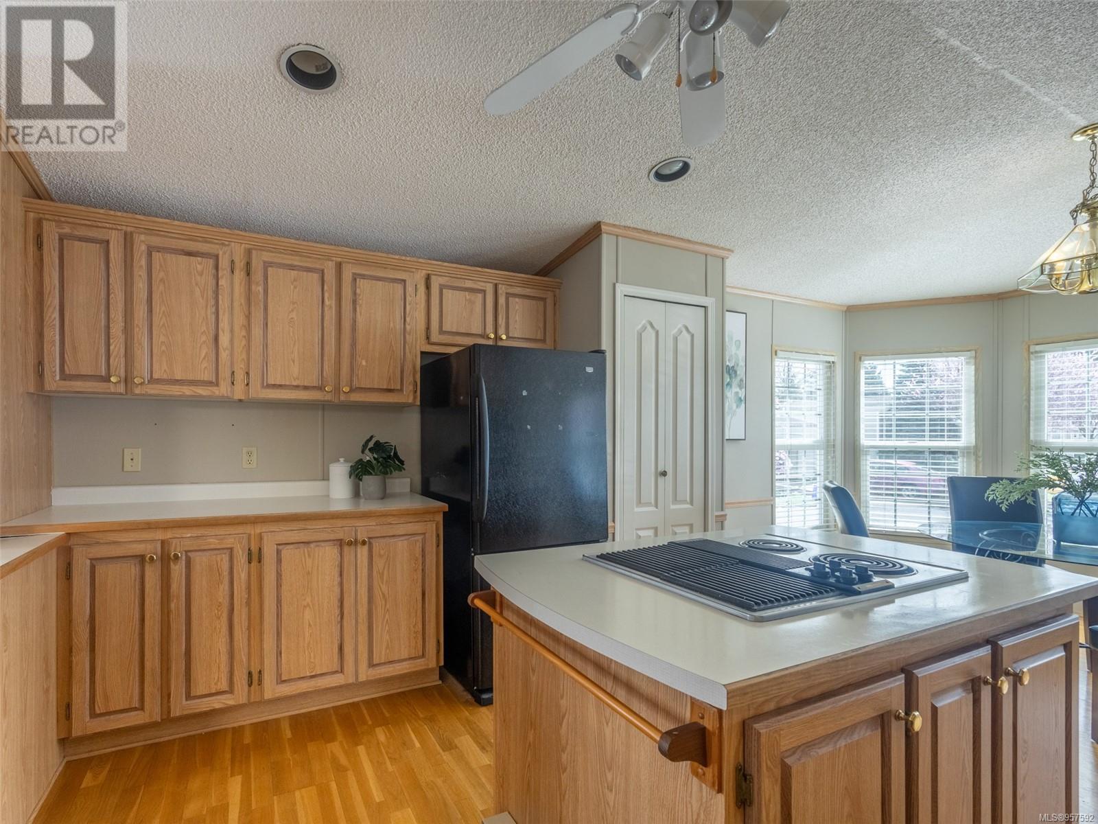 Welcome to the idyllic COUNTRY PARK ESTATES, where simplicity meets convenience, and privacy is paramount. Nestled in a tranquil setting, this meticulously maintained one-level home offers the retreat you've been dreaming of, with all the modern comforts you desire. Step inside to discover over 1,200 square feet of thoughtfully designed living space, featuring two bedrooms plus a den, perfect for a home office or hobby room. The spacious kitchen is a chef's delight, boasting a center island, Jenn-Air cook-top, built-in wall oven, and a bright bay window dining area, ideal for morning coffee or casual meals. Relax and unwind in the inviting living room with a peeked ceiling. The generous master suite provides a peaceful sanctuary with a three-piece ensuite, offering comfort and convenience. This home is appointed with engineered hardwood and laminate floors, skylights, and vinyl windows, enhancing its charm and functionality. Notably, the ultimate walk-in bath/shower adds a touch of luxury to the bathroom, ensuring relaxation after a long day. Storage is plentiful, including a separate 9x7 workshed, perfect for tools or seasonal items. Residents of COUNTRY PARK ESTATES also enjoy access to the clubhouse, guest suite, and RV parking, providing opportunities for socializing and convenience. (id:22211)