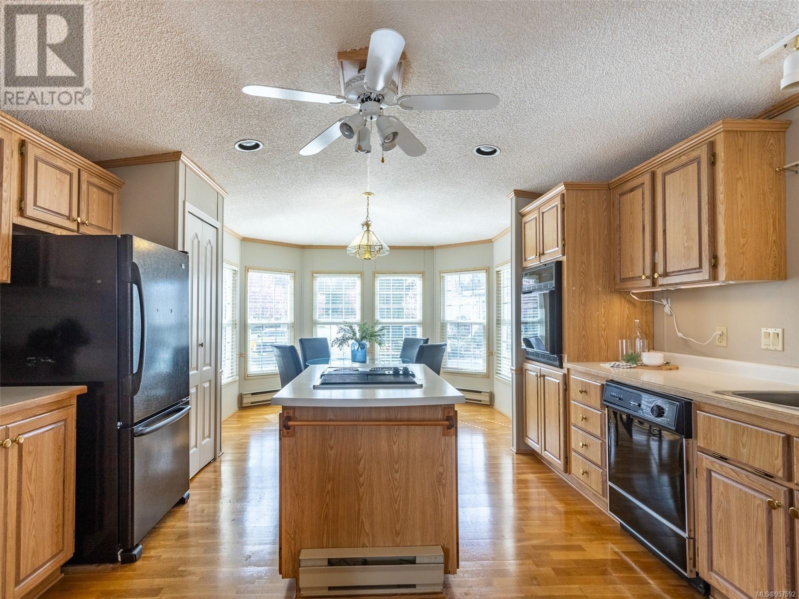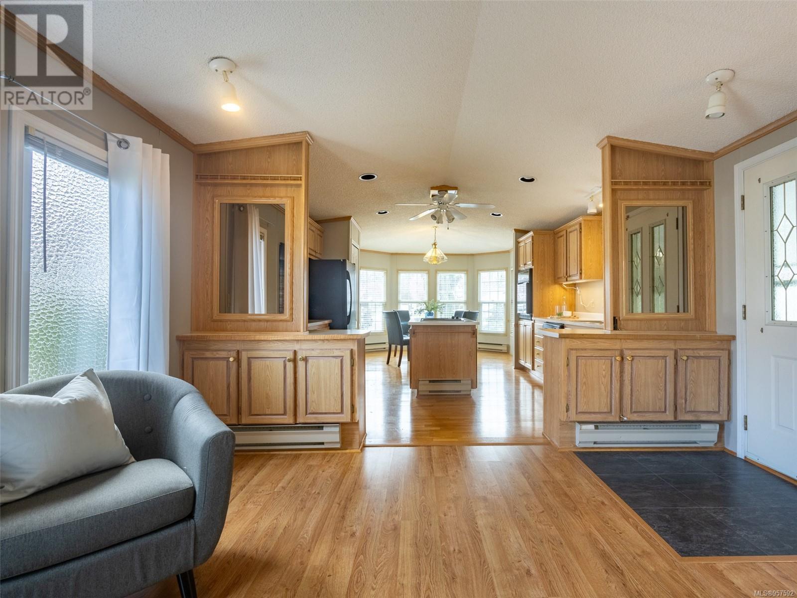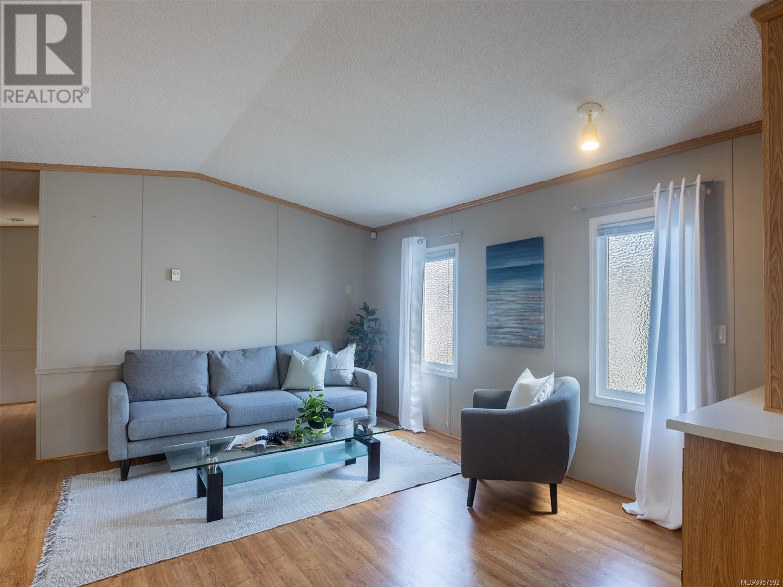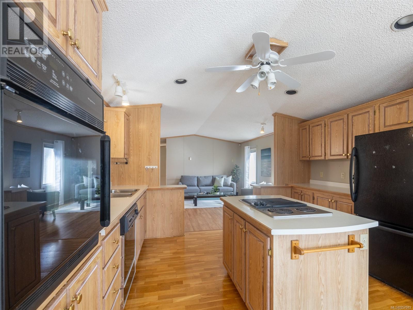 Welcome to the idyllic COUNTRY PARK ESTATES, where simplicity meets convenience, and privacy is paramount. Nestled in a tranquil setting, this meticulously maintained one-level home offers the retreat you've been dreaming of, with all the modern comforts you desire. Step inside to discover over 1,200 square feet of thoughtfully designed living space, featuring two bedrooms plus a den, perfect for a home office or hobby room. The spacious kitchen is a chef's delight, boasting a center island, Jenn-Air cook-top, built-in wall oven, and a bright bay window dining area, ideal for morning coffee or casual meals. Relax and unwind in the inviting living room with a peeked ceiling. The generous master suite provides a peaceful sanctuary with a three-piece ensuite, offering comfort and convenience. This home is appointed with engineered hardwood and laminate floors, skylights, and vinyl windows, enhancing its charm and functionality. Notably, the ultimate walk-in bath/shower adds a touch of luxury to the bathroom, ensuring relaxation after a long day. Storage is plentiful, including a separate 9x7 workshed, perfect for tools or seasonal items. Residents of COUNTRY PARK ESTATES also enjoy access to the clubhouse, guest suite, and RV parking, providing opportunities for socializing and convenience. (id:22211)