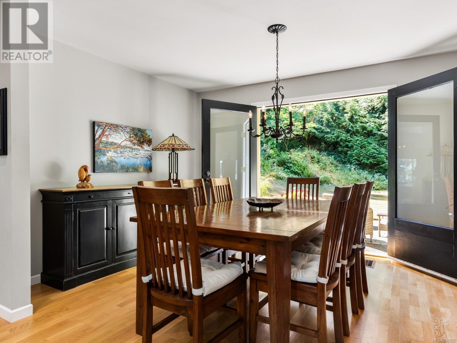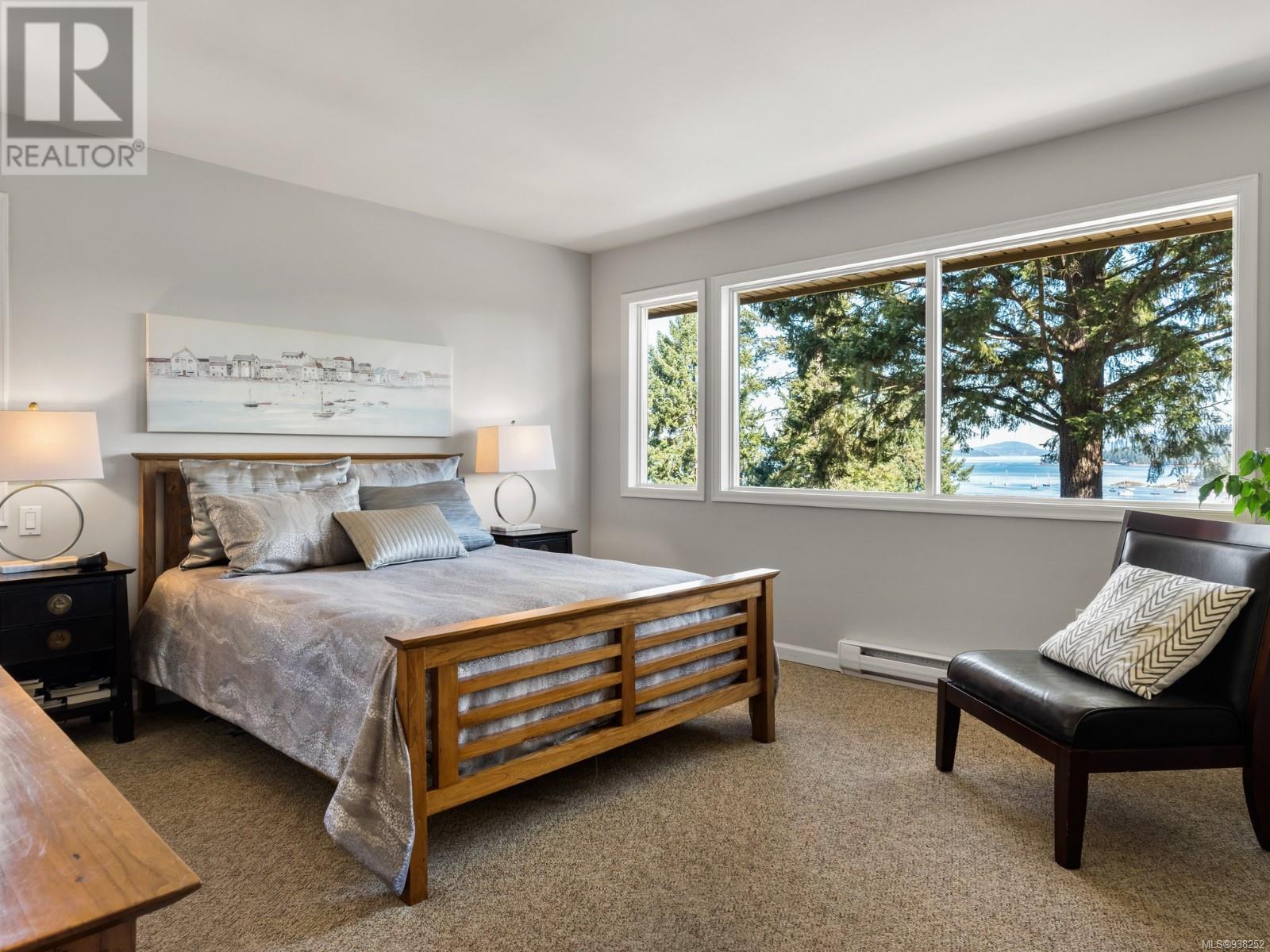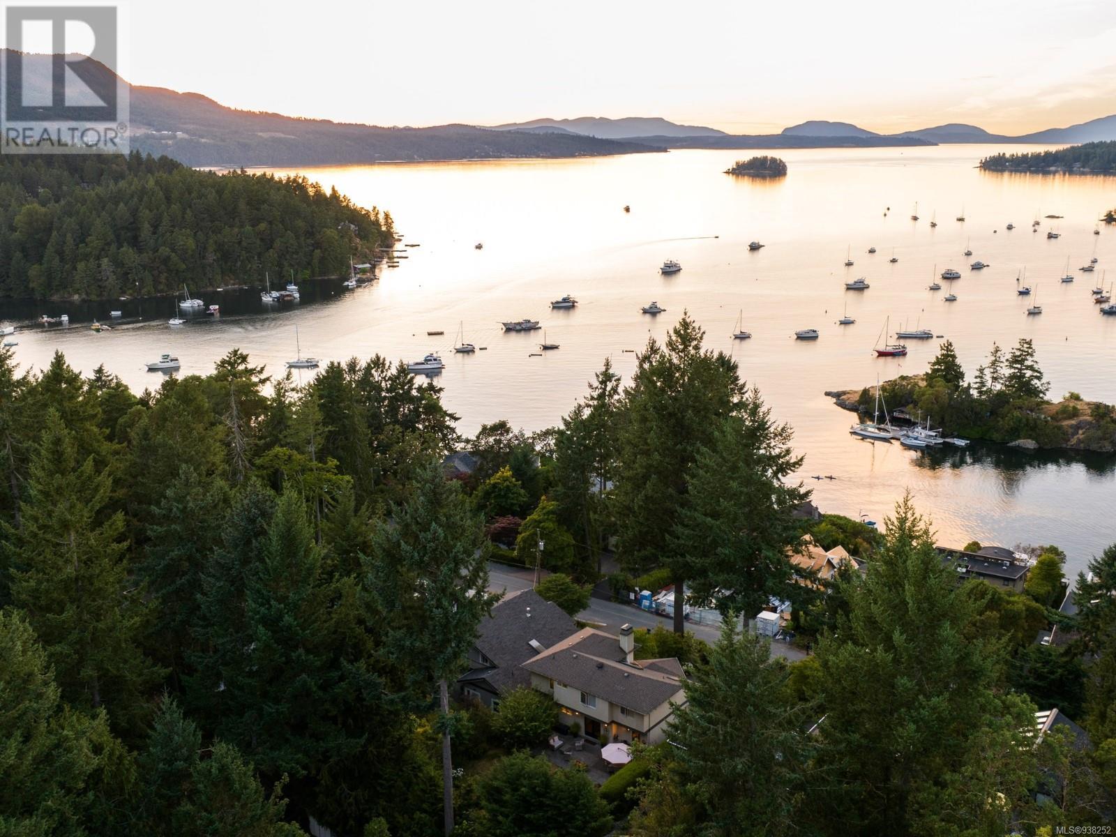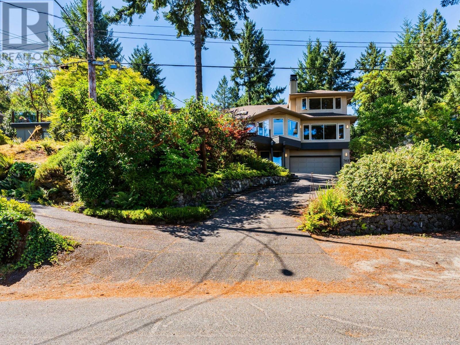 Experience coastal living in the heart of Brentwood Bay. Perfectly positioned to make the most of its sweeping ocean and sunset views, this 2651-sq.ft. hilltop home offers second-story living. Enjoy unobstructed views from your open- concept kitchen and breakfast nook, sunken family room, and spacious living room, each marked with architectural details, including vaulted ceilings, skylights, and bay windows. Your kitchen, with warm wood tones, SS appliances, and granite counters, leads to the dining room, where French doors open to your back, south-facing garden and patio. Full of natural light, the home embraces both west and south-facing exposures, offering ocean and garden views throughout its 4 bedrooms and 3 bathrooms, including the primary suite. A near-250-sq.ft. flex space sits on the main floor, with the option for an additional bedroom or den. Set on a private lot, with mature landscaping and tailored gardens, this home makes the most of its stunning surroundings. (id:22211)