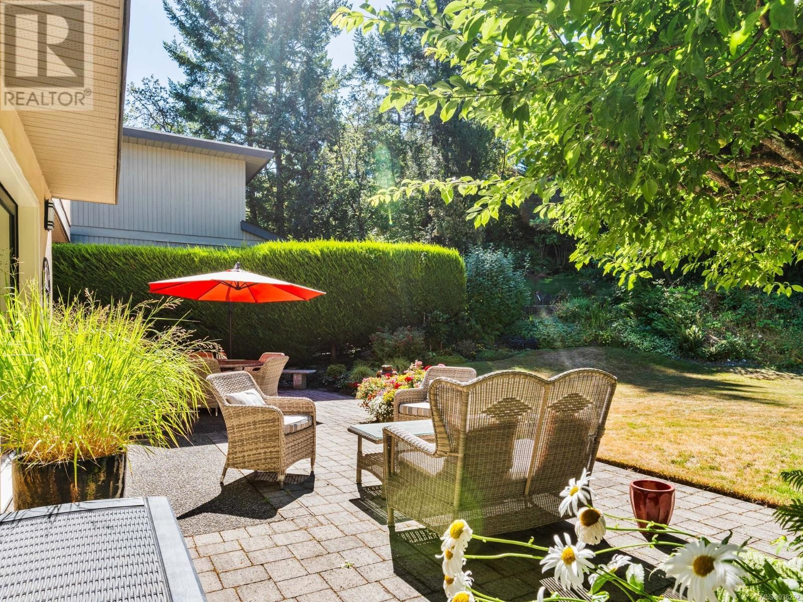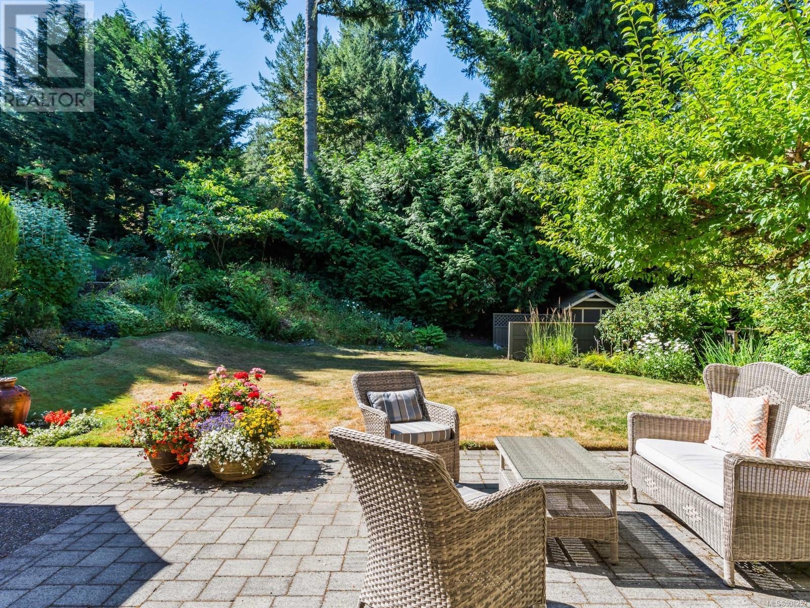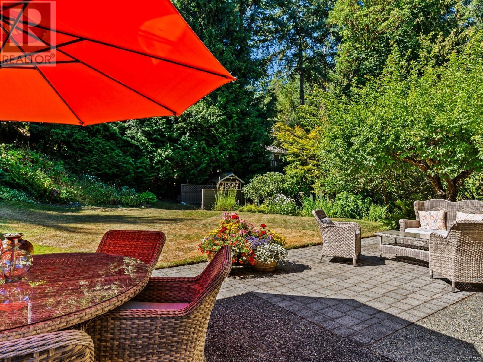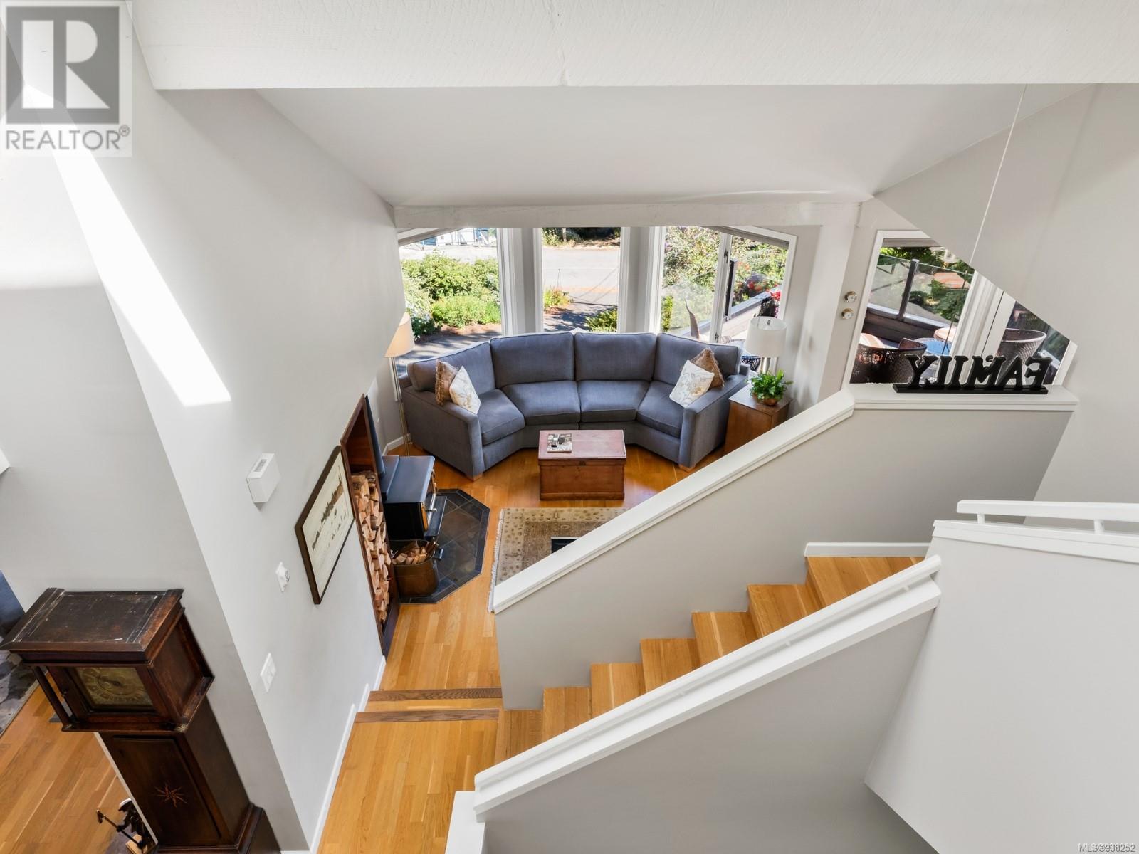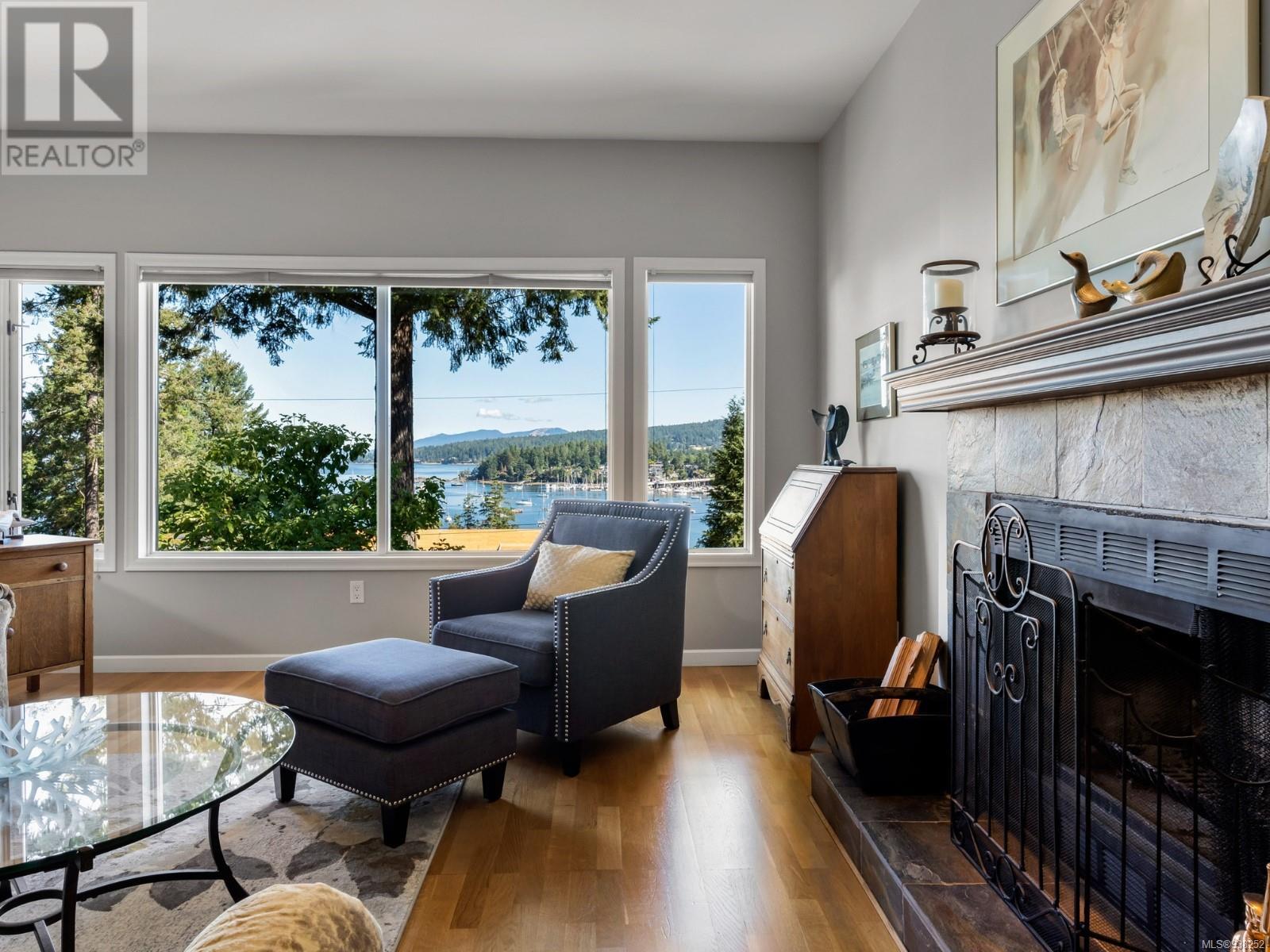 Experience coastal living in the heart of Brentwood Bay. Perfectly positioned to make the most of its sweeping ocean and sunset views, this 2651-sq.ft. hilltop home offers second-story living. Enjoy unobstructed views from your open- concept kitchen and breakfast nook, sunken family room, and spacious living room, each marked with architectural details, including vaulted ceilings, skylights, and bay windows. Your kitchen, with warm wood tones, SS appliances, and granite counters, leads to the dining room, where French doors open to your back, south-facing garden and patio. Full of natural light, the home embraces both west and south-facing exposures, offering ocean and garden views throughout its 4 bedrooms and 3 bathrooms, including the primary suite. A near-250-sq.ft. flex space sits on the main floor, with the option for an additional bedroom or den. Set on a private lot, with mature landscaping and tailored gardens, this home makes the most of its stunning surroundings. (id:22211)