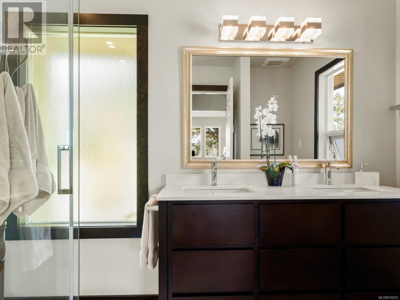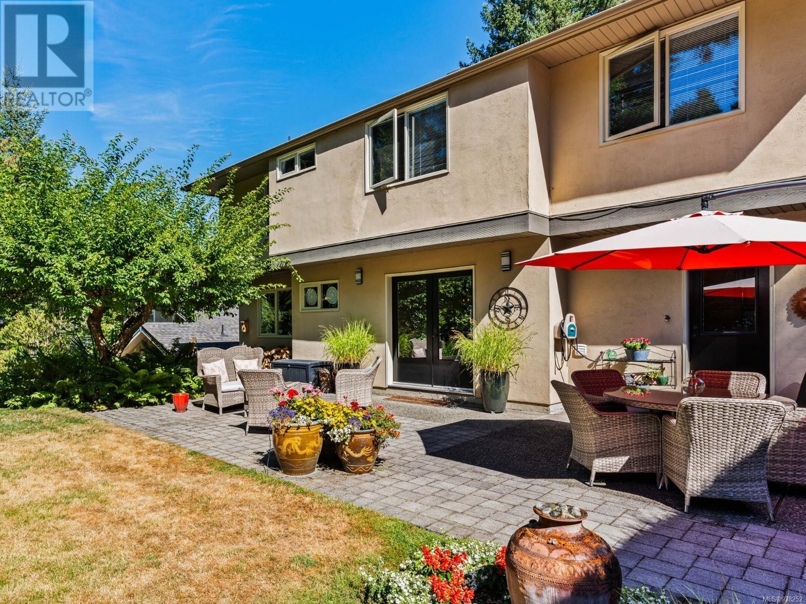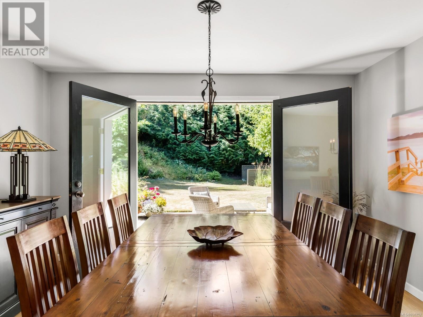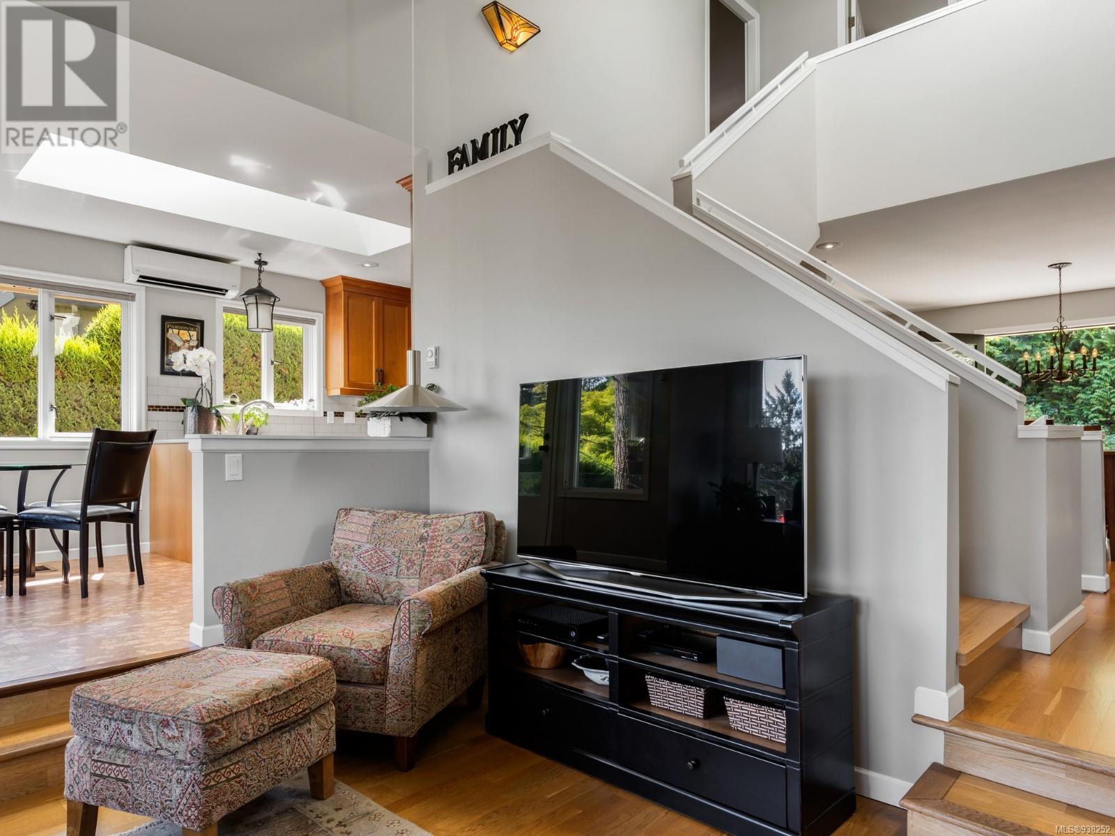 Experience coastal living in the heart of Brentwood Bay. Perfectly positioned to make the most of its sweeping ocean and sunset views, this 2651-sq.ft. hilltop home offers second-story living. Enjoy unobstructed views from your open- concept kitchen and breakfast nook, sunken family room, and spacious living room, each marked with architectural details, including vaulted ceilings, skylights, and bay windows. Your kitchen, with warm wood tones, SS appliances, and granite counters, leads to the dining room, where French doors open to your back, south-facing garden and patio. Full of natural light, the home embraces both west and south-facing exposures, offering ocean and garden views throughout its 4 bedrooms and 3 bathrooms, including the primary suite. A near-250-sq.ft. flex space sits on the main floor, with the option for an additional bedroom or den. Set on a private lot, with mature landscaping and tailored gardens, this home makes the most of its stunning surroundings. (id:22211)