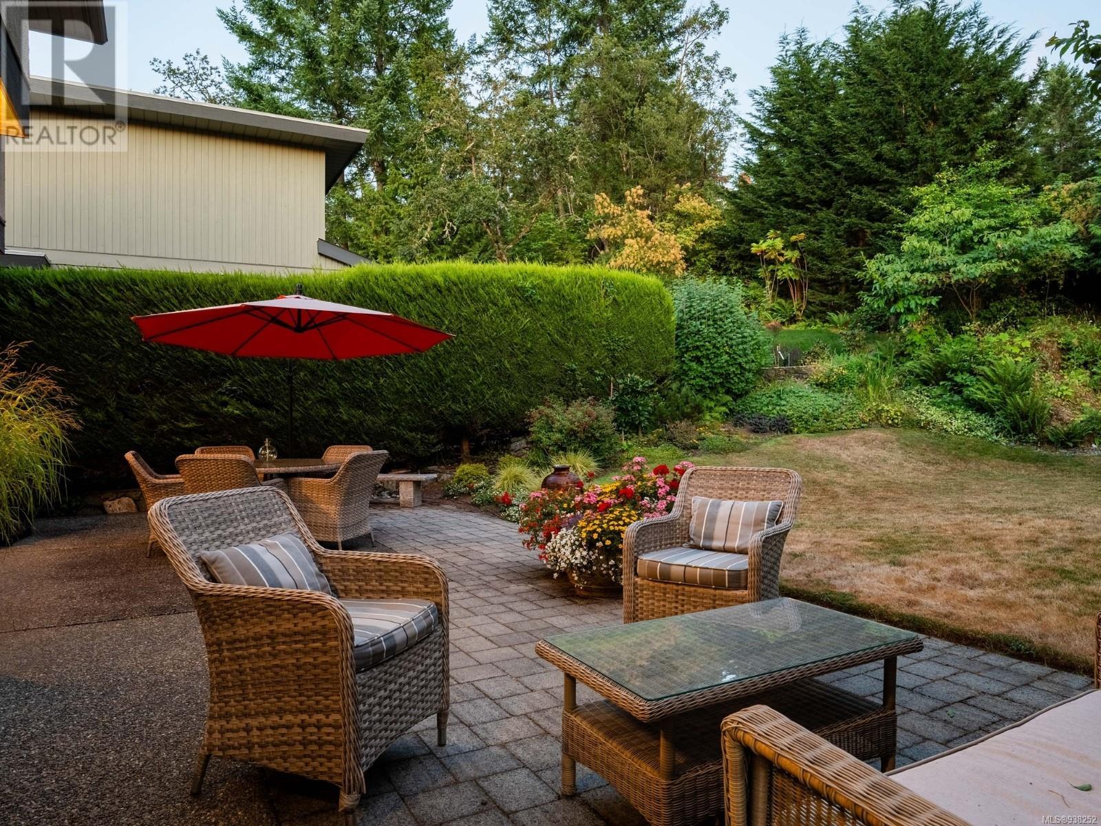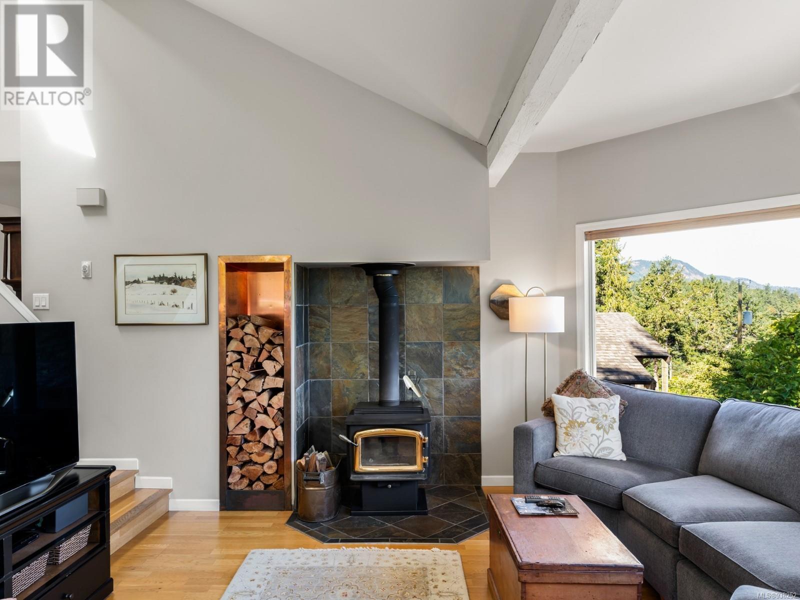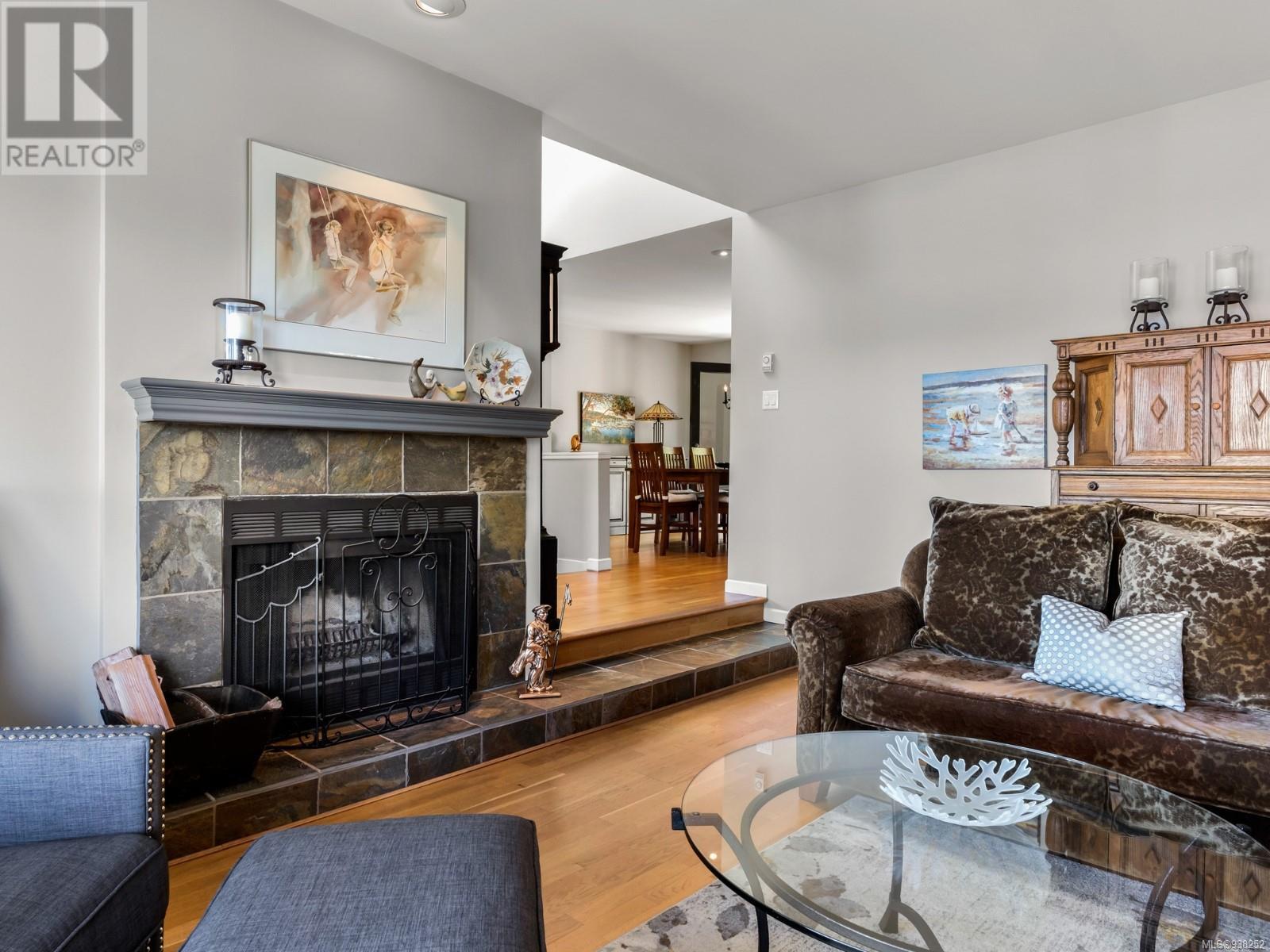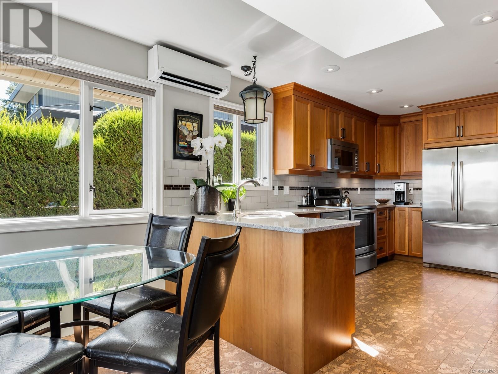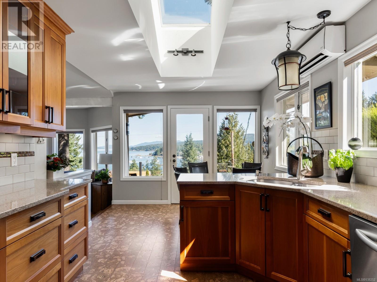 Experience coastal living in the heart of Brentwood Bay. Perfectly positioned to make the most of its sweeping ocean and sunset views, this 2651-sq.ft. hilltop home offers second-story living. Enjoy unobstructed views from your open- concept kitchen and breakfast nook, sunken family room, and spacious living room, each marked with architectural details, including vaulted ceilings, skylights, and bay windows. Your kitchen, with warm wood tones, SS appliances, and granite counters, leads to the dining room, where French doors open to your back, south-facing garden and patio. Full of natural light, the home embraces both west and south-facing exposures, offering ocean and garden views throughout its 4 bedrooms and 3 bathrooms, including the primary suite. A near-250-sq.ft. flex space sits on the main floor, with the option for an additional bedroom or den. Set on a private lot, with mature landscaping and tailored gardens, this home makes the most of its stunning surroundings. (id:22211)