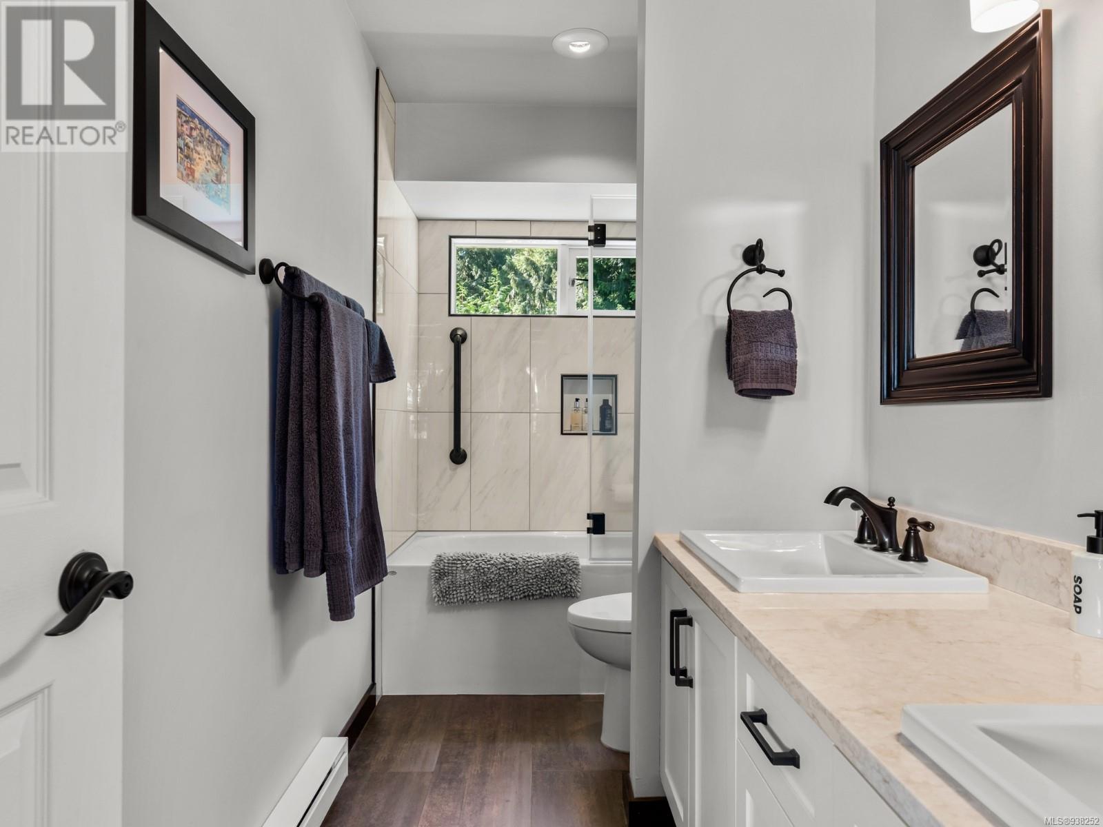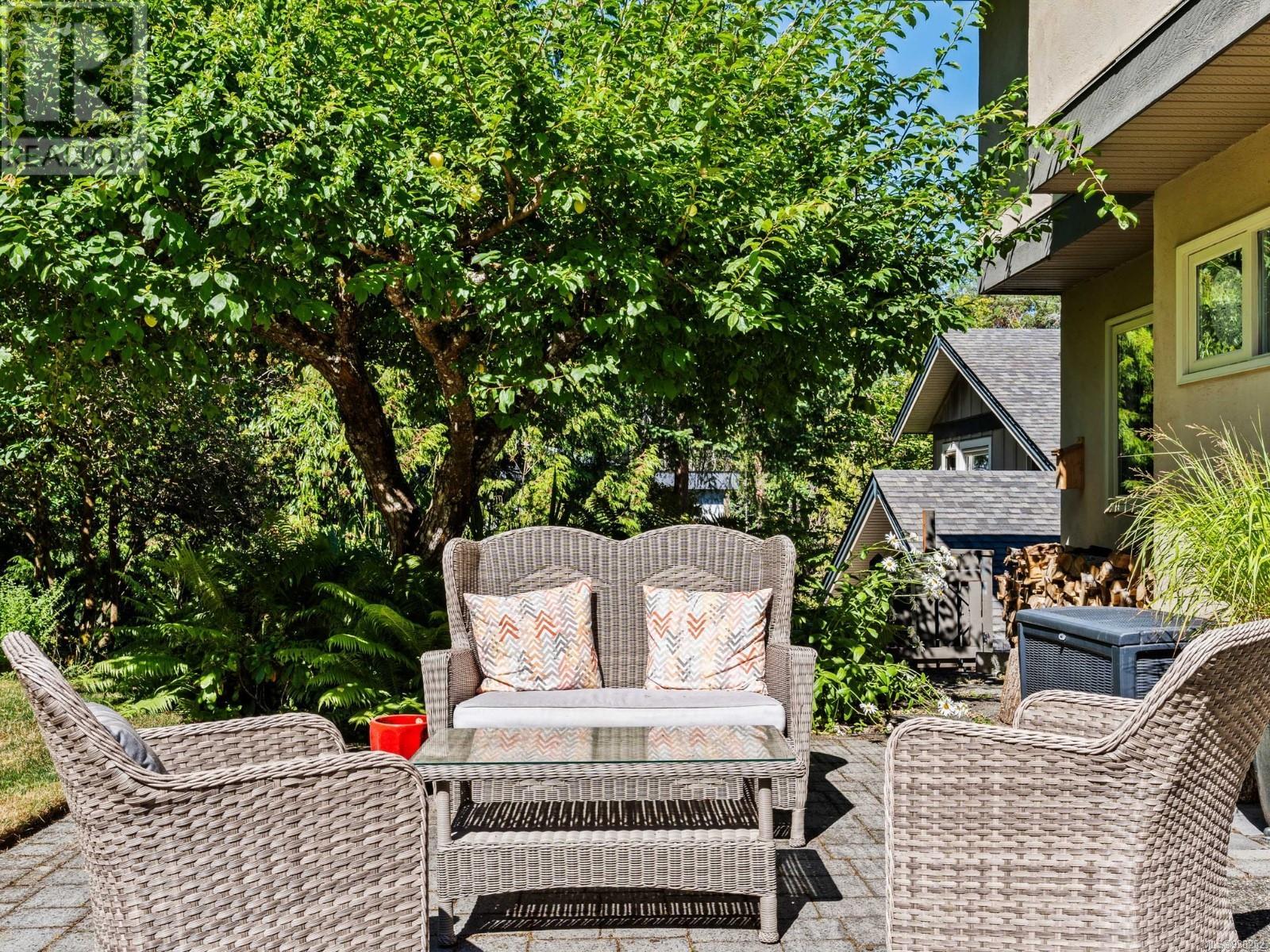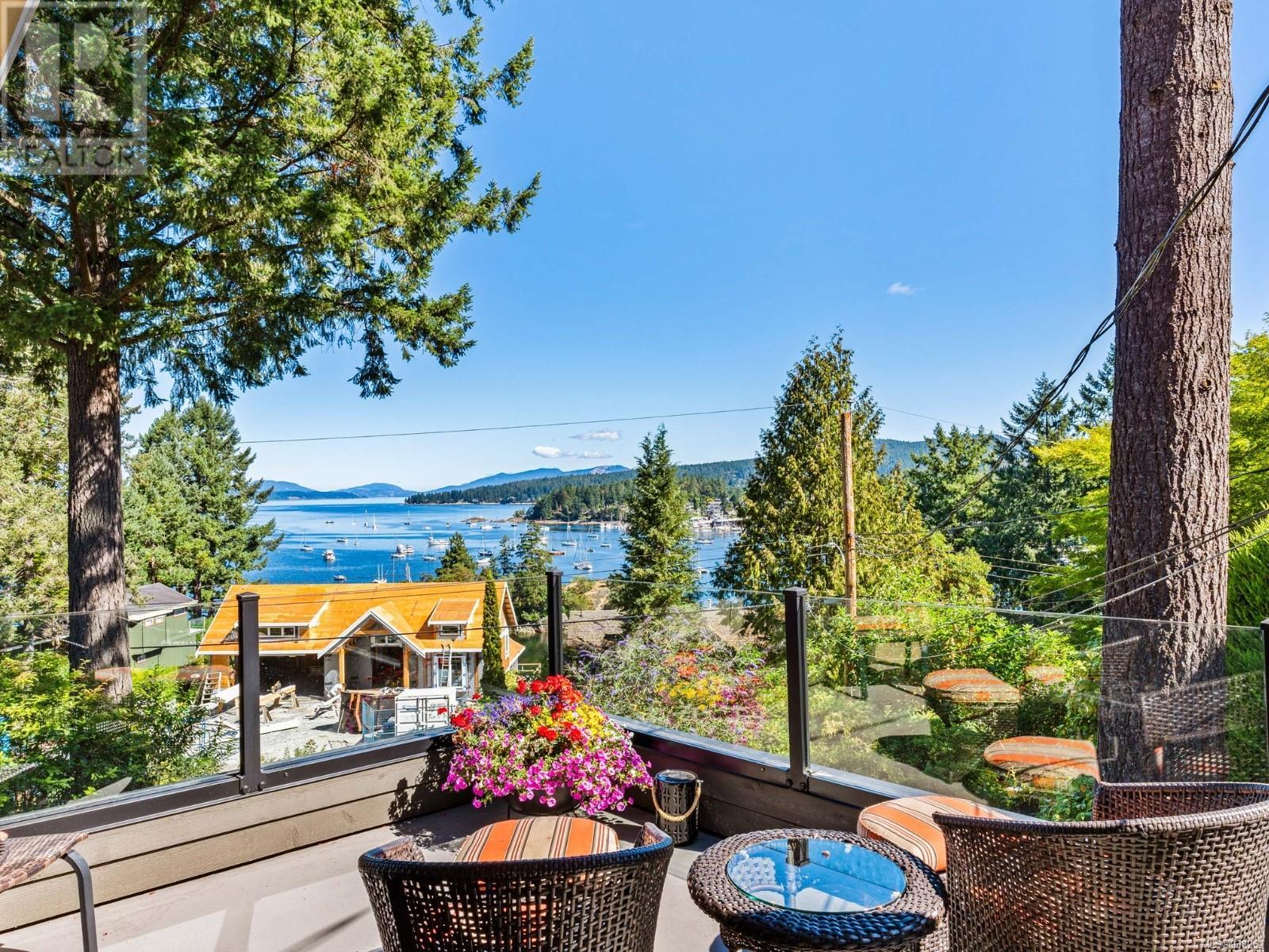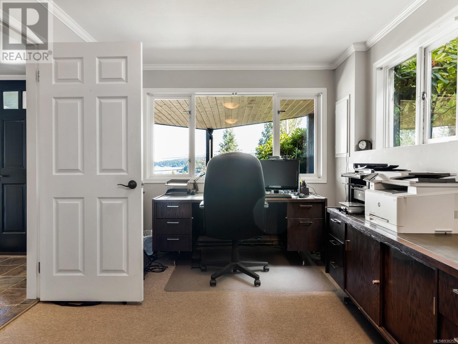 Experience coastal living in the heart of Brentwood Bay. Perfectly positioned to make the most of its sweeping ocean and sunset views, this 2651-sq.ft. hilltop home offers second-story living. Enjoy unobstructed views from your open- concept kitchen and breakfast nook, sunken family room, and spacious living room, each marked with architectural details, including vaulted ceilings, skylights, and bay windows. Your kitchen, with warm wood tones, SS appliances, and granite counters, leads to the dining room, where French doors open to your back, south-facing garden and patio. Full of natural light, the home embraces both west and south-facing exposures, offering ocean and garden views throughout its 4 bedrooms and 3 bathrooms, including the primary suite. A near-250-sq.ft. flex space sits on the main floor, with the option for an additional bedroom or den. Set on a private lot, with mature landscaping and tailored gardens, this home makes the most of its stunning surroundings. (id:22211)