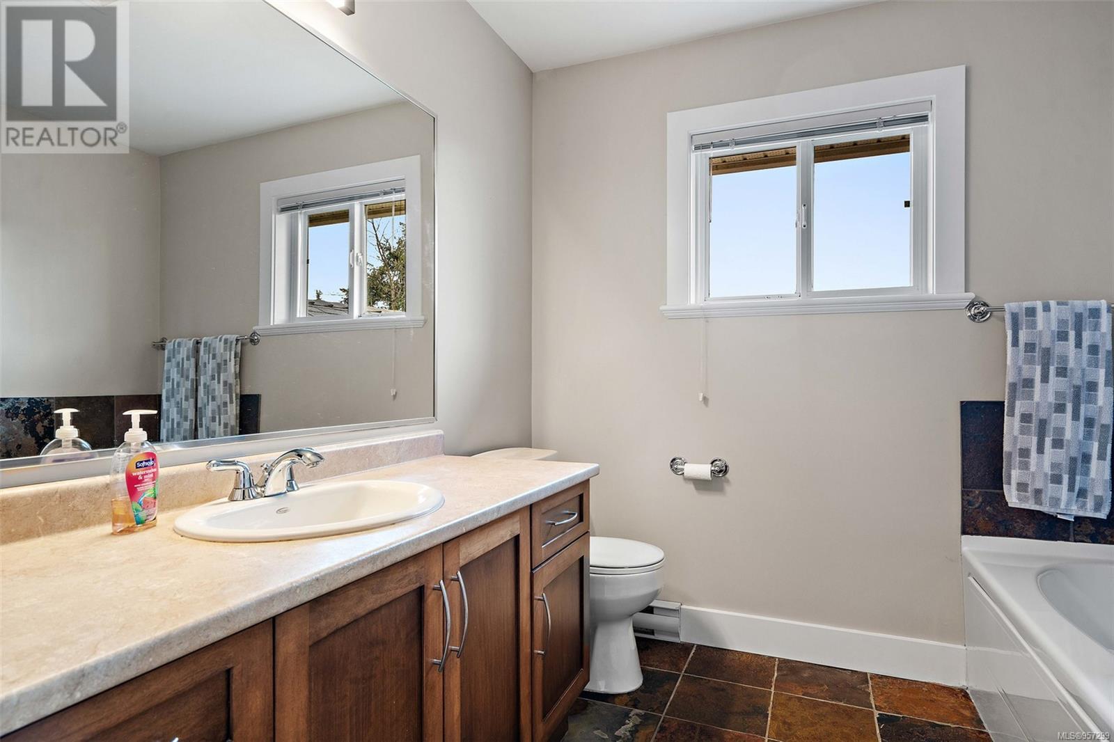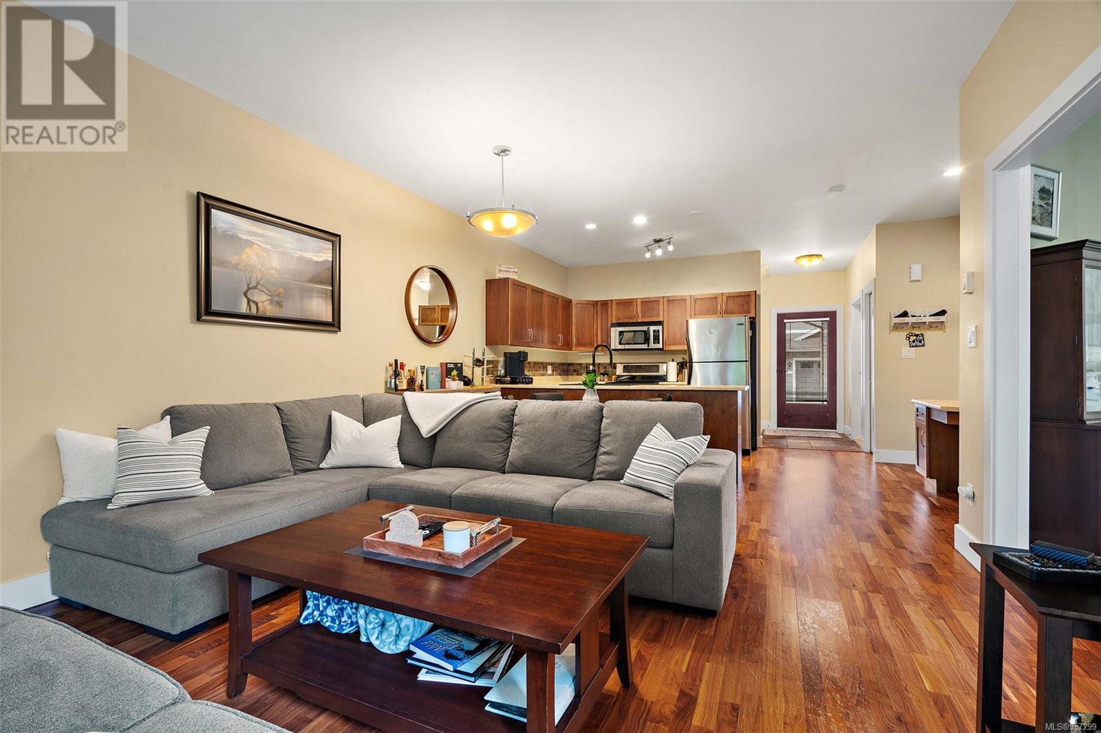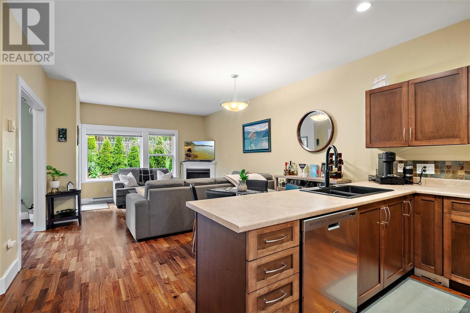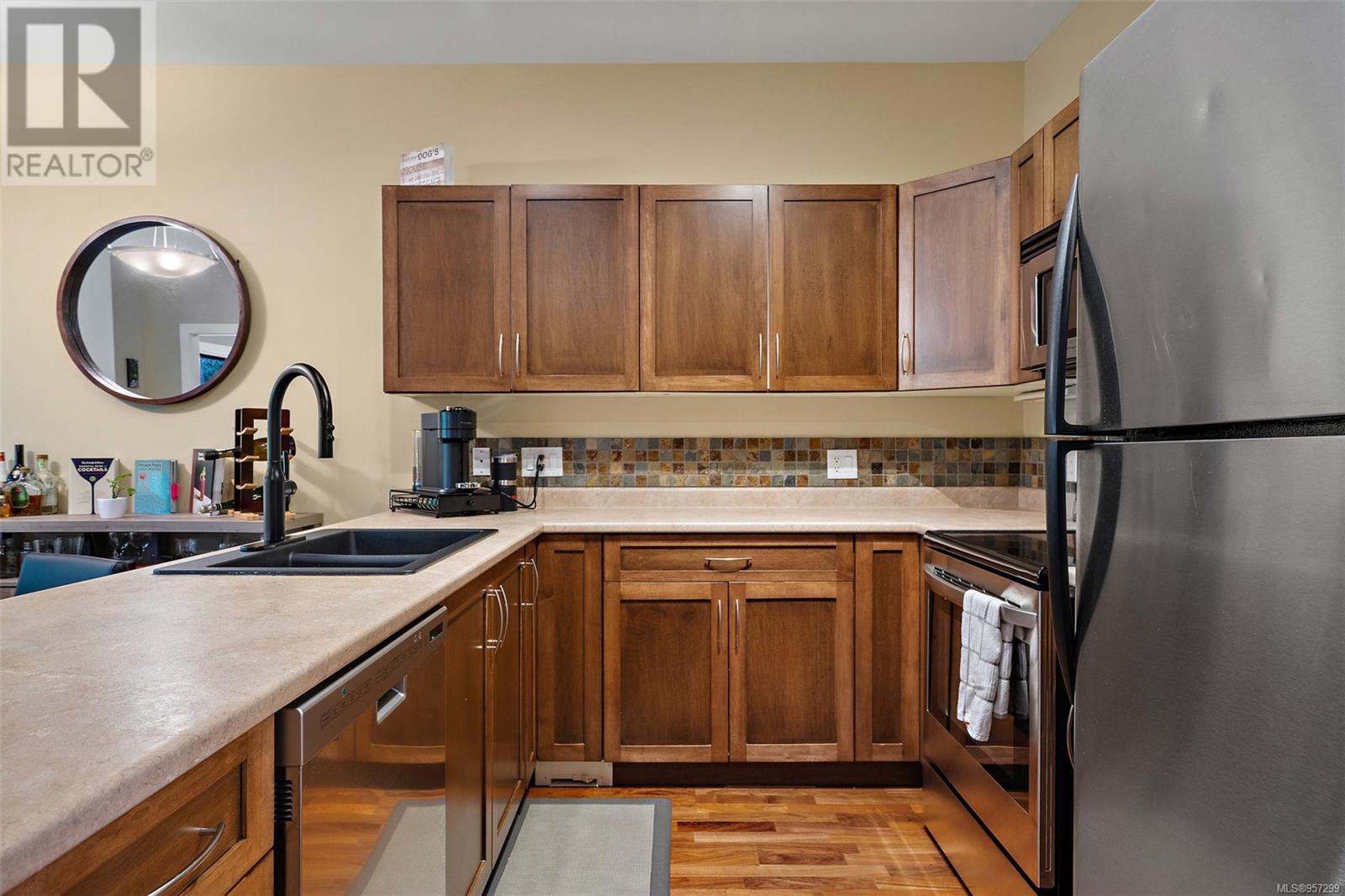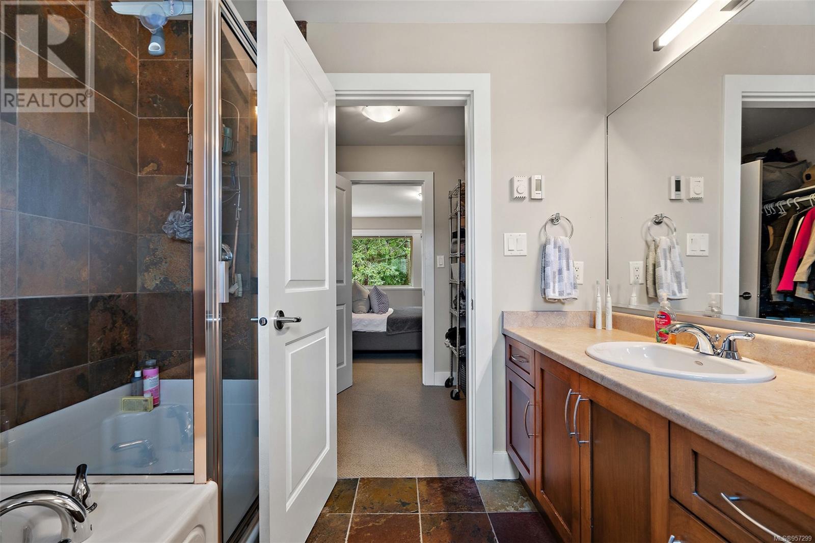 OPEN SAT MARCH 30 11am-1pm Welcome to the serene country lifestyle with a high walkability score. This lovely townhome offers exceptional quality and prime location. Situated in the peaceful Forest Grove area, these units are rarely available, making this a unique find. This home has a spacious interior with warm West Coast feel including slate tiles, wood cabinetry, and beautiful hardwood floors. The open floor plan has 9' ceilings, kitchen with contemporary stainless appliances and farm style sink, and the option for a primary bed on the main floor. The living area flows seamlessly to a very private patio that backs onto forest lands, providing a tranquil outdoor space. Upstairs, you find the primary with a huge walk-in closet and an ensuite bathroom with heated tile floor along with a 3RD bed with its own bath and laundry area. Ample storage space is available with multiple closets, a crawl space and garage. Easy access to shops, restaurants, public transit, miles of walking trails. (id:22211)