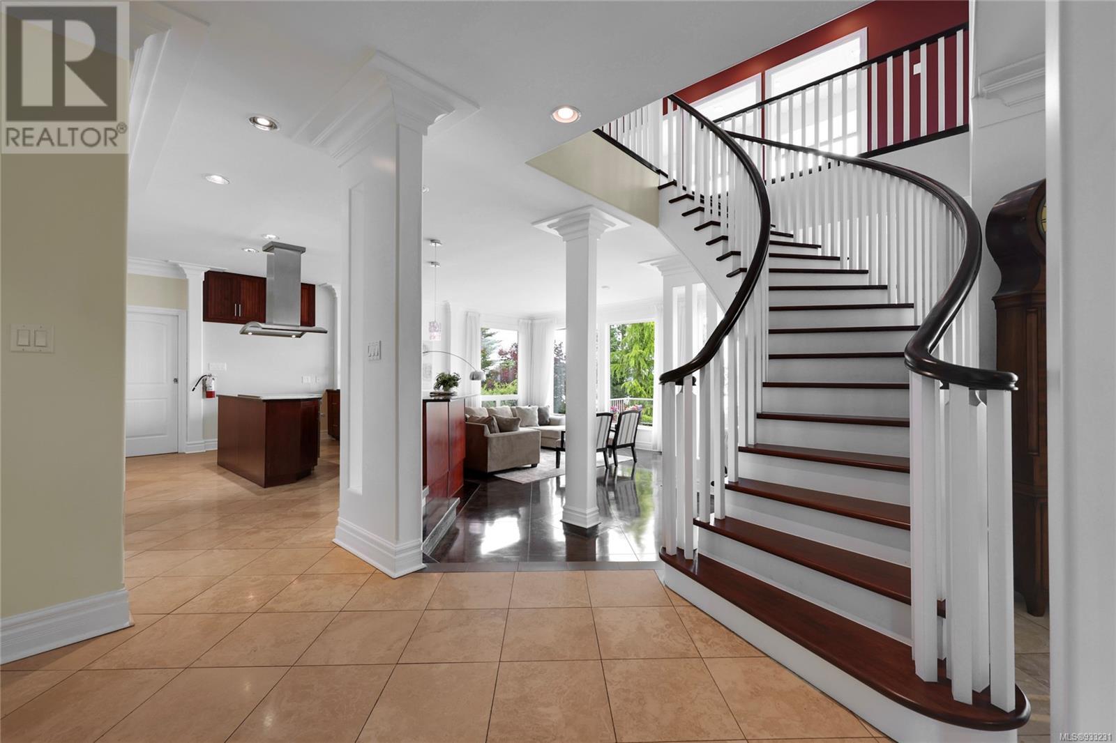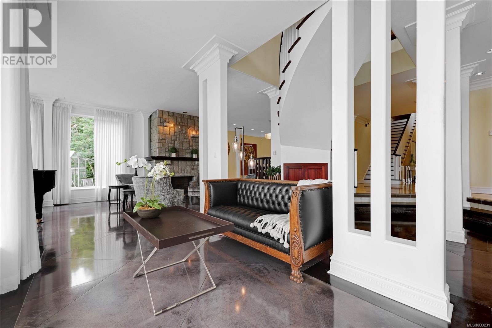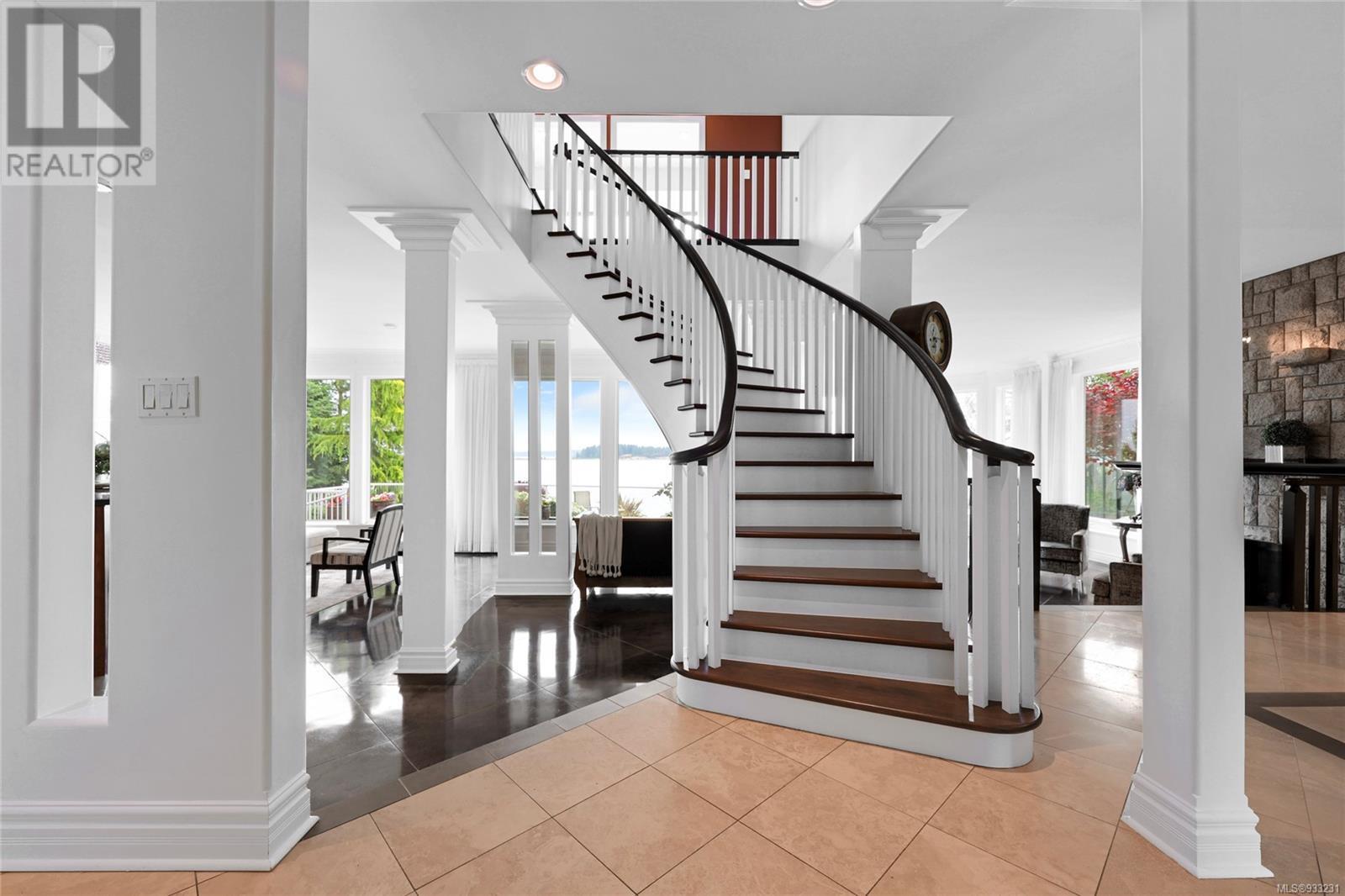 Welcome to this captivating waterfront home, offering unobstructed ocean views that will leave you in awe. From the moment you step inside, you're immediately greeted by a stately spiral staircase that leads the eye to the mesmerizing and calming vistas of the ocean, visible from the living room, kitchen, and the impressive patio and deck space. Ample room for the whole family, the main floor is reminiscent of grand homes from a bygone era with its’ columns, elevated dining space and large, stone fireplace gracing the living room. The turf backyard provides a low-maintenance space to enjoy outdoor activities while soaking in the coastal ambiance. Featuring a beach bungalow, miniature putting green and private access to the beach. Upstairs, you'll find an expansive primary bedroom that offers a truly luxurious experience; featuring a fireplace with a sitting room, a balcony with hot tub, and 3-piece ensuite creating a cozy and intimate space to unwind. The in-law suite is complete with two bedrooms, a kitchen, and a 3-piece bathroom, providing a comfortable and private space for visitors or extended family members. (id:22211)