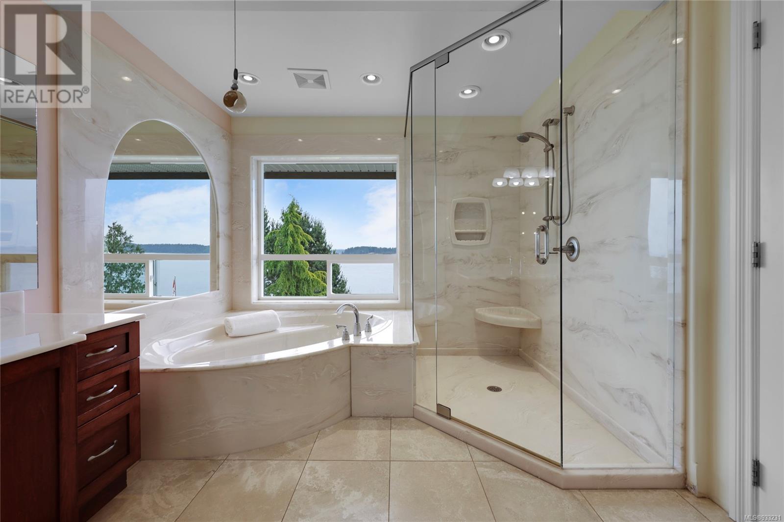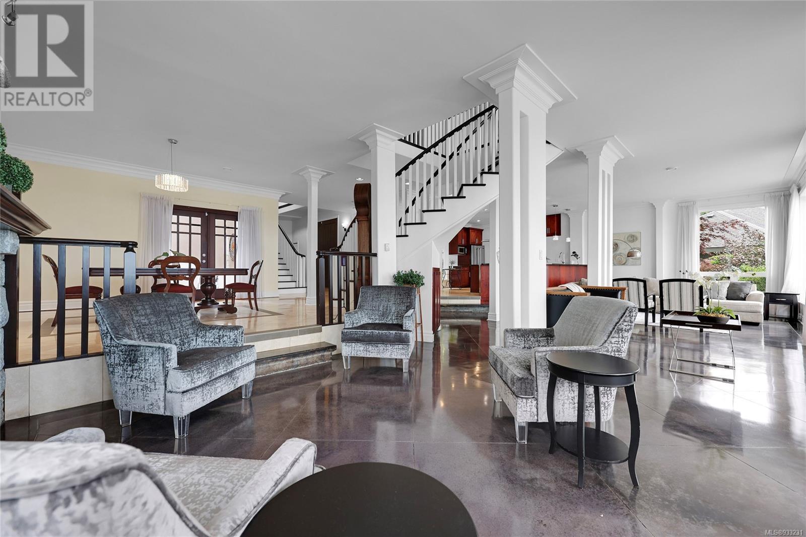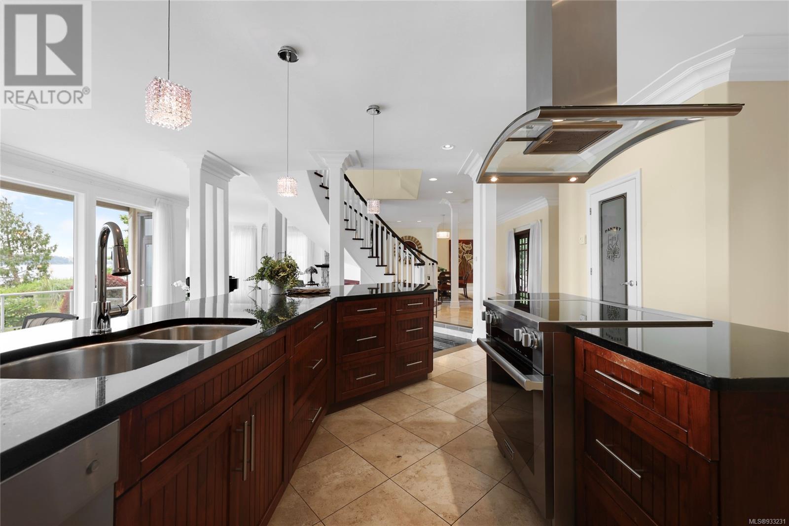 Welcome to this captivating waterfront home, offering unobstructed ocean views that will leave you in awe. From the moment you step inside, you're immediately greeted by a stately spiral staircase that leads the eye to the mesmerizing and calming vistas of the ocean, visible from the living room, kitchen, and the impressive patio and deck space. Ample room for the whole family, the main floor is reminiscent of grand homes from a bygone era with its’ columns, elevated dining space and large, stone fireplace gracing the living room. The turf backyard provides a low-maintenance space to enjoy outdoor activities while soaking in the coastal ambiance. Featuring a beach bungalow, miniature putting green and private access to the beach. Upstairs, you'll find an expansive primary bedroom that offers a truly luxurious experience; featuring a fireplace with a sitting room, a balcony with hot tub, and 3-piece ensuite creating a cozy and intimate space to unwind. The in-law suite is complete with two bedrooms, a kitchen, and a 3-piece bathroom, providing a comfortable and private space for visitors or extended family members. (id:22211)