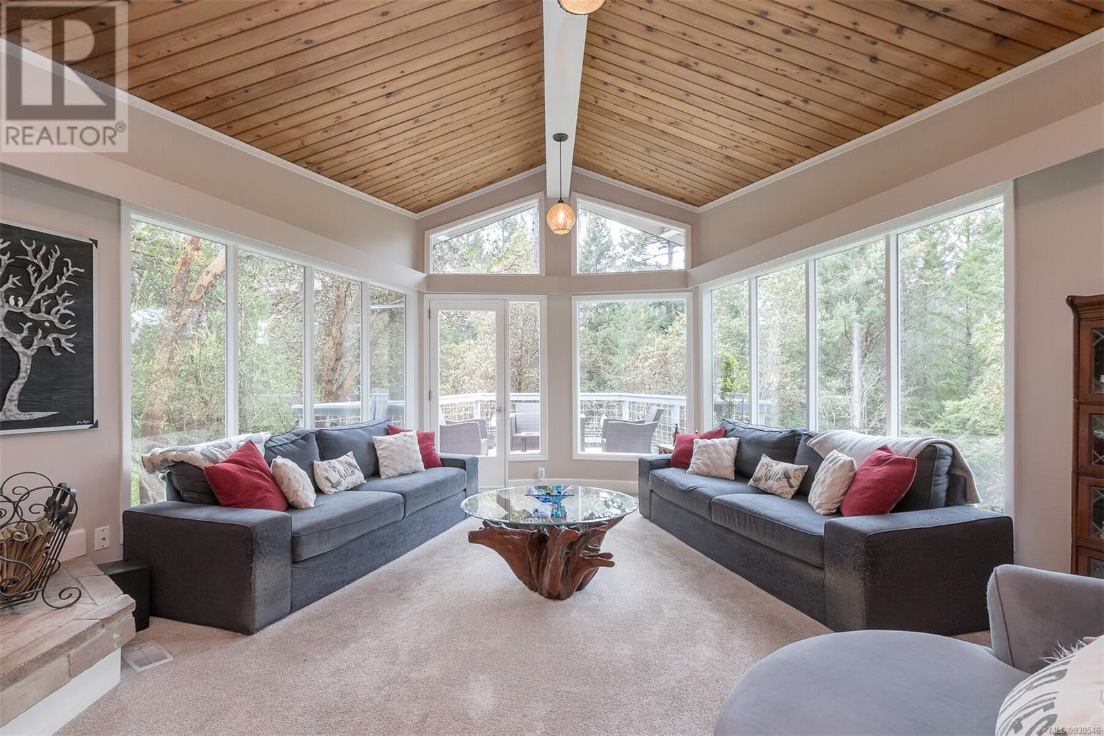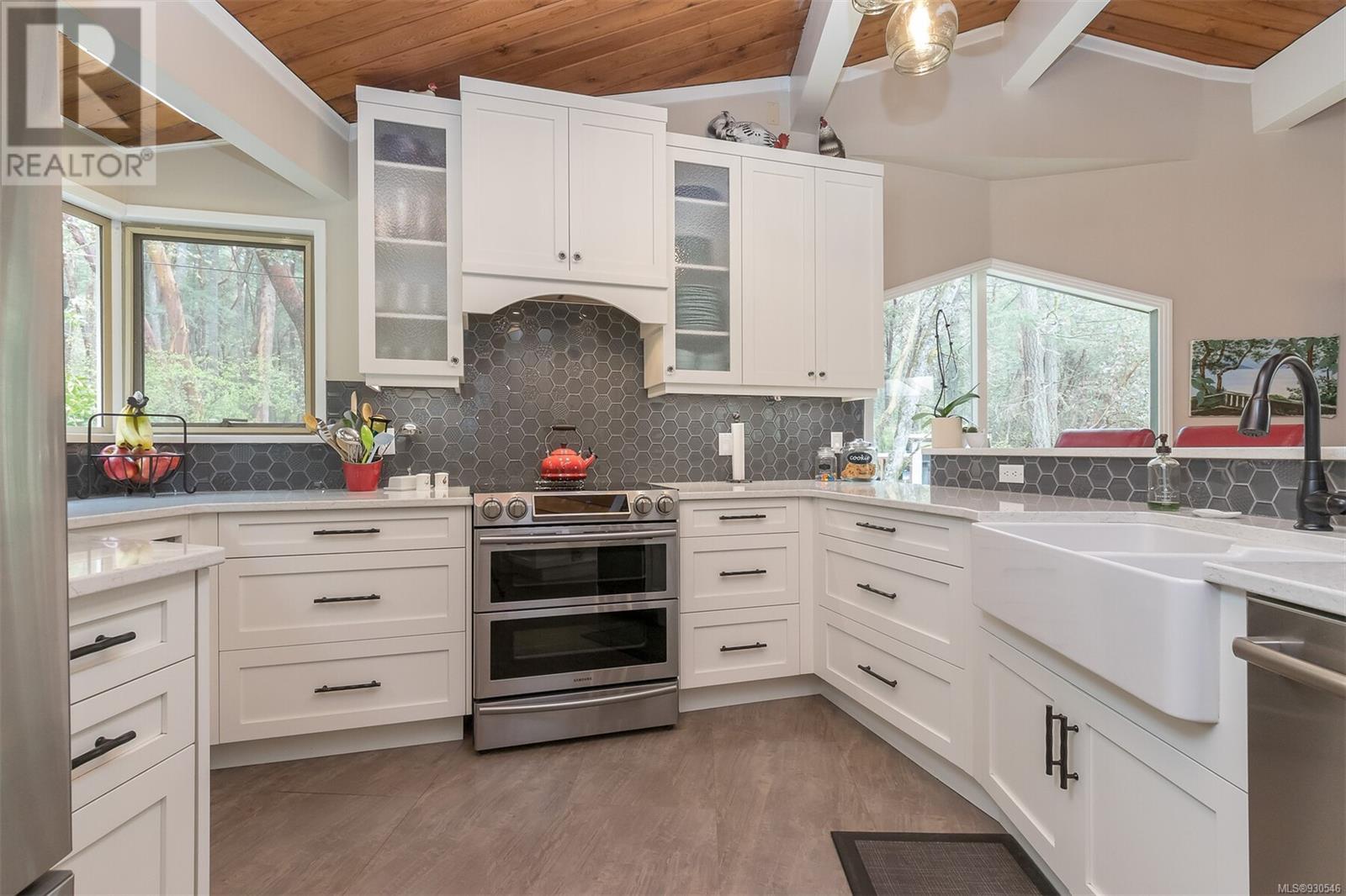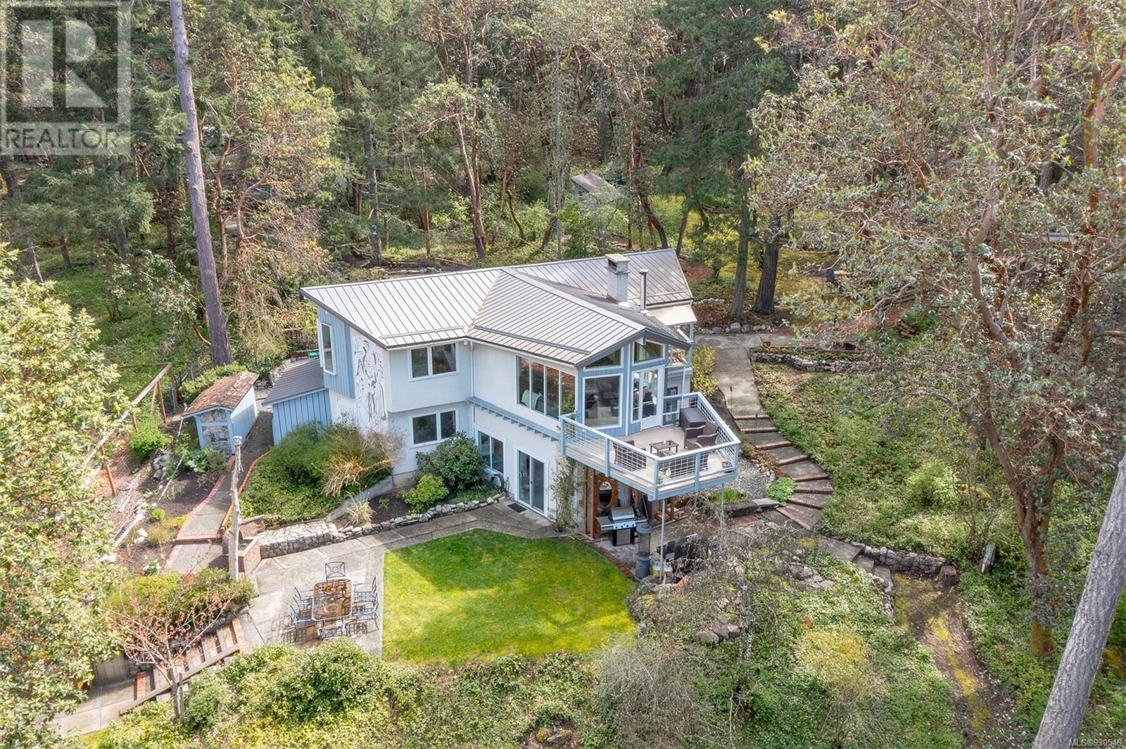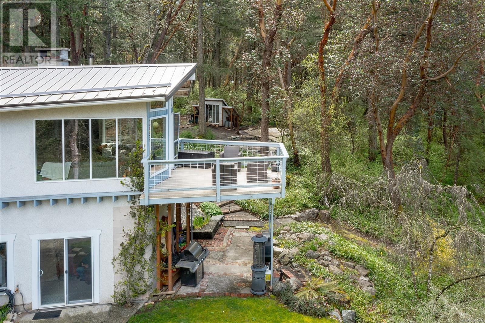 'Woodland Farm' is a secluded 5 acre rural retreat located on the westside of the Saanich Peninsula between the southern base of John Dean Park & the historic Mt. Newton Valley. Surrounded by endless greenspace & the Saanich Inlet at your doorstep, this property suits those looking to embrace the outdoors. Be welcomed home down the private drive & along the way you will find a separate Carriage House w/ dble carport, an ideal rental revenue stream or perfect for multi-generational living. Beyond that, the main house offers 4 bed/3 bath & 2,800 sq/ft of unique architectural detailing such as the custom floating curved staircase, over-sized picture windows & vaulted ceilings. The center jewel of the home is the professionally upgraded kitchen w/ eating bar, SS appliances & stone counters. Metal roof, 2014 septic system, distant ocean glimpses, raised garden beds, goats, chickens, side-by-side trails....there is no end to what one can do on this property. (id:22211)
