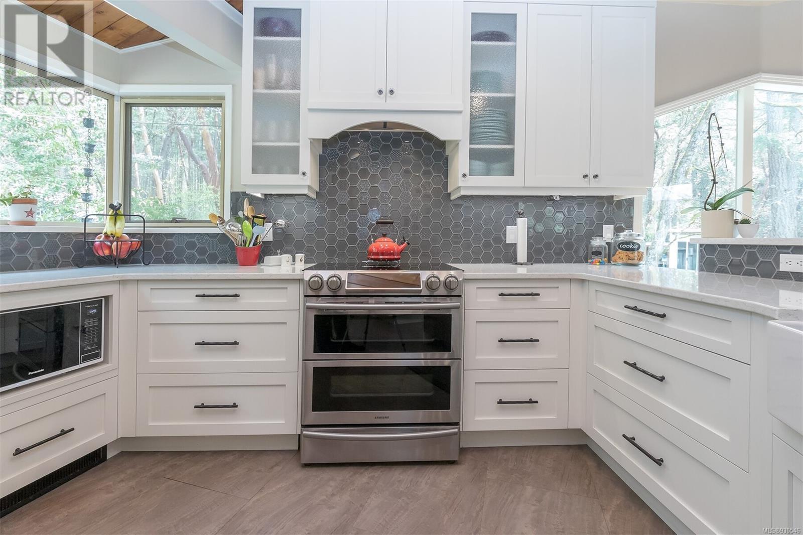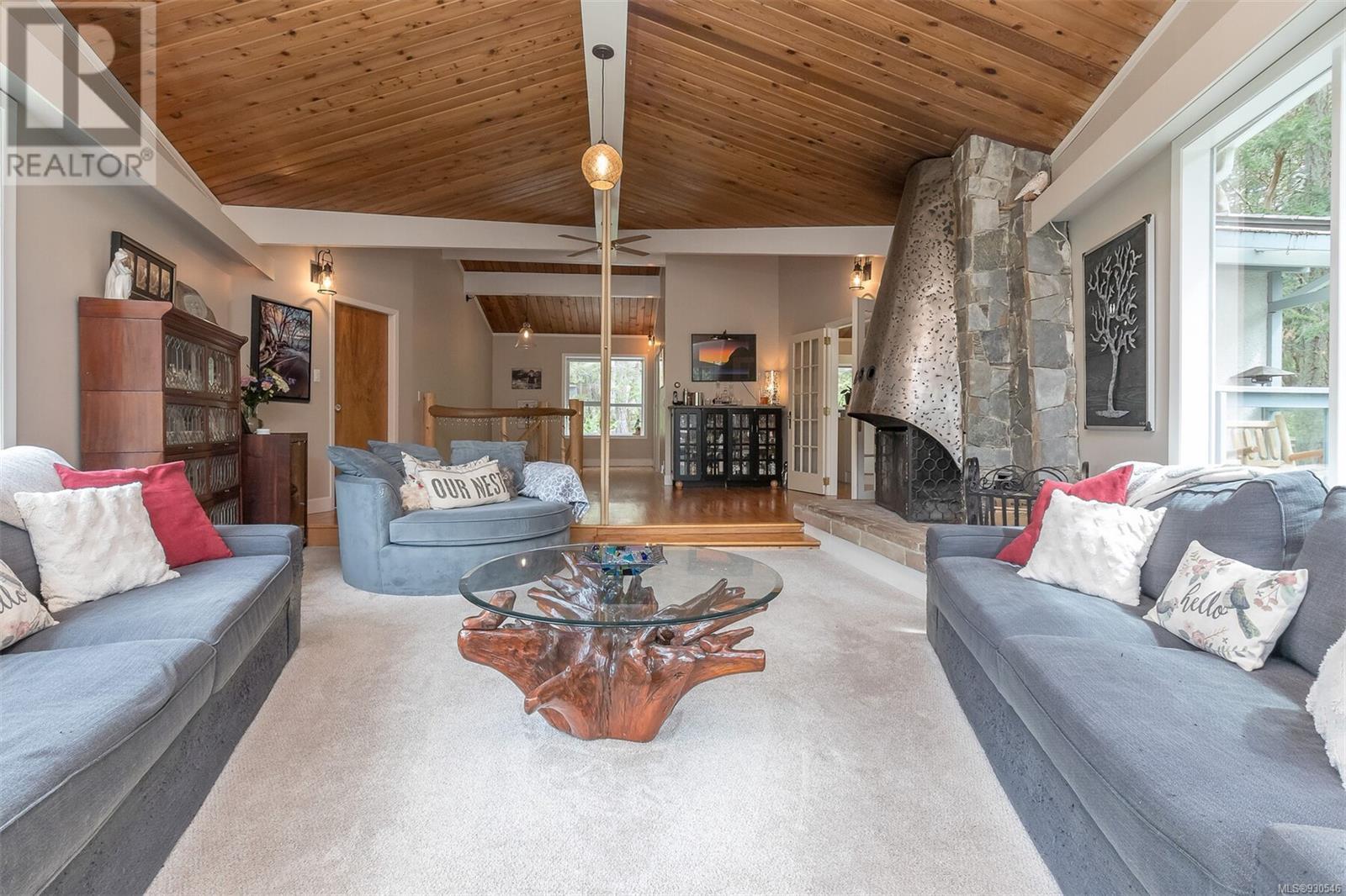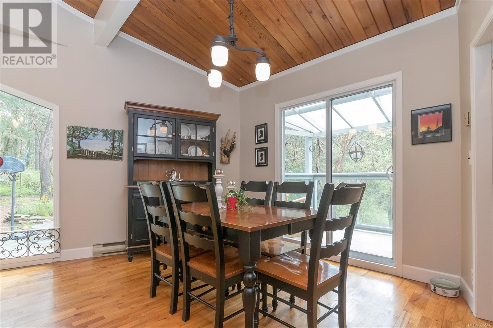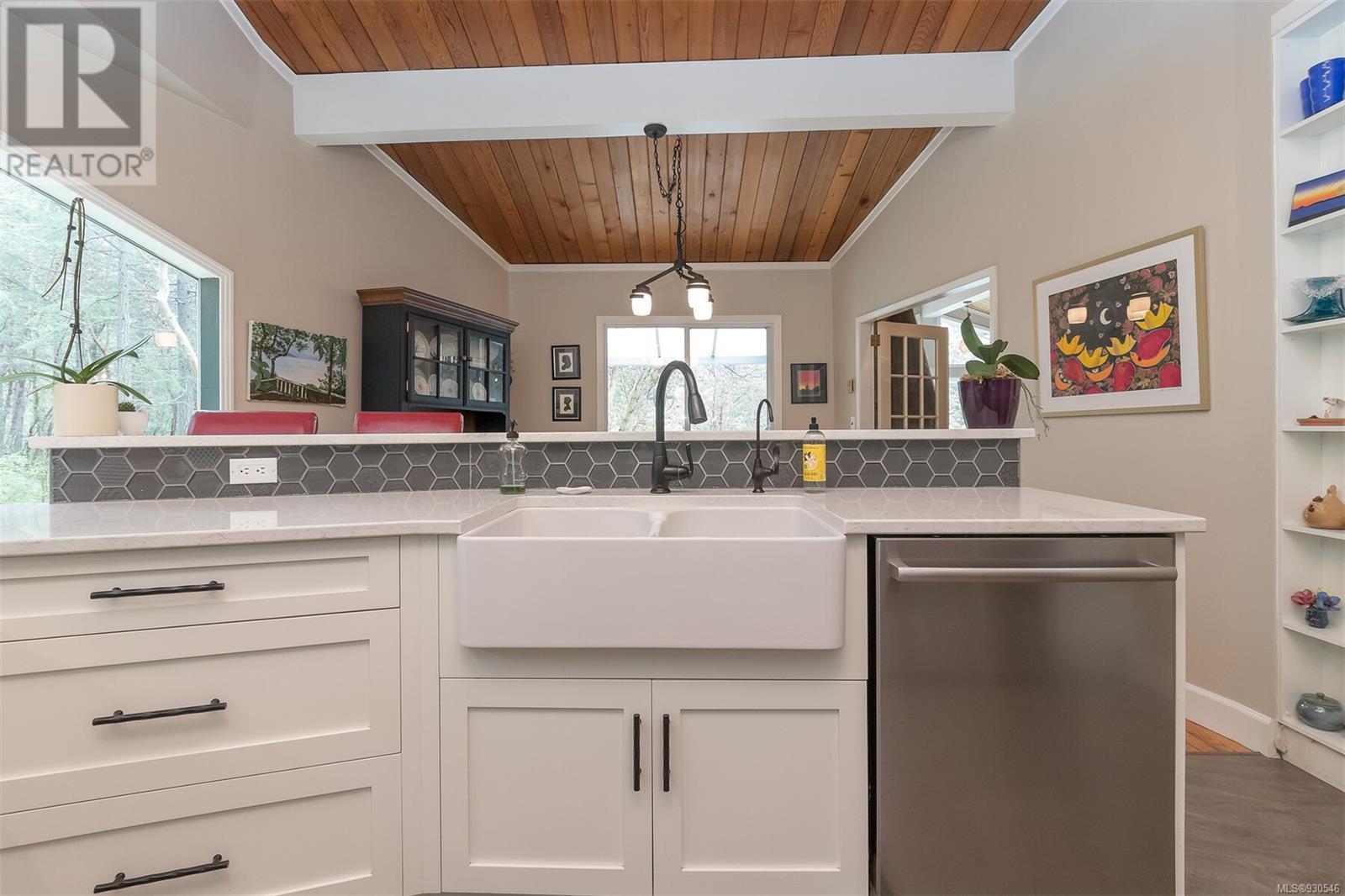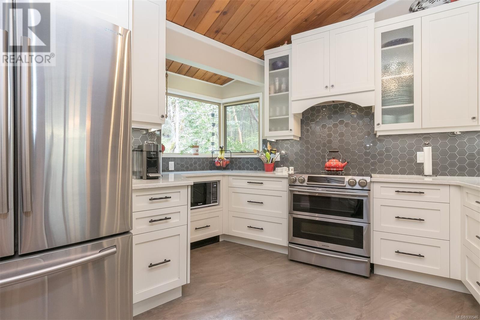 'Woodland Farm' is a secluded 5 acre rural retreat located on the westside of the Saanich Peninsula between the southern base of John Dean Park & the historic Mt. Newton Valley. Surrounded by endless greenspace & the Saanich Inlet at your doorstep, this property suits those looking to embrace the outdoors. Be welcomed home down the private drive & along the way you will find a separate Carriage House w/ dble carport, an ideal rental revenue stream or perfect for multi-generational living. Beyond that, the main house offers 4 bed/3 bath & 2,800 sq/ft of unique architectural detailing such as the custom floating curved staircase, over-sized picture windows & vaulted ceilings. The center jewel of the home is the professionally upgraded kitchen w/ eating bar, SS appliances & stone counters. Metal roof, 2014 septic system, distant ocean glimpses, raised garden beds, goats, chickens, side-by-side trails....there is no end to what one can do on this property. (id:22211)