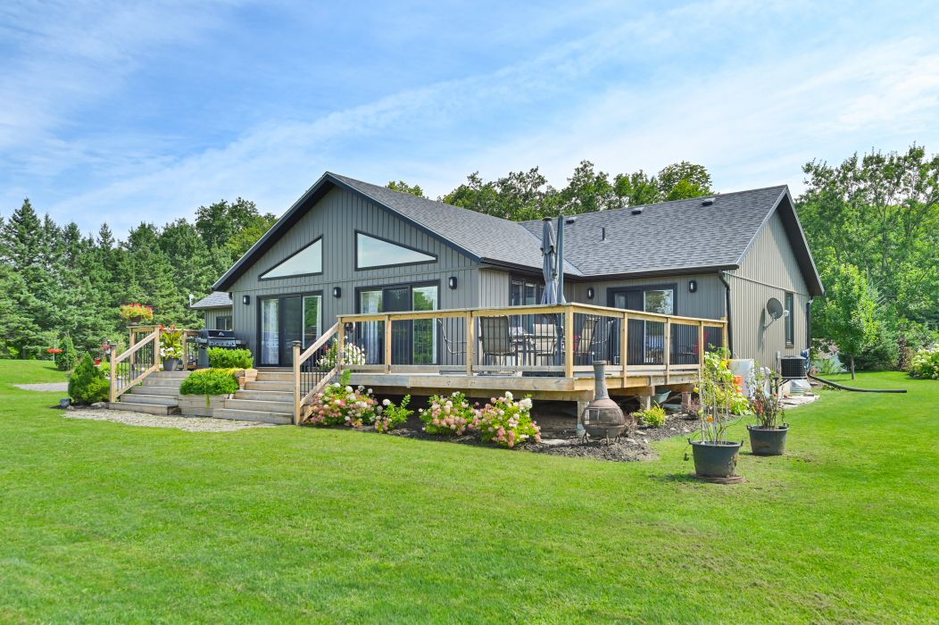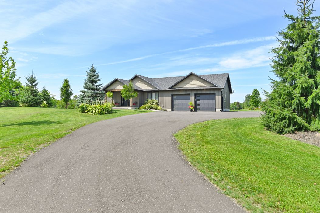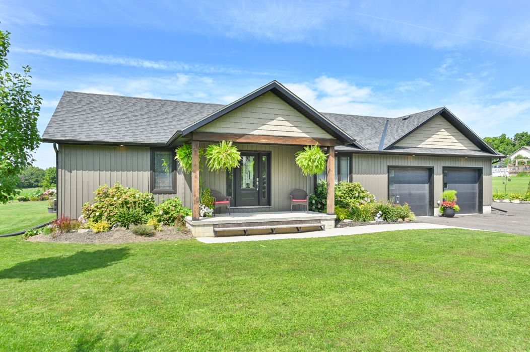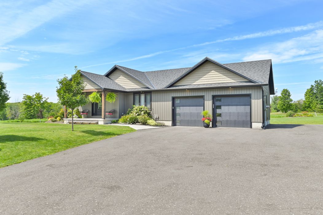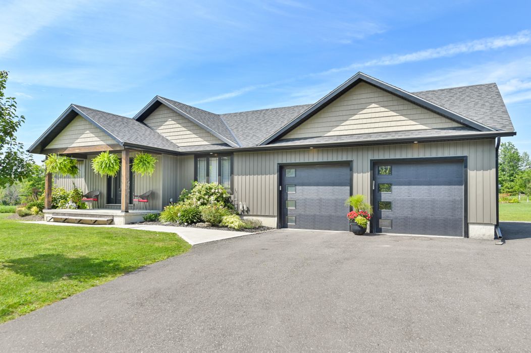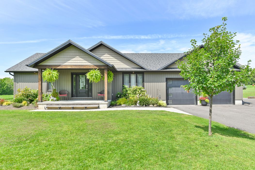 Country Charmer! Must See this Custom Built Bungalow on this beautifully landscaped 3.6 Acres! Gorgeous Setting in off the road, nice paved laneway leads to double car garage. Immaculate Home feautres inviting front porch leading to bright foyer, Nice layout with two good sized bedrooms on main level, primary bedroom features 3 pc enuite, spacious closet and walkout to deck. Lovely Open concept kitchen, living and dining area, cathedral ceilings with pot lighting, stunning propane fireplace, amazing views from the large windows, filling the room with natural light, two sliding glass doors to spacious wrap deck across back and side. Great space to entertain and enjoy the privacy. You'll fall in love with this modern kitchen featuring sleek white cabinetry, quartz counters, nice tile back splash, stainless steel appiances and spacious island. Entry from garage into main level and lower level. Full basement with potential for extra bedroom & bathroom. Also cozy woodstove for back up heat.Propane furnace & central air. Excellent location on quiet dead end cul de sac, 20 mins to Belleville. Home shows to Perfection, don't miss it!