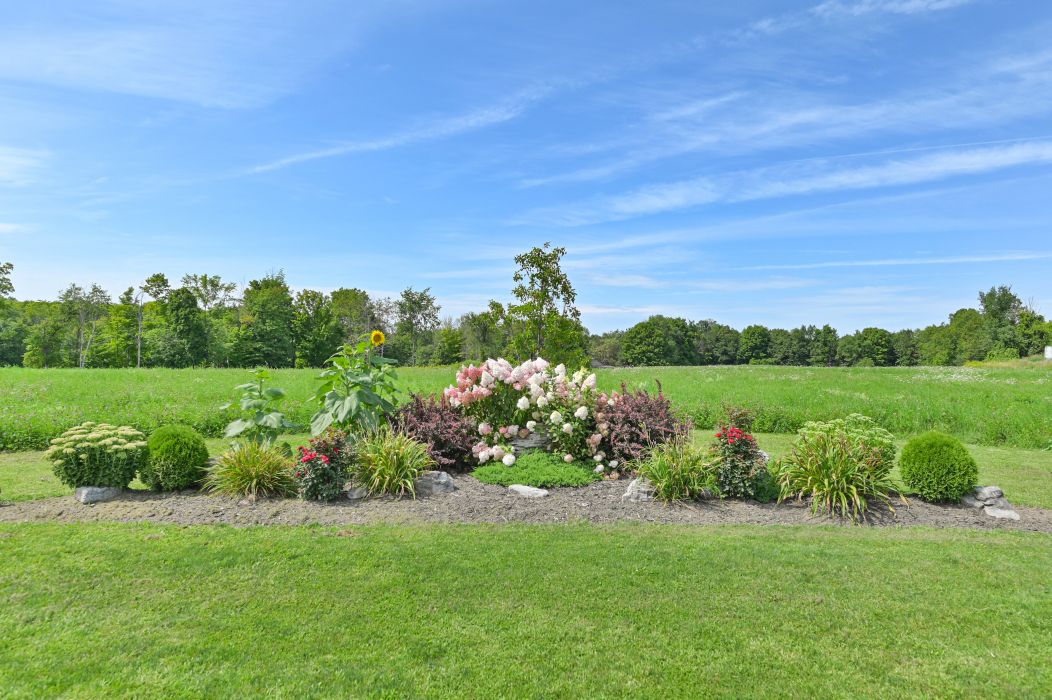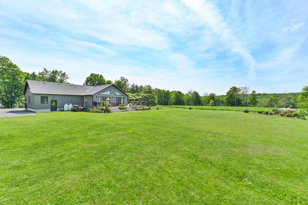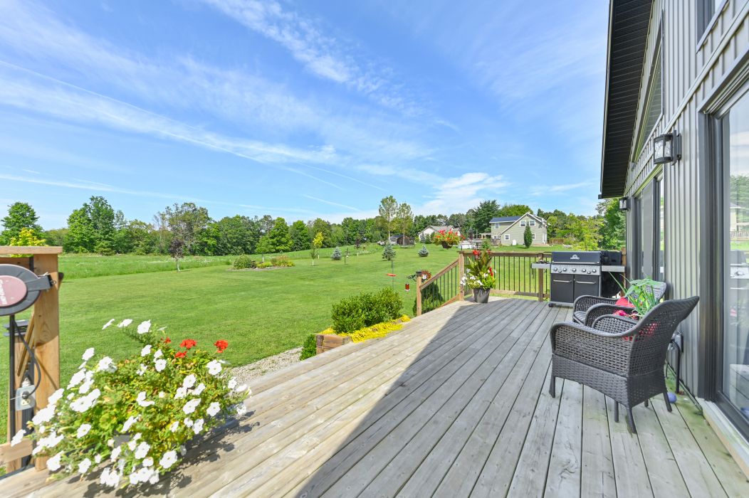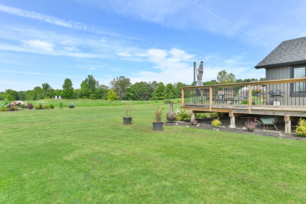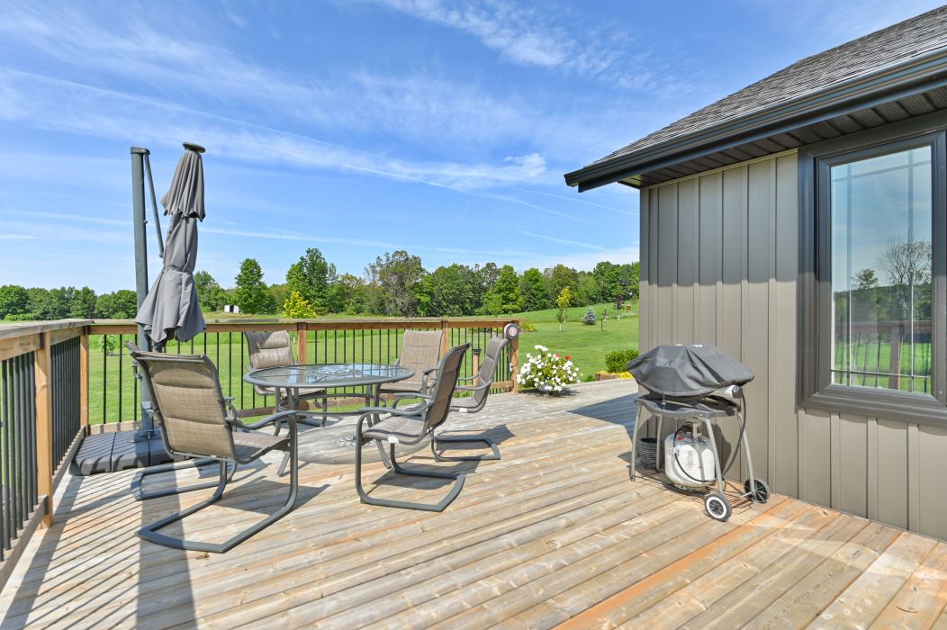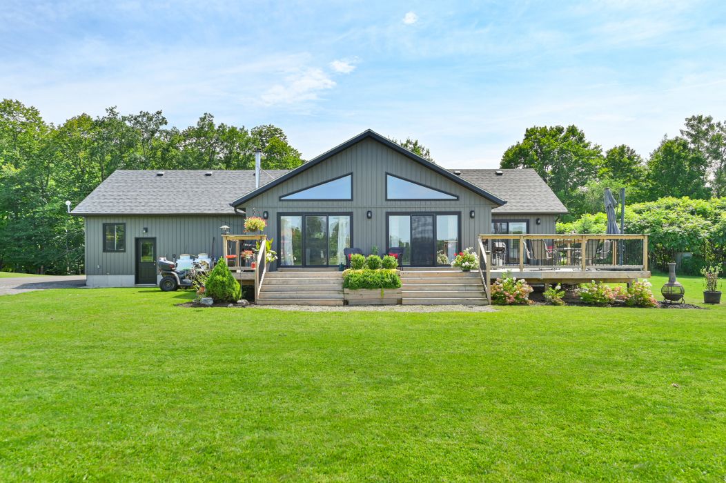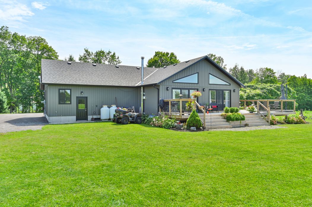 Country Charmer! Must See this Custom Built Bungalow on this beautifully landscaped 3.6 Acres! Gorgeous Setting in off the road, nice paved laneway leads to double car garage. Immaculate Home feautres inviting front porch leading to bright foyer, Nice layout with two good sized bedrooms on main level, primary bedroom features 3 pc enuite, spacious closet and walkout to deck. Lovely Open concept kitchen, living and dining area, cathedral ceilings with pot lighting, stunning propane fireplace, amazing views from the large windows, filling the room with natural light, two sliding glass doors to spacious wrap deck across back and side. Great space to entertain and enjoy the privacy. You'll fall in love with this modern kitchen featuring sleek white cabinetry, quartz counters, nice tile back splash, stainless steel appiances and spacious island. Entry from garage into main level and lower level. Full basement with potential for extra bedroom & bathroom. Also cozy woodstove for back up heat.Propane furnace & central air. Excellent location on quiet dead end cul de sac, 20 mins to Belleville. Home shows to Perfection, don't miss it!