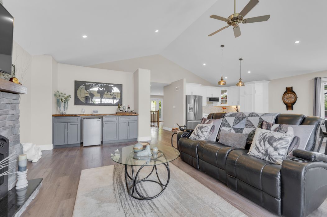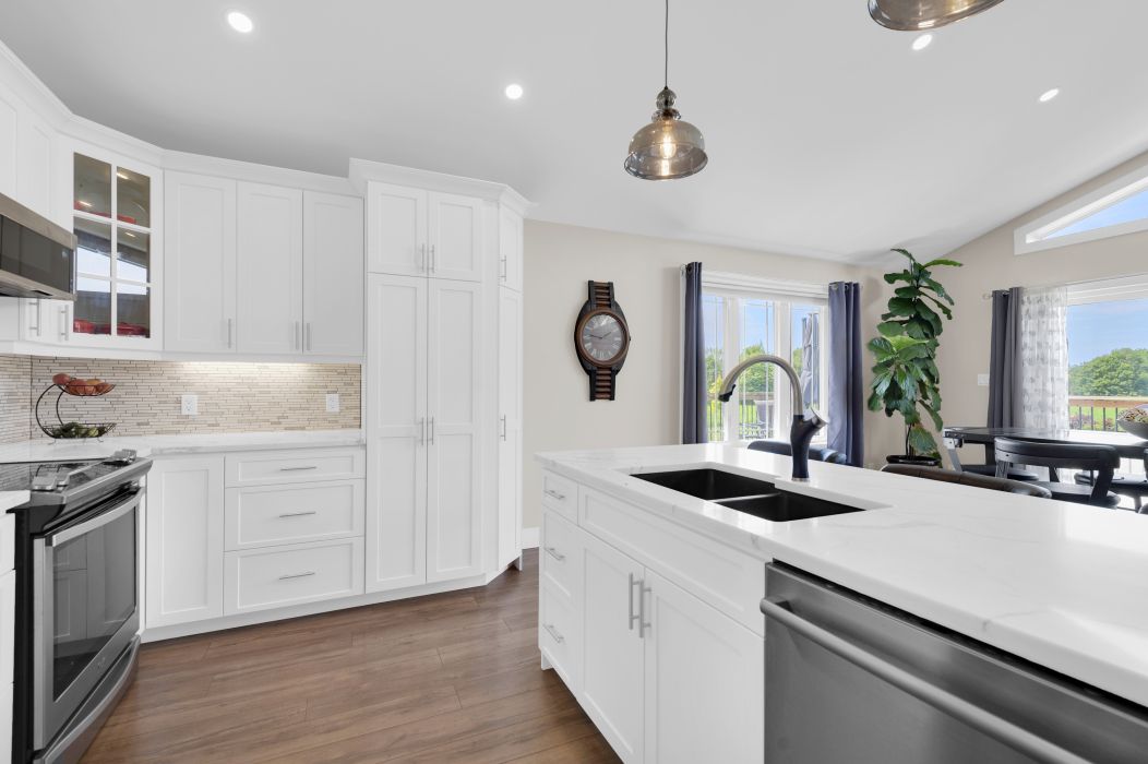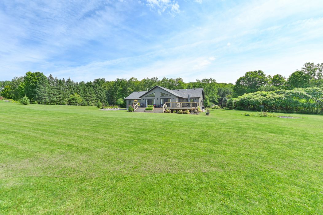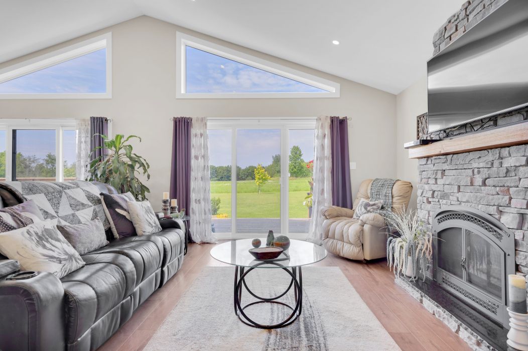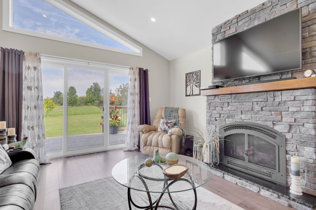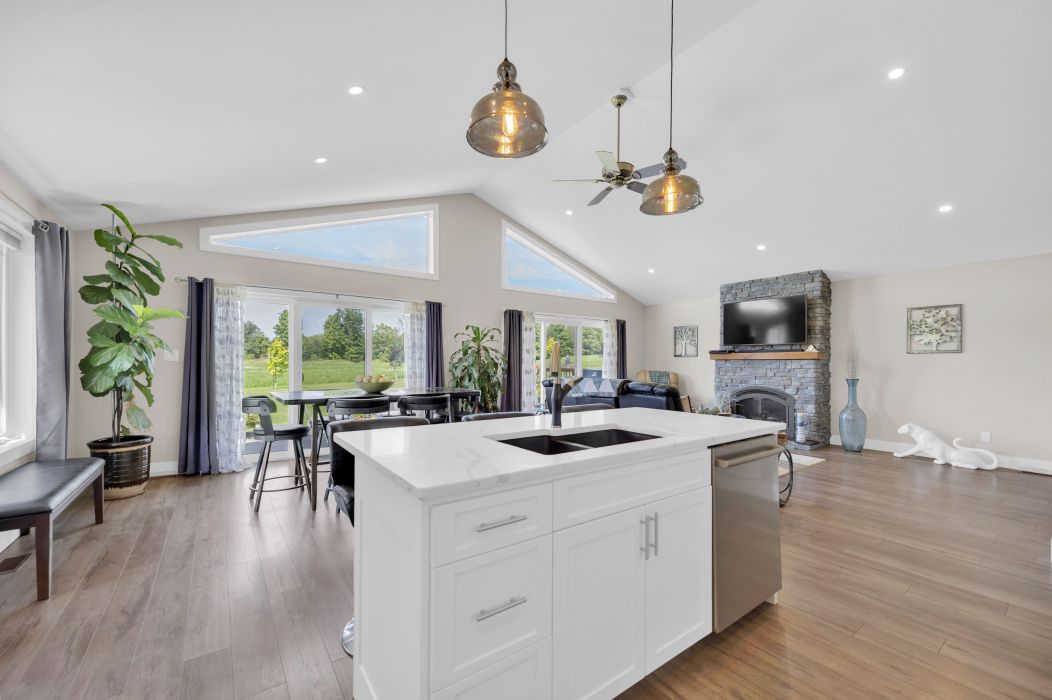 Country Charmer! Must See this Custom Built Bungalow on this beautifully landscaped 3.6 Acres! Gorgeous Setting in off the road, nice paved laneway leads to double car garage. Immaculate Home feautres inviting front porch leading to bright foyer, Nice layout with two good sized bedrooms on main level, primary bedroom features 3 pc enuite, spacious closet and walkout to deck. Lovely Open concept kitchen, living and dining area, cathedral ceilings with pot lighting, stunning propane fireplace, amazing views from the large windows, filling the room with natural light, two sliding glass doors to spacious wrap deck across back and side. Great space to entertain and enjoy the privacy. You'll fall in love with this modern kitchen featuring sleek white cabinetry, quartz counters, nice tile back splash, stainless steel appiances and spacious island. Entry from garage into main level and lower level. Full basement with potential for extra bedroom & bathroom. Also cozy woodstove for back up heat.Propane furnace & central air. Excellent location on quiet dead end cul de sac, 20 mins to Belleville. Home shows to Perfection, don't miss it!