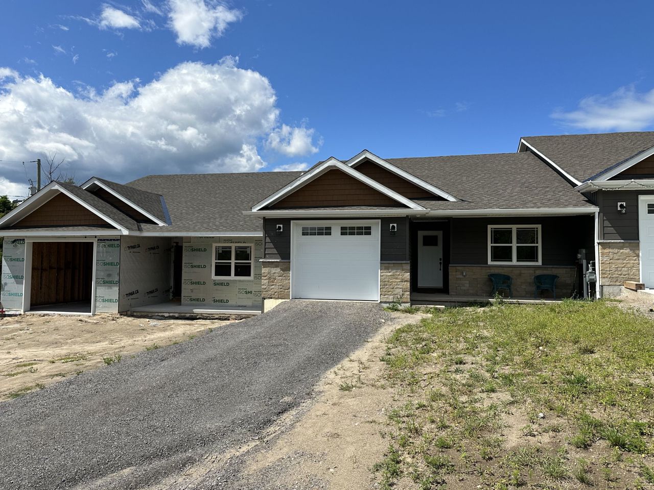 Welcome to Unit 102 in Hill Springs Estates in the quaint Village of Madoc. Save the condo fees with this interior unit freehold town-home with 1158 sq feet of living space with two bedrooms , 4 pc main bath with laundry, 3pc en-suite and 3 sun tunnels for natural light. Attached single garage with inside entry and comes with garage door opener. Inviting front patio area plus a covered deck at back which is accessed through the oversized sliding patio door. Hardwood & ceramic floors, gas furnace and fireplace and HRV. Full basement is accessed through the garage and makes for great storage. Experienced builder with attention to detail and quality throughout. Full TARION Warranty plus 1 year comprehensive builder warranty. Close proximity to numerous lakes and recreational trails & only 30 minutes to Belleville and Hwy 401. Some pictures are from previously sold units.