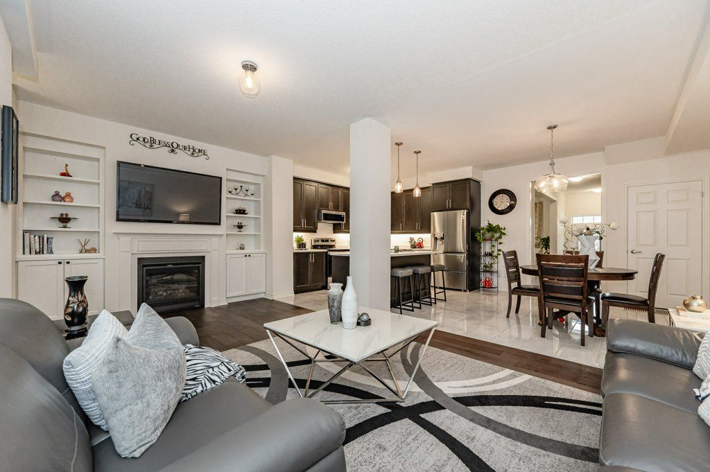 Welcome to this 1 Year New Stunning 2088 Sq Feet Eastman Model 3-Bedroom Townhome Located in the Heart of Fergus. Step Inside and be Greeted by the Beautiful Hardwood Floors on the Main Level Which has Sep Living combined w/dining And has Oak Staircase. Plenty of Natural Light to Flood in Through the Large Windows in the Living Area. The Kitchen has Been Upgraded and Boasts a Huge Island, It is an Open Concept, Having a Large Designer Family Size. Cozy Family Room with Gas Fireplace, w/Custom In-Built Wall Shelves. Upstairs, you'll find Three Spacious Bedrooms. The Master Bedroom Features a Luxurious 6-Piece Ensuite Bathroom and a Huge Walk-in Closet, Providing Ample Storage Space. The Other Bedrooms also Benefit from Large Windows. Step Outside to the Backyard and Discover a Decent-Sized Interlocked Fenced Private Backyard. Close to all the Amenities Like Parks, Shopping, Grocery, Gas Station, Schools.Looking A+ Tenants. Short Term Tenants Also Welcome. Can Be Provide Furnished Or Unfurnished. Please Provide Job letter, Credit Bureau, Pay Stubs, Ids