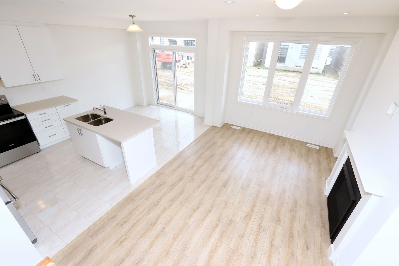Welcome to this spacious 4-Bedroom, 3 Bathroom, 2,055 SqFt. (Per Bulders Plan), brand new home in the Storybrook neighbourhood of Fergus. The home is decorated in designer neutral tones. Large windows bring lots of natural light into the home. There is parking for two cars. Main floor is Open Concept Living/Dining room flowing through to the Eat-in Kitchen/Family Room. A gas fireplace is the focal point of the family room. A sliding door from the breakfast nook leads out to the sun filled backyard. Make your way upstairs to the private area of this home. The primary bedroom has a large walk-in closet and 4-pc ensuite with both a soaker tub and glass shower. The smaller bedroom would be a great home office or nursery. There are two other bedrooms and a 4-pc bathroom. The most convenient aspect of the second floor is the spacious laundry room. The basement is currently unfinished but makes for a great storage area. Tenant is responsible for utilities.