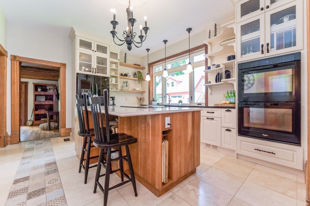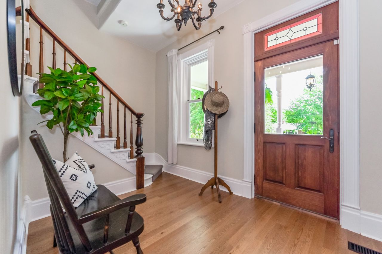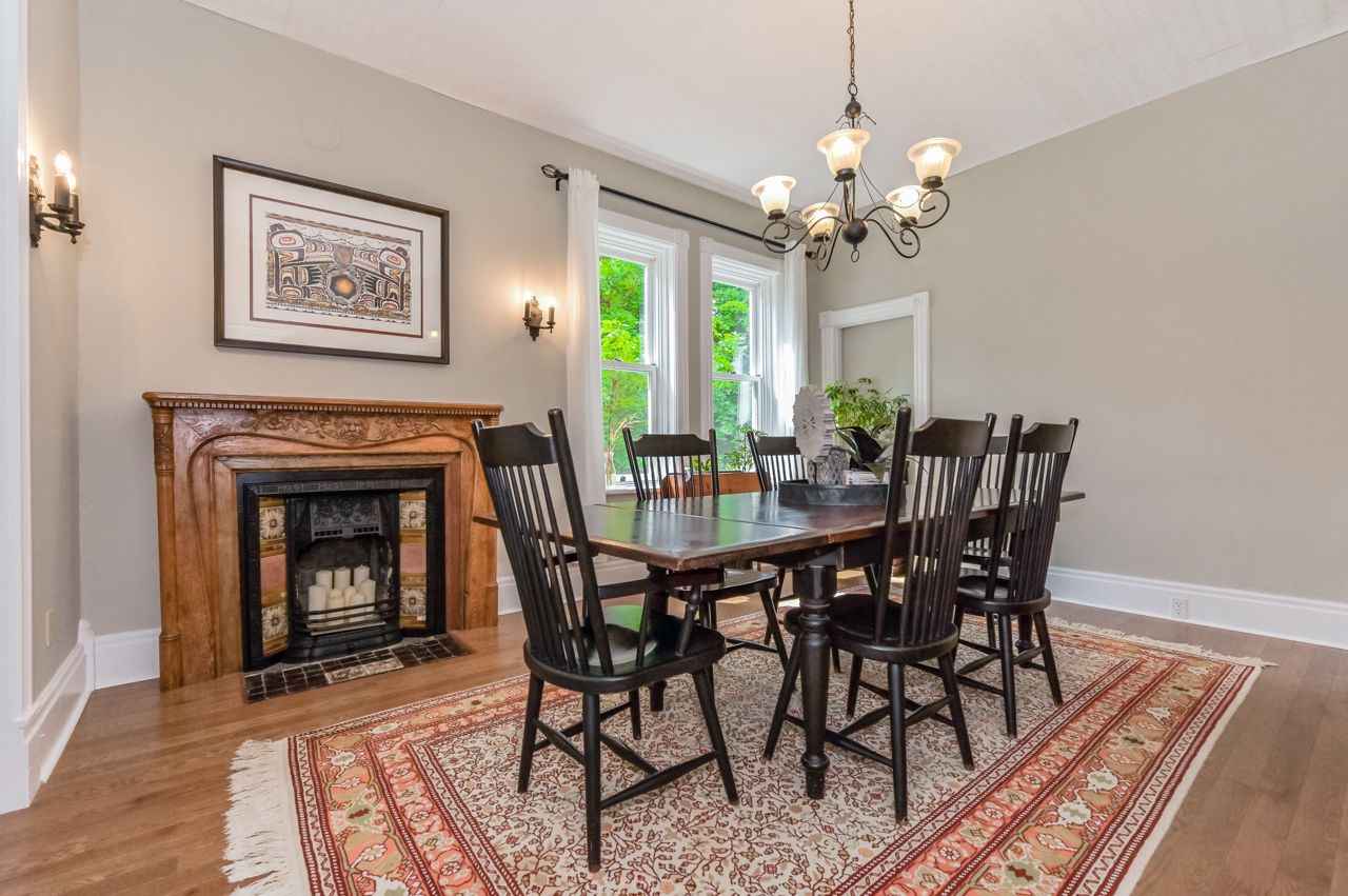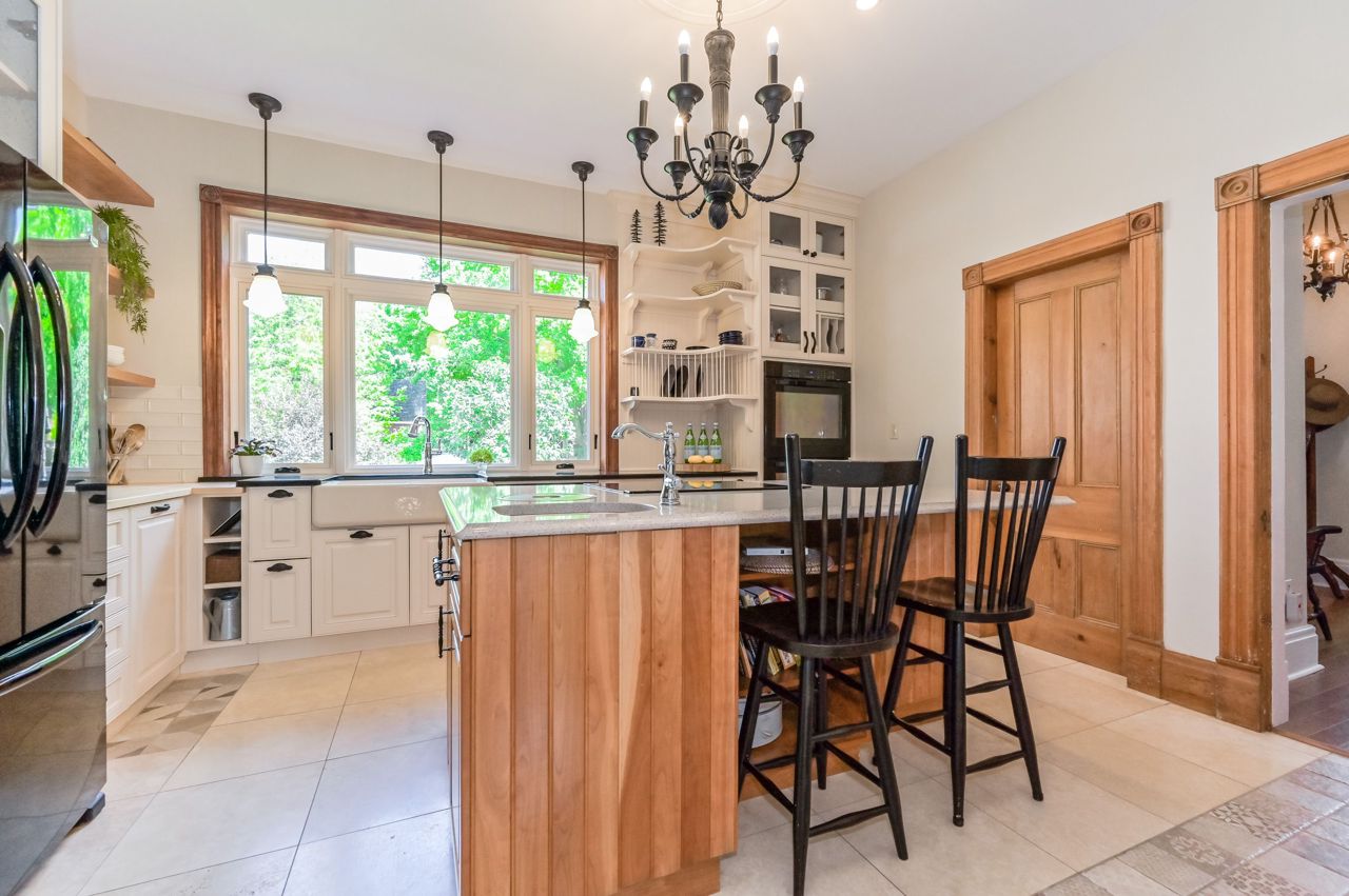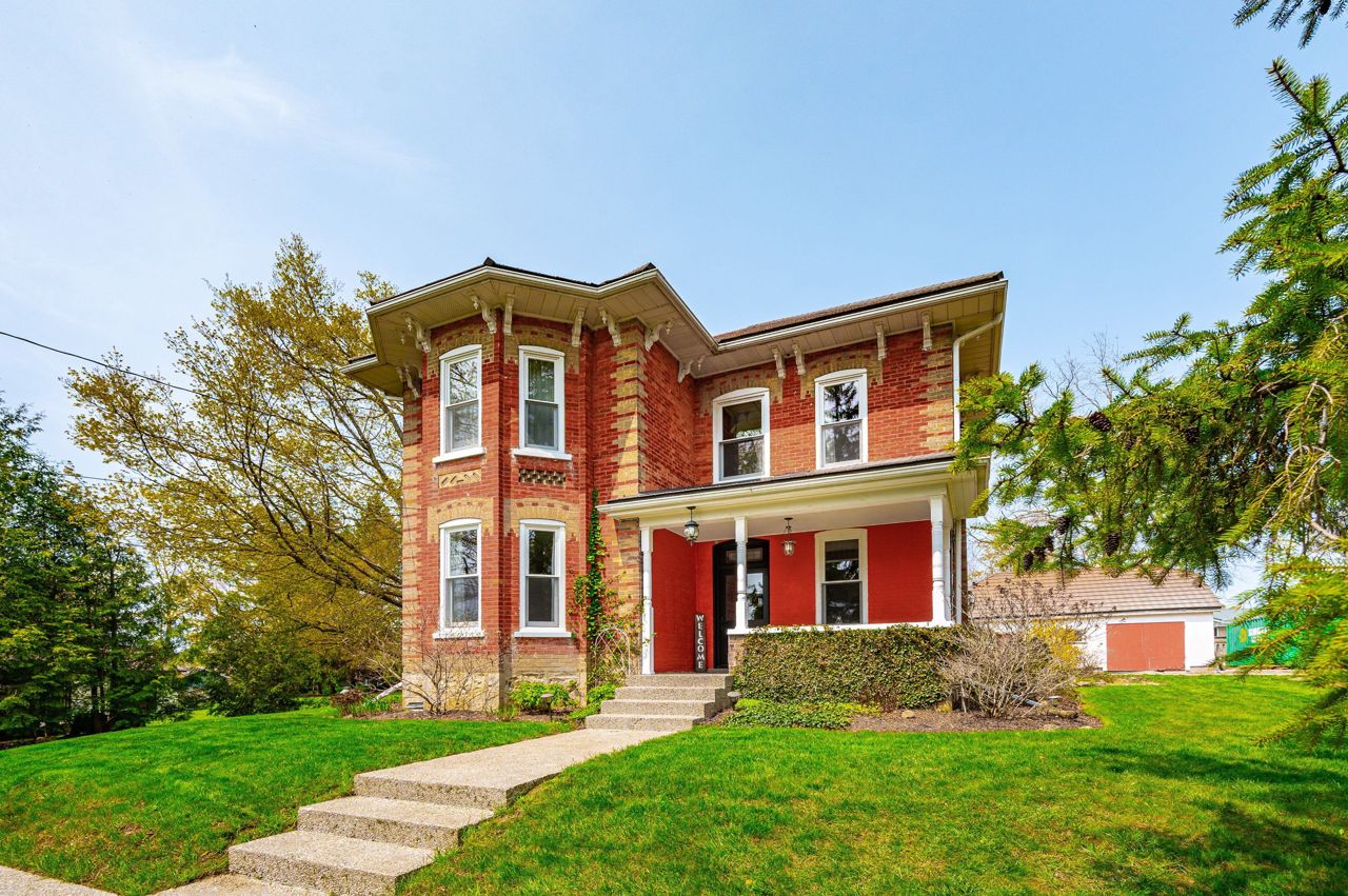 Originally built in 1930 this brick home has been beautifully updated and meticulously maintained by its current owners; providing modern living with all the charm and character you could ever dream of. Inside the home the old-time grandeur and character is evident the moment you walk through the front door. High ceilings throughout, hard wood floors, beautiful trim work, baseboards and stunning pocket doors that separate the living and dining room. Inside, a generous foyer leads you into the rest of the main floor. A large updated kitchen with huge island with seating. An enormous window floods the kitchen with natural light. A very cozy family room with wood stove, two-piece bathroom, handy mudroom with back entrance and main floor laundry complete the first level. Upstairs and you will find three bedrooms, two bathrooms and an office space. Head back down and out to the back yard - amazing landscaped yard and gardens, shed & oversized garage perfect for a workshop and storage.Door is tricky to lock. Hold handle upwards and turn key all the way to the left. Black construction fence