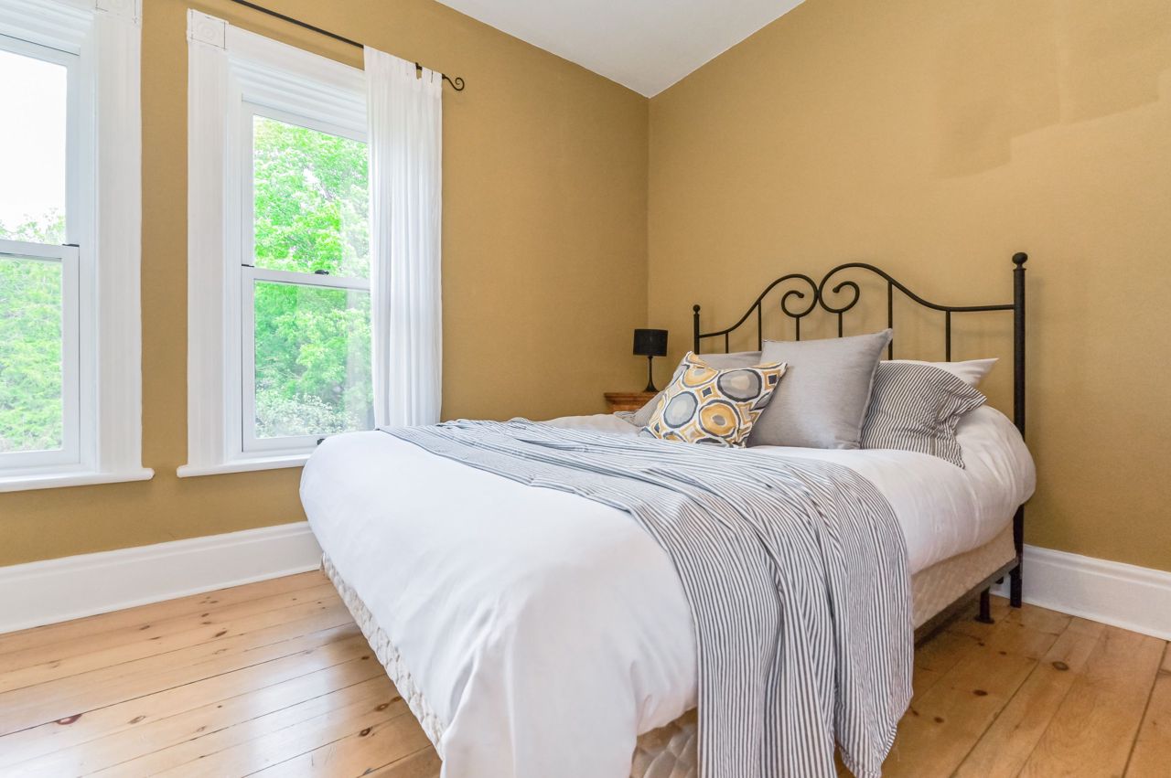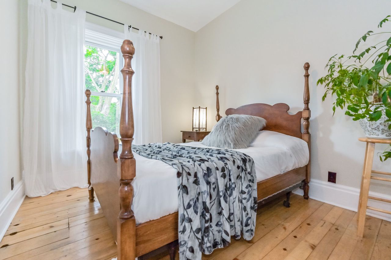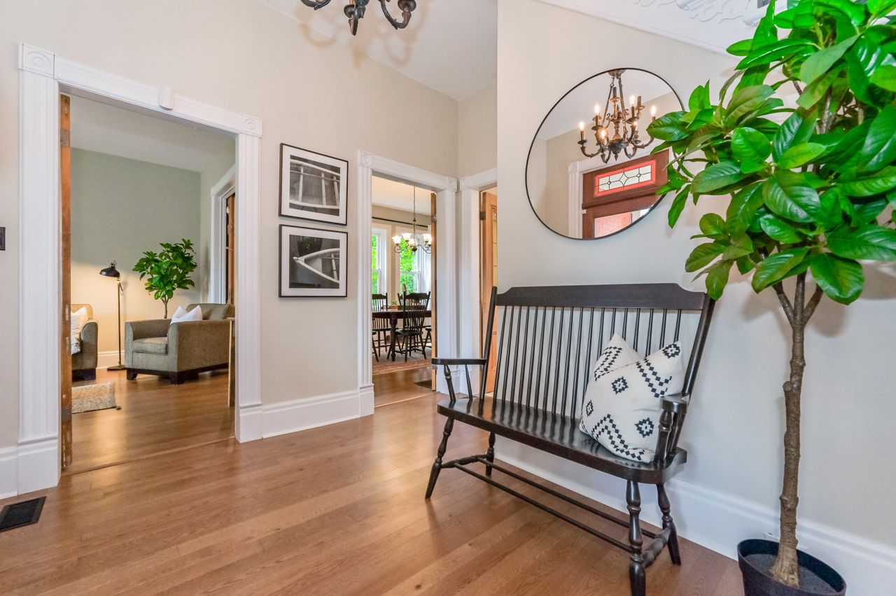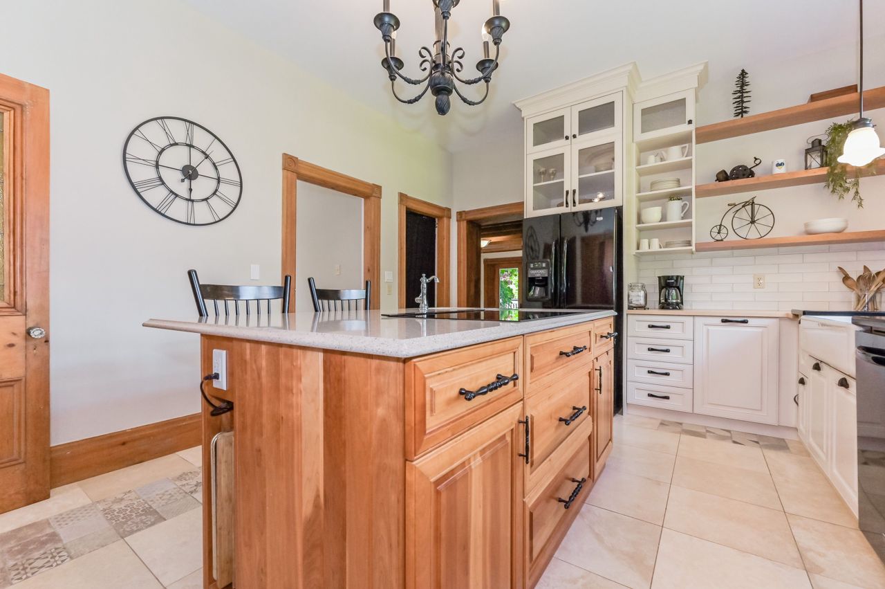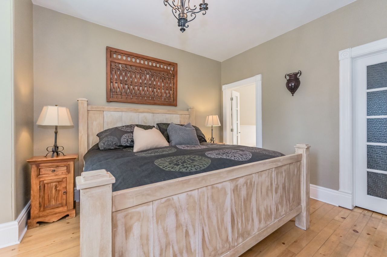 Originally built in 1930 this brick home has been beautifully updated and meticulously maintained by its current owners; providing modern living with all the charm and character you could ever dream of. Inside the home the old-time grandeur and character is evident the moment you walk through the front door. High ceilings throughout, hard wood floors, beautiful trim work, baseboards and stunning pocket doors that separate the living and dining room. Inside, a generous foyer leads you into the rest of the main floor. A large updated kitchen with huge island with seating. An enormous window floods the kitchen with natural light. A very cozy family room with wood stove, two-piece bathroom, handy mudroom with back entrance and main floor laundry complete the first level. Upstairs and you will find three bedrooms, two bathrooms and an office space. Head back down and out to the back yard - amazing landscaped yard and gardens, shed & oversized garage perfect for a workshop and storage.Door is tricky to lock. Hold handle upwards and turn key all the way to the left. Black construction fence