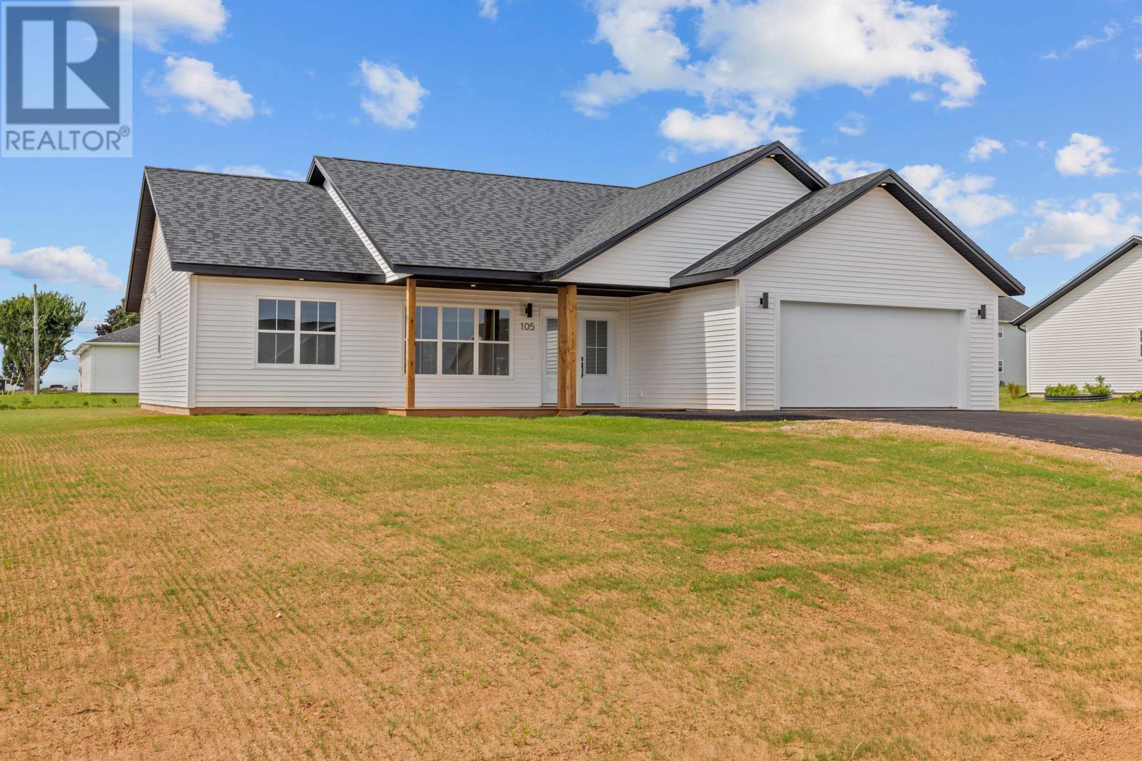 Welcome to 105 Kindred Avenue in the sought-after Montgomery Subdivision. This newly constructed home is ready for its new owners to love and enjoy. A modern-style rancher boasting 1537 sqft with a heated double-car garage. As soon as you enter from the front door you will be greeted with an open-concept Living Area with Tray Ceiling, Dining Room and Kitchen with Quartz countertops and stainless steel appliances. From the Kitchen and Dining Room, a large deck will be the sight of family cookouts and relaxing evenings all while taking in the view of the Hillsborough River and warm summer breezes. A large primary bedroom with an oversized walk-in closet and spacious ensuite with double sink vanity. 2 large bedrooms, and a Bathroom finish off the interior of this well-laid-out home. Lastly, with the heated double-car garage, you shouldn't have to worry about cleaning, or warming up your car during the cold winter months. This home is a heated with a Mitsubishi Heat pump and electric baseboard rads. Finally, add peace of mind with a 7-year Lux Home Warranty. All measurements are approx. and should be verified if deemed necessary. The Real Estate Agent is the general contractor, and the Owners is a Real Estate Agent. The purchase price includes HST. The HST rebate is to be assigned to the vendor closing. (id:22211)