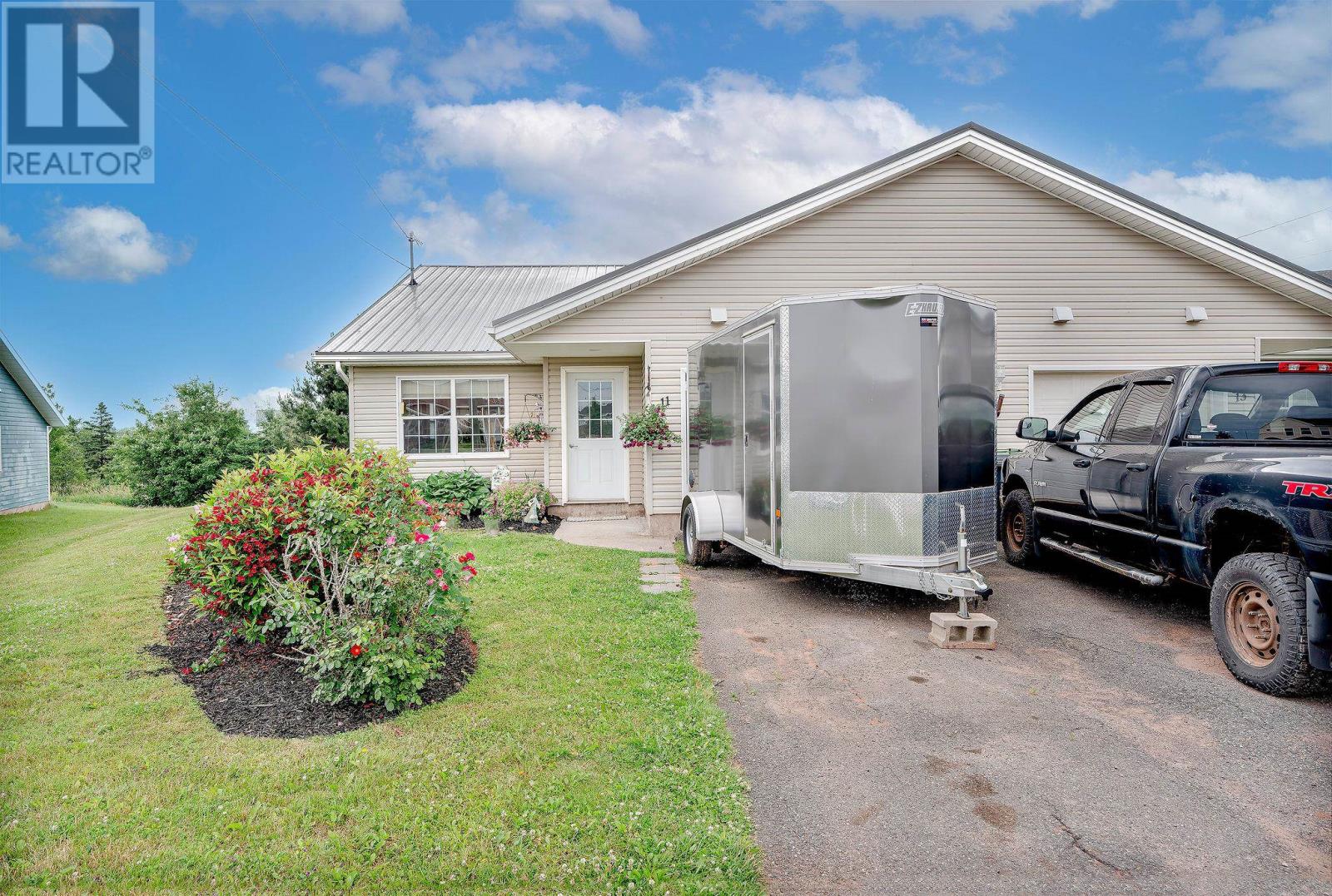 Nestled on a generous lot on the outskirts of historical Charlottetown, this beautiful one-level semi-detached home, offers a perfect blend of comfort, convenience, and peaceful surroundings. Step inside to discover a welcoming open-concept layout that integrates the kitchen and living room. The spacious kitchen is a stylish and functional space with lots of cabinetry. Throughout the home, enjoy the benefits of freshly painted walls and new flooring, providing a fresh, modern atmosphere. Natural light floods the living areas, enhancing the sense of space and warmth. The home includes two spacious bedrooms, providing ample space for relaxation and privacy. A full bathroom and a convenient half-bath ensure practicality and comfort for daily living. Outside, relish the serenity of the expansive backyard that backs onto a sprawling green space, offering a private retreat with scenic views. A durable steel roof ensures durability and low maintenance, while a new heat pump provides efficient heating and cooling throughout the seasons. Additional features include a garage for secure parking and storage, as well as a shed for extra convenience. Located close to schools, parks, shopping centers, and transit routes, this property offers easy access to amenities while still providing a peaceful residential setting. Don't miss out on the opportunity to own this well maintained and thoughtfully updated home. Updates include steel roof 2023, heat pump 2024, washing machine 2023, refrigerator 5 years old, flooring living room 2024, and dishwasher 2023. Please note: Tax and Assessment values are to be determined. One of the listing agents is related to one of the Vendors. (id:22211)