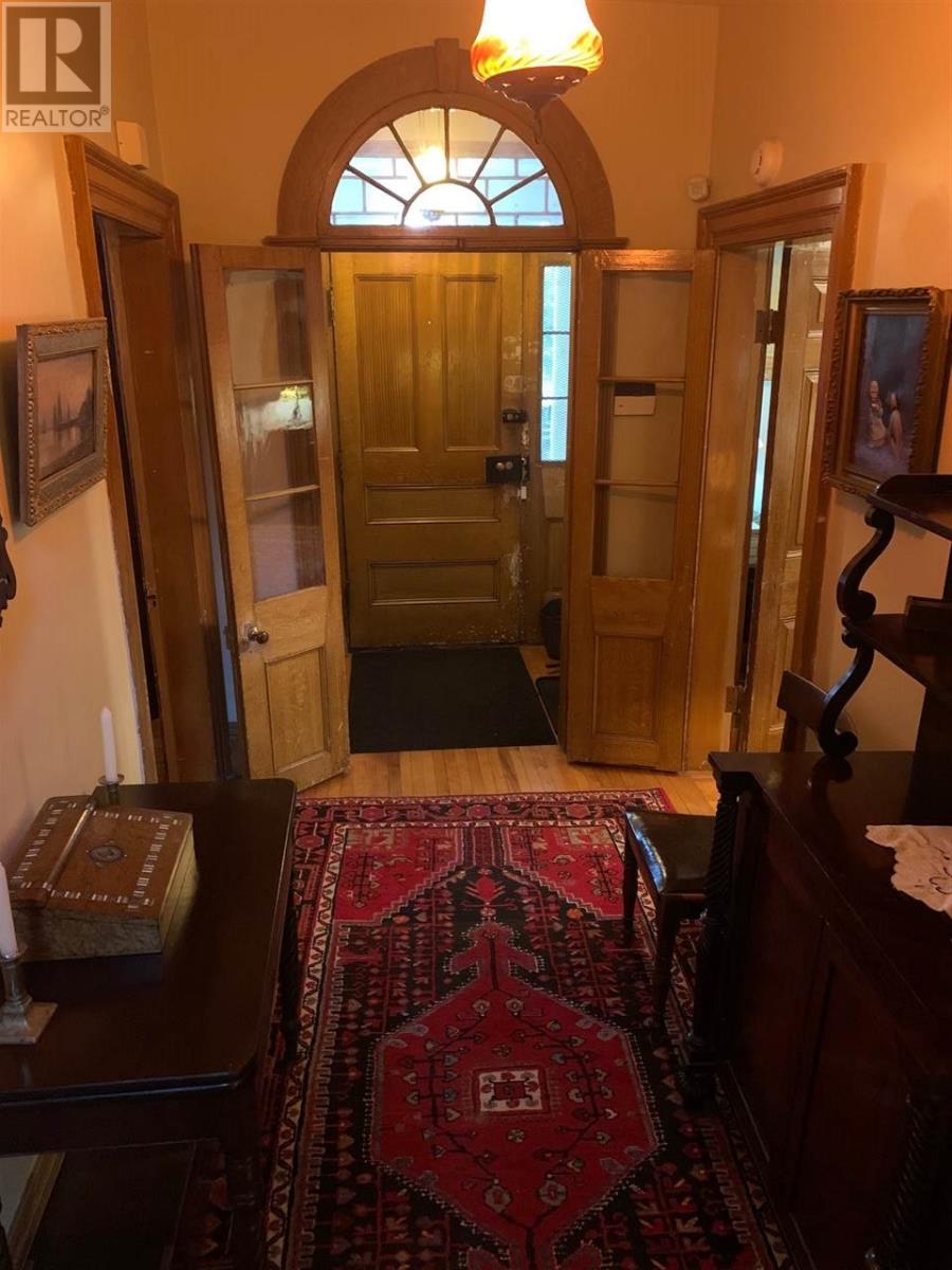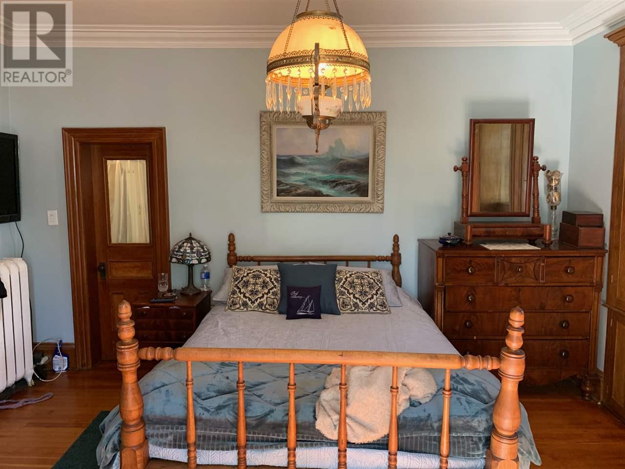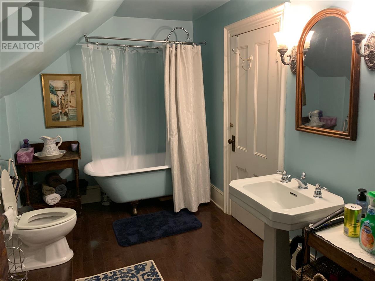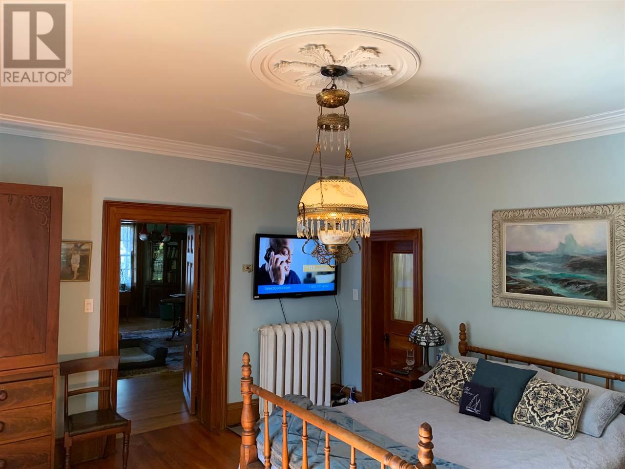 An opportunity to own one of Charlottetowns most important historic properties. Country living in a down town setting. This large impressive, beautifully restored 5 bedroom early 1800s home features 2 and 1/2 bathrooms, original woodwork, hard and softwood floors throughout as well as two functional fireplaces and kitchen wood stove. A large story and half carriage house is also included with the property. Fenced in yards separated by gates with trees galore, this property enjoys privacy unique to Charlottetowns down town. The main level features an enclosed front entry and hallway accessing a large living room with wood burning fireplace and french doors opening out to a covered veranda overlooking fruit trees, ferns and flower gardens. Off the living room youll access a very large main level bedroom with a private bathroom en-suite and french doors accessing the treed outdoor side yard setting. The main level also features a large secondary parlor with fireplace which leads into the dining room providing access to a large eat in kitchen with wood burning stove and secondary stairs leading to the original maids quarters and upstairs bedrooms. The main level also includes a side bathroom and back entryway. On the second level you will find 3 bedrooms plus a bathroom, secondary bedroom with laundry room as well as a large storage room. This exceptional property could easily be separated into one 4 bedroom 2 & 1/2 bath unit plus a large ground floor 1 bedroom apt or in-law suit. Annual heating costs for this well insulated home are surprisingly low, averaging$ 3000 for heat and domestic hot water and $ 600 for wood. All measurements should be verified by the purchaser. Property Disclosure Statement completed. (id:22211)