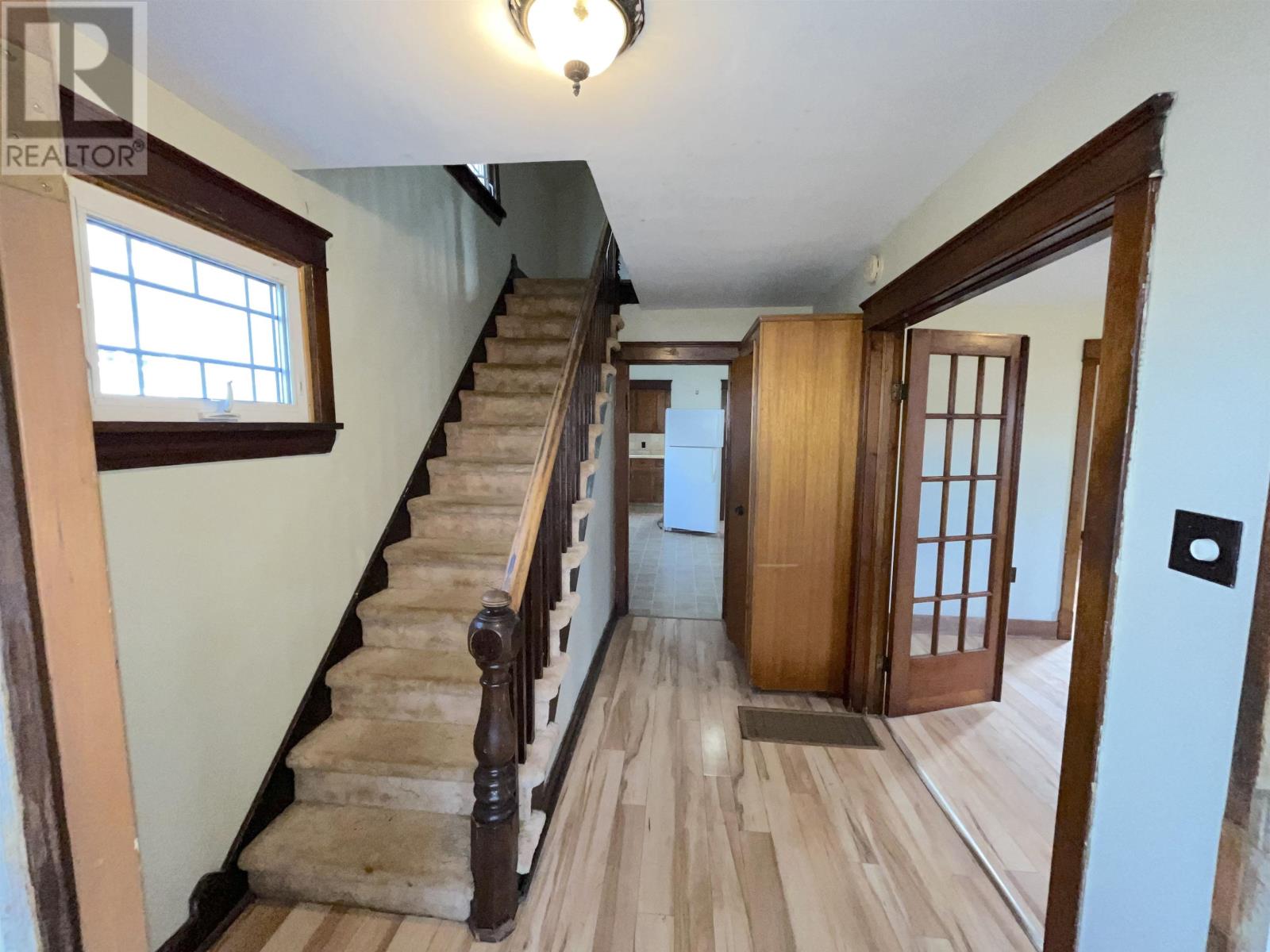 This charming downtown home offers a blend of classic features and modern conveniences. The main floor features a convenient laundry room, kitchen with a scullery, dining room with a built in china cabinet and a living room with french doors. Upstairs, you'll find three bedrooms and one bathroom. The generous sized fenced backyard provides ample space for outdoor activities with a 14x10 deck and a shed. Parking for up to three vehicles. Convenient sunporch on the front of the home. Located just a short walk to the center of town. This property is close to schools, shopping mall, Desbrisay Crescent Park and the bus route. Some updates include newer windows, roof shingles recently fully serviced furnace and a heat pump. Please note that all measurements are approximate and should be verified by the purchaser, if deemed necessary. This property is being sold 'as is where is.' Don't miss the opportunity to make this great little home yours! (id:22211)