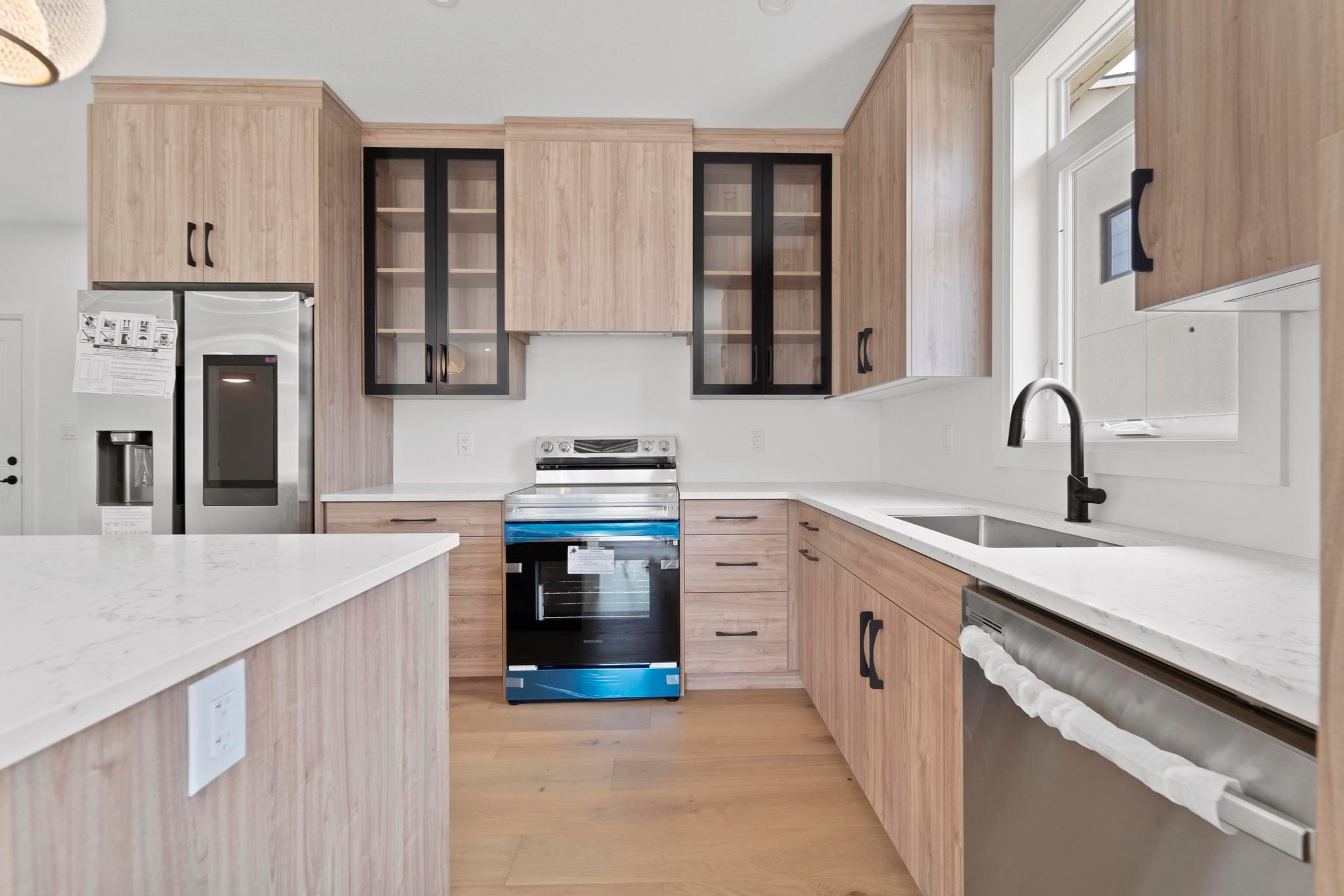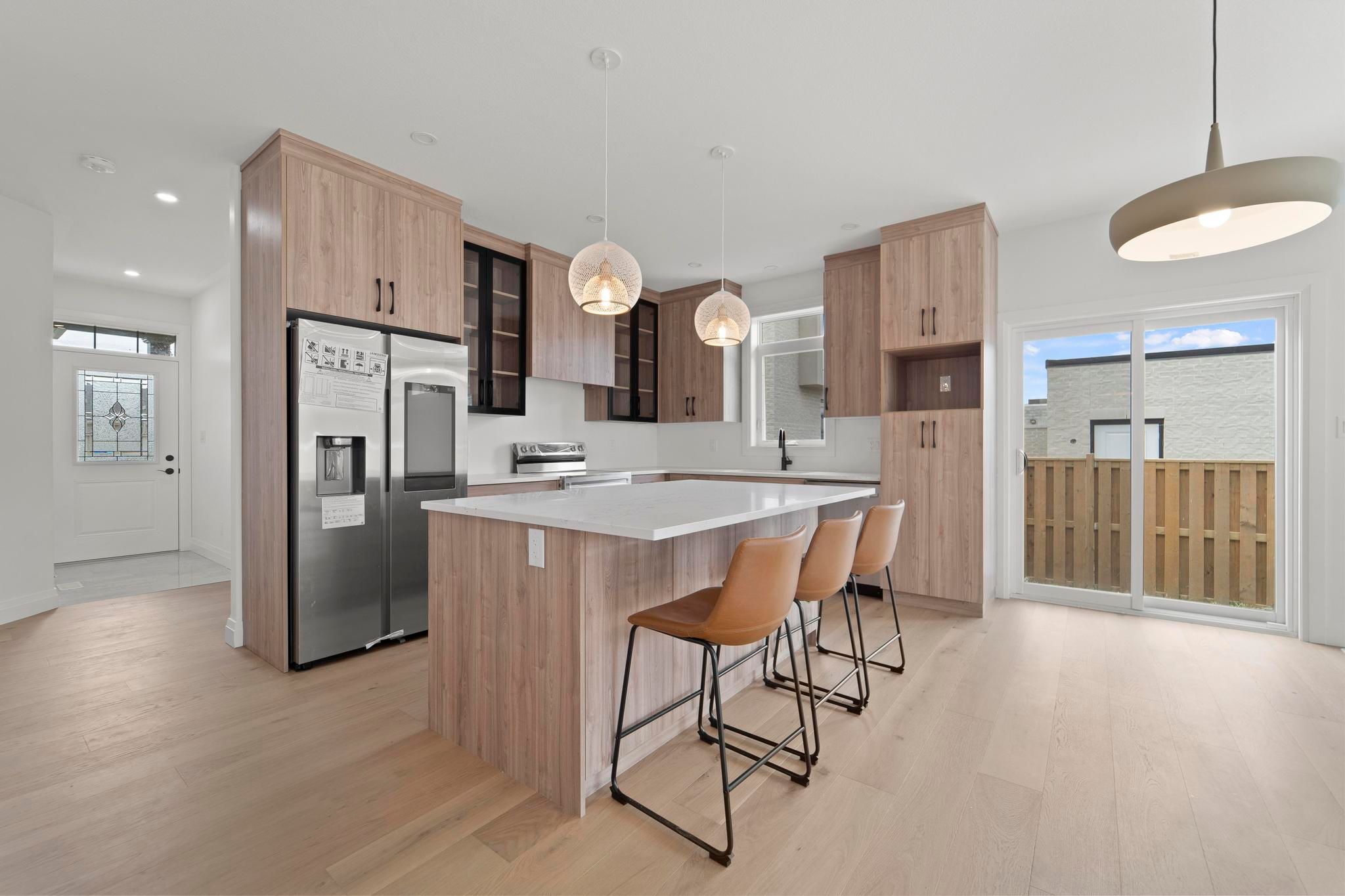 Welcome to one of the largest + brightest sun soaked end-unit townhouses in the neighbourhood! This beautiful 2-bed 2-bath was professionally designed from top to bottom. All finishes were carefully handpicked to exude the lux Scandinavian lifestyle. This property features a beautifully designed Bern Marron woodgrain textured kitchen cabinets with black framed cabinets, finished with a quartz countertop and an island. This property also features extra high ceilings, an abundance of large windows, 2 sets of large patio doors in the living space and an open floor plan great for entertaining. The master bedroom is equipped with an ensuite and a walk-in closet. Included in the rent is snow removal and lawn mowing. Property shows even better in person - come make it your home today!Tenant is responsible for Hydro, Gas and Water.
