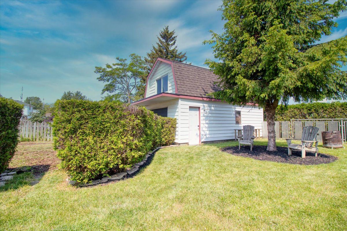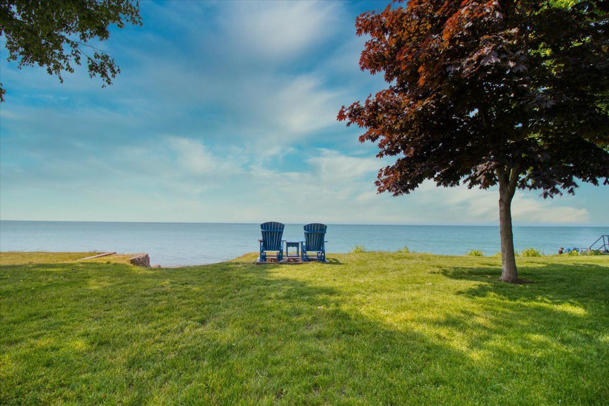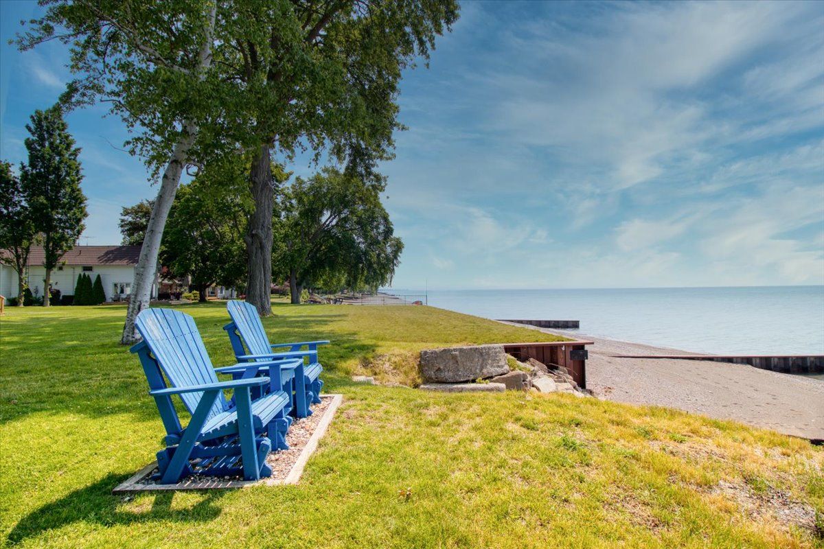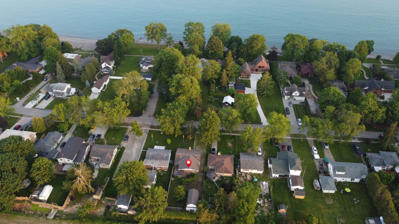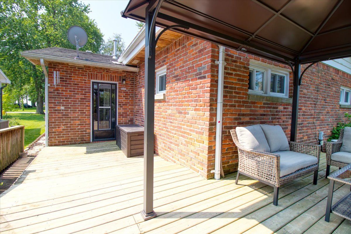 Welcome to the beautiful shores of Lake Erie! This 3 bedroom solid brick bungalow with stunning open concept living features an entertaining area with a wood stove and a rustic log and brick bar, leading into a dining and living room combo with stunning water views that is perfect for entertaining. Recently updated kitchen, 4 piece bathroom and 3 good sized bedrooms at opposite corners of the house making this a perfect family home or lake cottage with beach/lake access only steps away. This means Lake Erie, sand, surf and relaxation area always at your fingertips. There is a detached garage approx 25' x 10' and a fully fenced newly landscaped backyard with a new deck and the gazebo. Experience the enchanting rustic charm and delightful simplicity of this cozy lakefront home!All S/S appliances (Fridge, Stove, Dishwasher, Washer & Dryer), the security system with motion detectors, gazebo and all ELF.