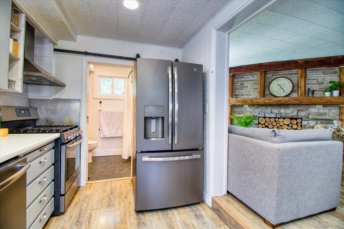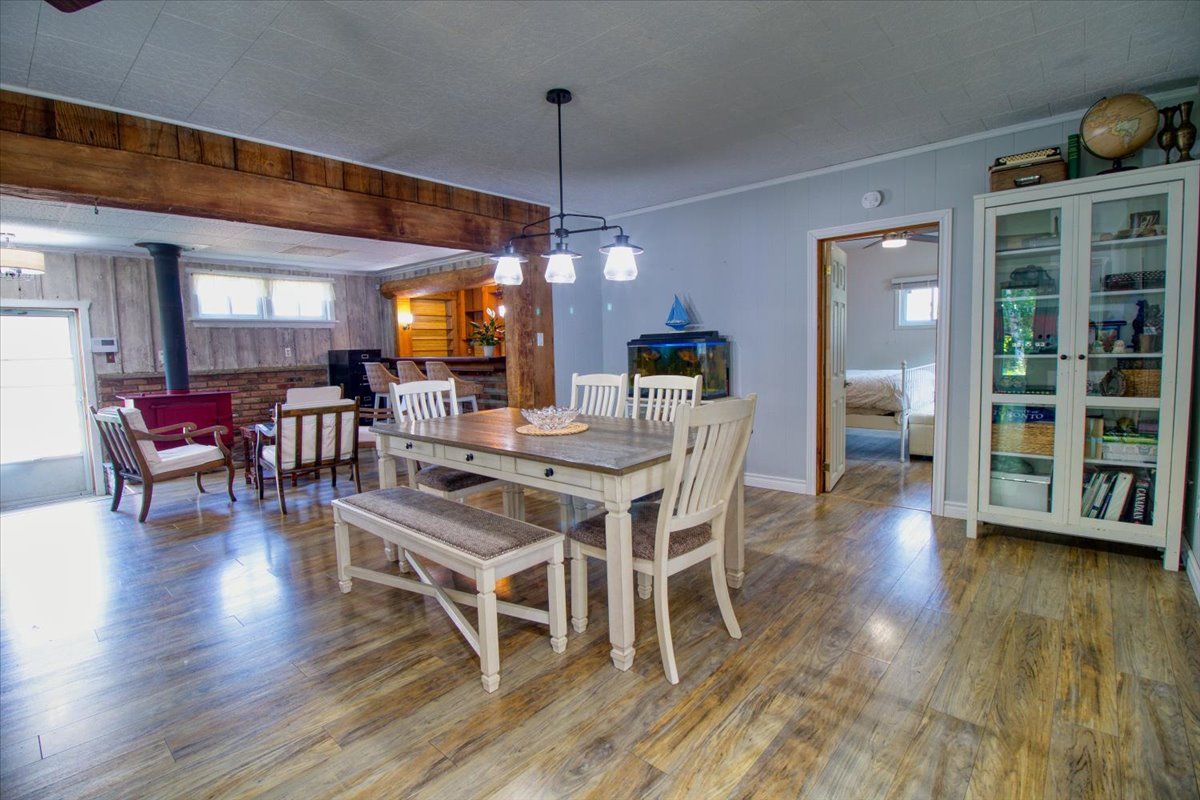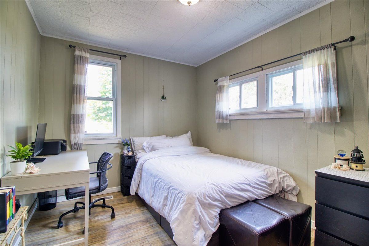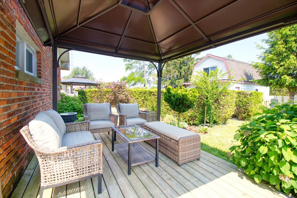 Welcome to the beautiful shores of Lake Erie! This 3 bedroom solid brick bungalow with stunning open concept living features an entertaining area with a wood stove and a rustic log and brick bar, leading into a dining and living room combo with stunning water views that is perfect for entertaining. Recently updated kitchen, 4 piece bathroom and 3 good sized bedrooms at opposite corners of the house making this a perfect family home or lake cottage with beach/lake access only steps away. This means Lake Erie, sand, surf and relaxation area always at your fingertips. There is a detached garage approx 25' x 10' and a fully fenced newly landscaped backyard with a new deck and the gazebo. Experience the enchanting rustic charm and delightful simplicity of this cozy lakefront home!All S/S appliances (Fridge, Stove, Dishwasher, Washer & Dryer), the security system with motion detectors, gazebo and all ELF.