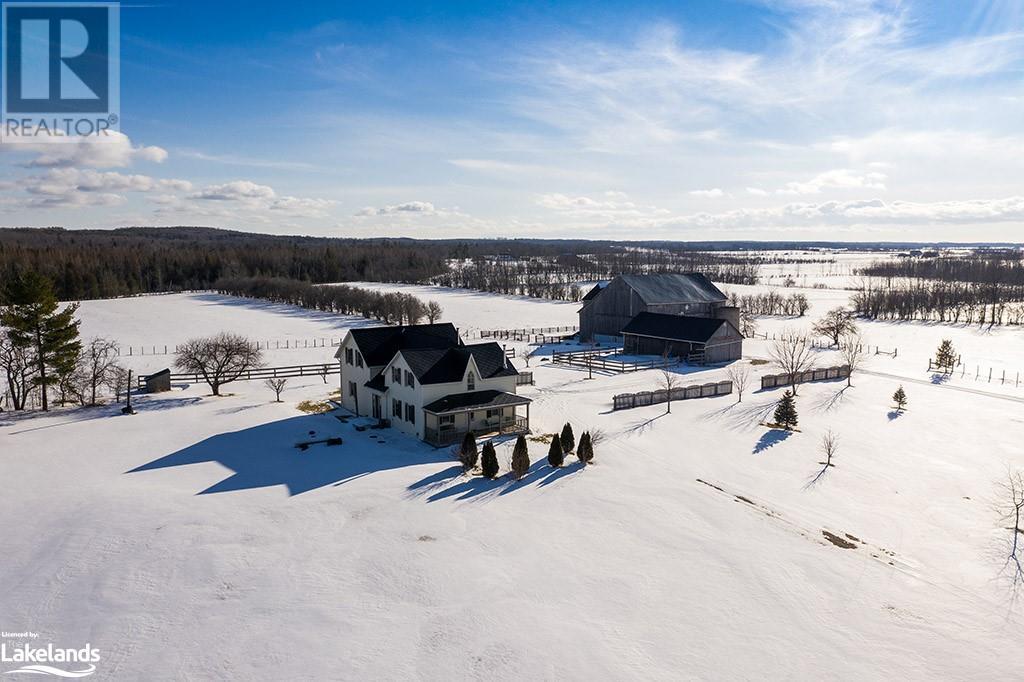 Exceptional 137 Acre Farm Property with a beautifully renovated century five bedroom home. This picturesque property has been pesticide/chemical free for over 20 years and has 55 acres of productive pasture/hayfields with enclosed perimeter fencing with numerous livestock gates, an additional 20 acres of unfenced pasture hayfields and 60 acres woodland with cedar, pine and hardwood with a year round flowing brook and pond and some harvestable timber. The property boasts a large renovated two level century bank barn with granary and high lower level clearance suitable for large livestock with electricity and water as well as a large renovated drive shed for machinery/workshop with electricity including a walk in fridge. The well appointed home was fully renovated with an addition in 2006 and features wood flooring throughout, two wood stoves, main floor master bedroom and an impressive great room with cathedral ceilings and expansive windows designed to enjoy the stunning countryside views. (id:22211)