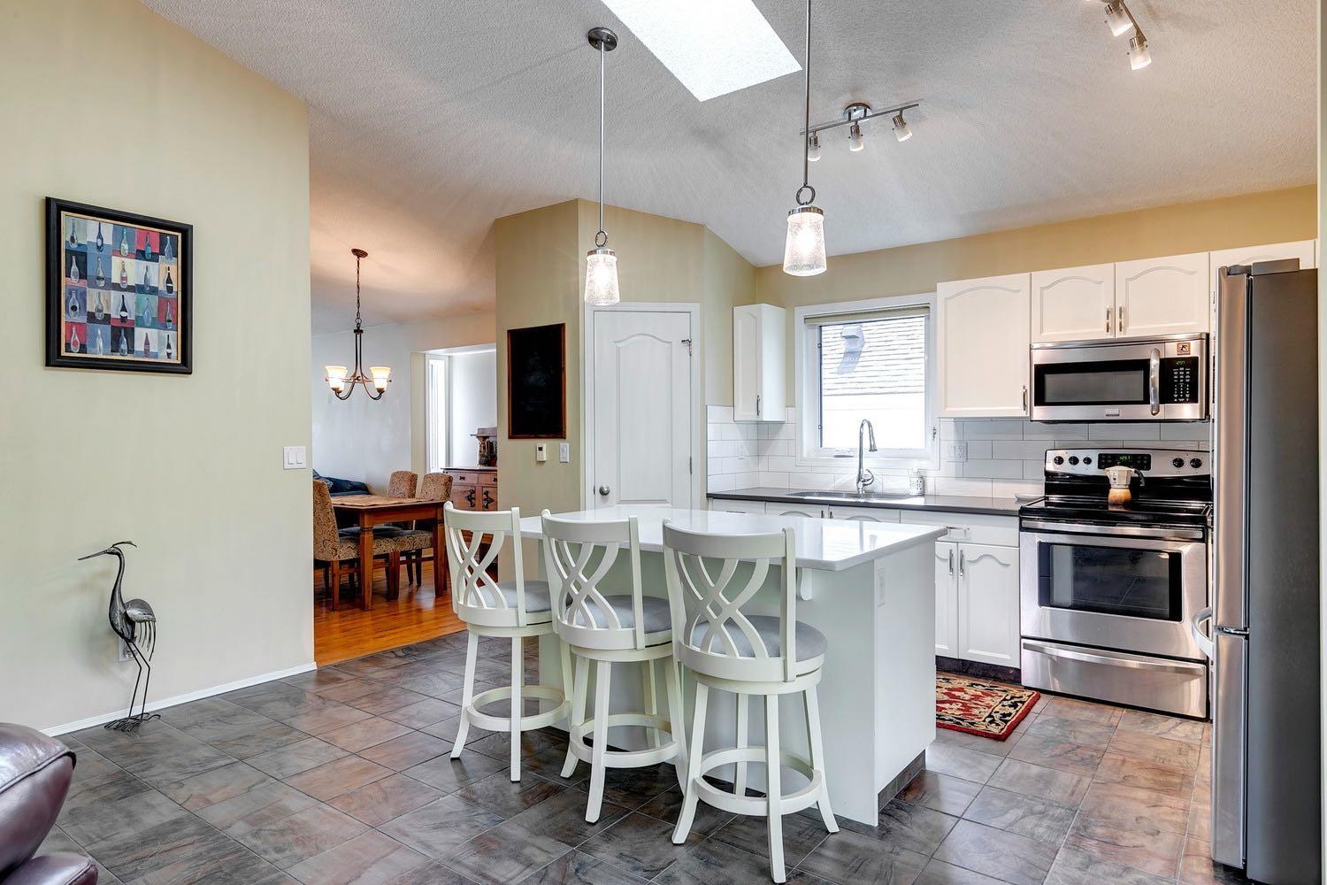 Want something a little different that shows real pride of ownership and spacious turnkey living? This custom bilevel is one of a kind. Main floor has newer triple pane windows, sky light and a very functional plan. The primary bedroom is away from the day to day living area which affords comfort and privacy with it's heated floor ensuite bath and walk in closet. The family room has a fire place, living and a dining room off the island kitchen with heated floors and patio doors to a large 2 tiered deck that has a remote controlled retractable awing. The lower level has a large games room, 2 bedrooms, full bath, furnace room with a new 2023 furnace, laundry room and storage area. The entire house is air conditioned!! The rear yard is like an oasis with trees, pond, fire pit, several raised garden beds. Just a great place to relax in privacy. Low maintenance exterior with leaf filter rain gutters on the treed side of the house. This home must be seen !!