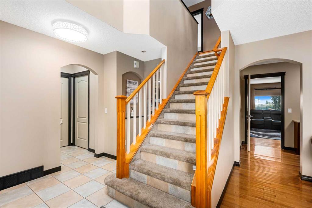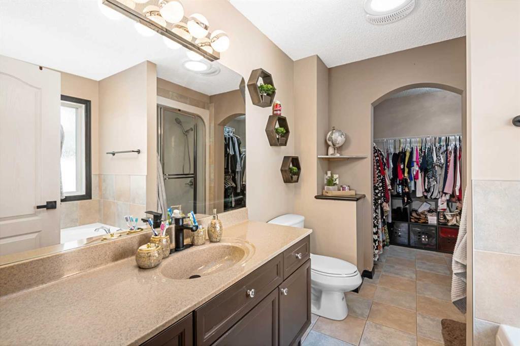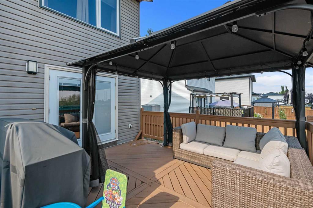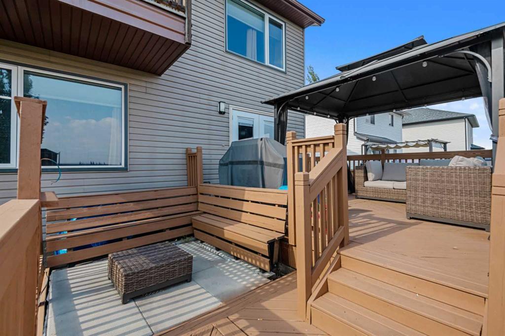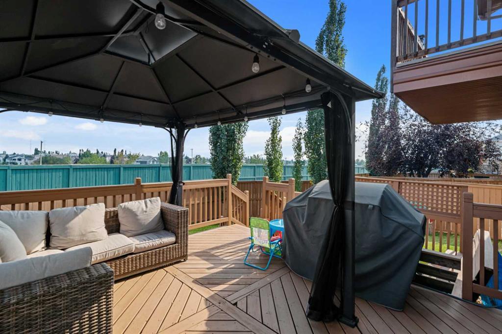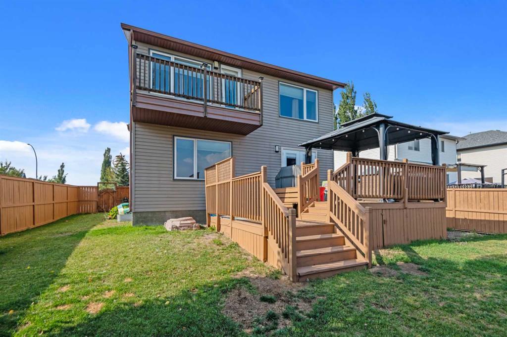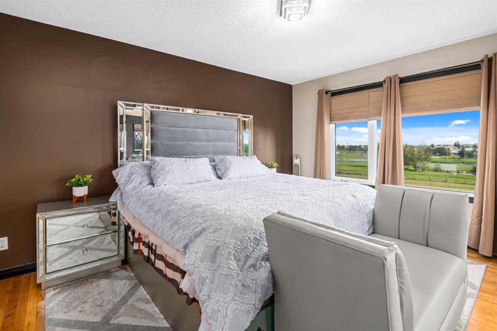 Live, work and play in Chestermere! Enjoy no neighbours behind you and take in the views of the Lakeside Green Golf Course! Entering this home you are welcomed with a formal living area that flows nicely to the open kitchen and family room. The gorgeous chefs kitchen is complete with custom cabinets (soft close), tons of storage, granite countertops, under cabinet lighting, built in oven and microwave and cooktop. Work from home? The main floor office/den is a fantastic work space with a built in desk and cabinets. The main level has beautiful hardwood flooring and tile. The upper level features your laundry area, 3 bedrooms and 2 baths. The massive primary truly is a retreat with a sitting area and a private deck to enjoy quiet mornings. Relax in your spa-like en-suite with steam shower, jetted tub & large walk-in closet. In addition, there are 2 generous sized bedrooms and a 4 piece main bathroom with jacuzzi tub. Do you like to entertain outdoors? The large backyard and custom, 2 tiered deck is the perfect space to entertain, enjoy family bbq's and more. RV parking along with a three car , heated tandem garage with a huge amount of space for all your toys, cars and more! This is an incredible family home close to all amenities, great schools, parks, golf courses, shopping and Chestermere Lake! (id:22211)
