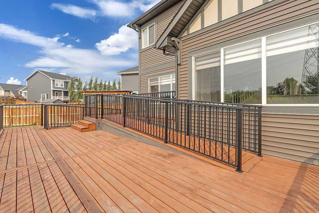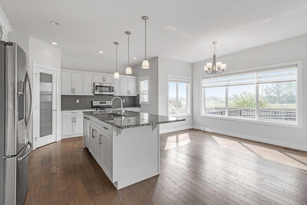 Located in the family orientated community of Westmere on a quiet street, this home is a GEM for those seeking ACCESSIBLE LIVING. With an ELEVATOR and platform lift system in garage and wide doors, it ensures easy mobility throughout the house, making it suitable for everyone. Offering a total of 3230 sq feet, with 6 bedrooms and 3.5 bathrooms. The open concept design brings a sense of spaciousness to the home, allowing for seamless flow and interaction between the living, dining, and kitchen areas. Perfect for entertaining guests or spending quality time with family. Step into luxury! The kitchen boasts elegant granite countertops, distressed white cabinetry, stainless steel appliances, and a large island with sink. A perfect blend of style and functionality. The grey stained oak hardwood floors add warmth and charm, creating a welcoming ambiance. Upstairs, you'll find four well appointed bedrooms, providing ample space for the whole family. The primary bedroom, equipped with an ACCESSIBLE bathroom and ceiling lift that delivers comfort and convenience. The fully finished basement is an excellent bonus, supplying additional living space. With two additional bedrooms and rec room area it provides flexibility for guests, extended family, or can be utilized as a home gym or media room. Step outside and be amazed by the expansive pie lot, west facing backing onto a park area that offers an abundance of outdoor space to enjoy. The massive deck provides a perfect spot for relaxation and entertaining, while the ramp system ensures easy access for everyone. Other features of this home include tile and hardwood throughout the main and upper floors, luxury vinyl plank in lower level, A/C, irrigation system, exposed aggregate driveway and pathways, drywalled and insulated garage. Close to schools, shopping and all amenities plus the bonus of Chestermere Lake. This property truly presents a combination of accessibility, style, and functionality. Don't miss out on the opportuni ty to make this remarkable house your new home. (id:22211)