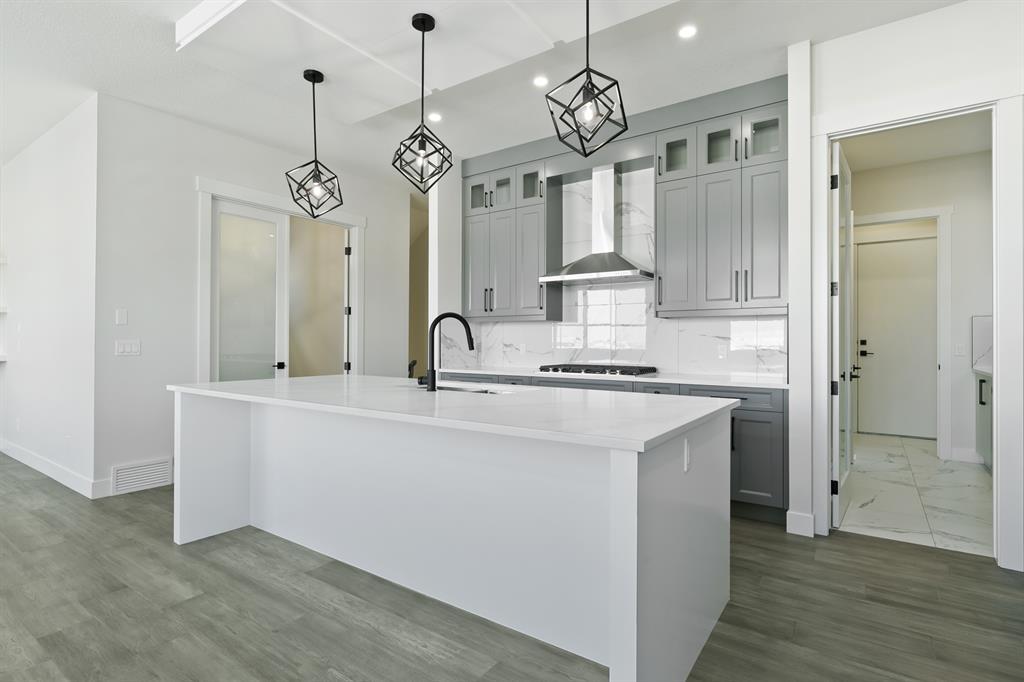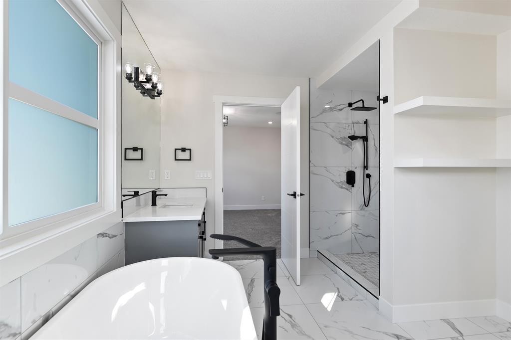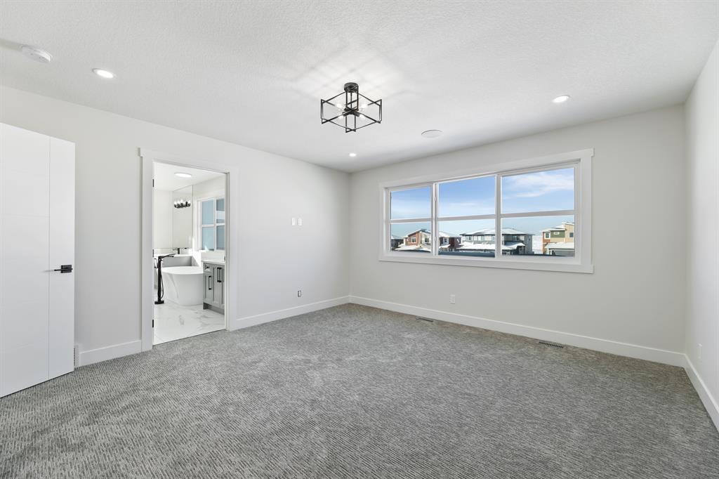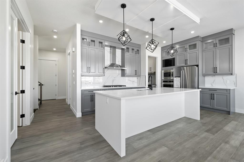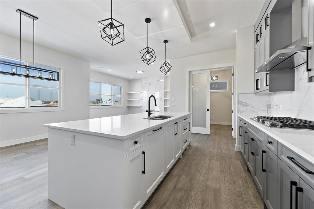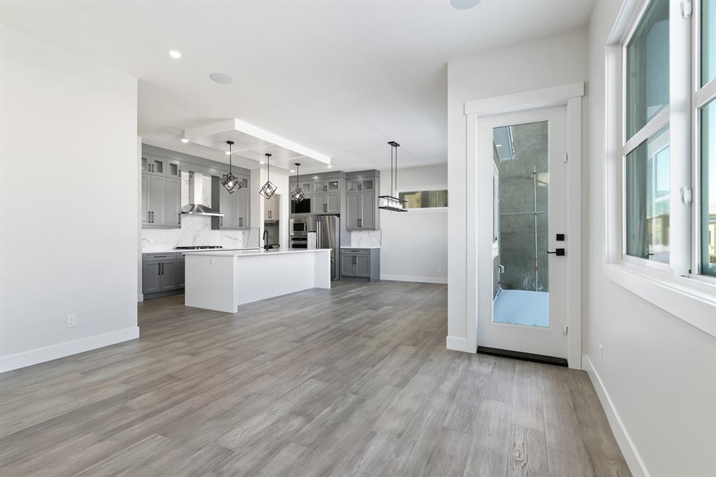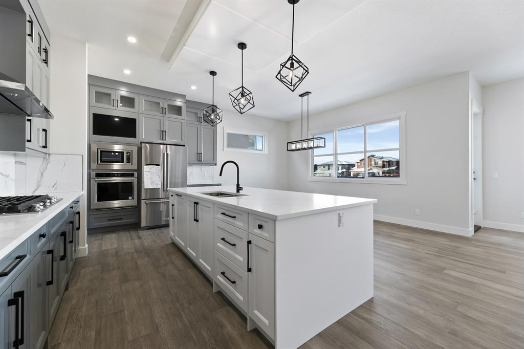 ***Please visit 43 Waterford Heights (ShowHome) for all OPEN HOUSES***INCREDIBLE VALUE to be had in this beautiful estate home in Waterford, Chestermere! Devine Custom Homes prides themselves on showcasing superior build quality, upgrades, safety, and putting out a finished product that we are proud to present. This home has upgrades that will appeal to even the most discerning buyer. Featuring over 2600 square feet of developed living space on the top two levels, TRIPLE ATTACHED GARAGE...AND a walk-out basement (unfinished) BACKING ONTO GREEN-SPACE; this home is perfect for large families. Upon entry you are greeted by a beautiful open to above feature and a meticulously designed floor plan. The main floor features stunning upgrades throughout such as engineered hardwood, ceiling height cabinetry, executive fire place feature, 8 ft doors and a massive spice kitchen that is almost 1.5X bigger than similar builders. The spice kitchen features beautiful upper cabinetry, electric cooktop and is completed with a sink and dishwasher. The floor plan itself is perfectly laid out with a flowing kitchen to dining and great room, FULL BATHROOM on the main floor and den/flex room which serves perfectly for an at home office, additional bedroom or prayer room. Venture upstairs where you are greeted by a thoughtfully laid out 4 bedroom + bonus room floor plan. What makes our product stand out is a DOUBLE MASTER SETUP with 2 full en-suites and a large bonus room where the kids can relax or you can host and entertain. All bedroom closets feature custom MDF shelving Vs the inexpensive wire shelving that you normally see on the market today. Just when you thought it couldn't get better you make your way to the basement... (Note that the basement is unfinished; this description is what our finished basement package contains). Our mechanical room is thoughtfully tucked away to maximize the space of the lower level. Two additional bedrooms, big bright windows cascading with natural lig ht from your walk-out basement, full wet bar and additional bathroom complete this lower level. This floor plan features 9 ft ceilings on the main, upper and lower level; another thing that makes Devine Custom Homes truly unique. If you're looking for a quality product and a safe place for your family to call home; then look no further. Please contact to book your private tour today. (id:22211)