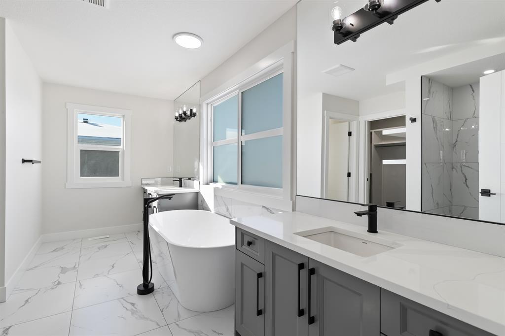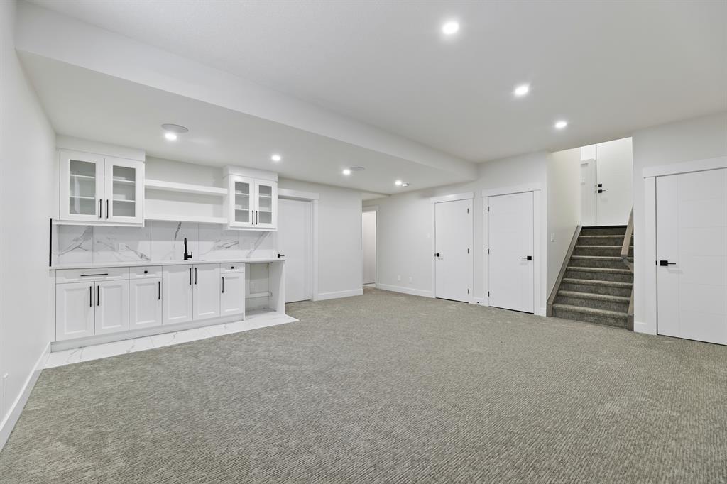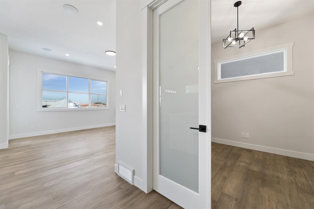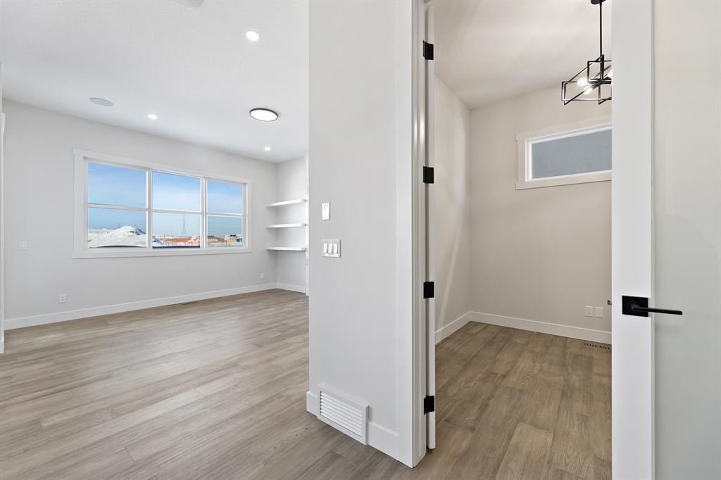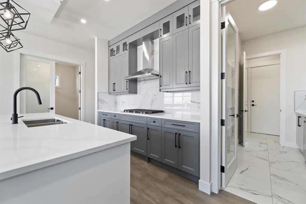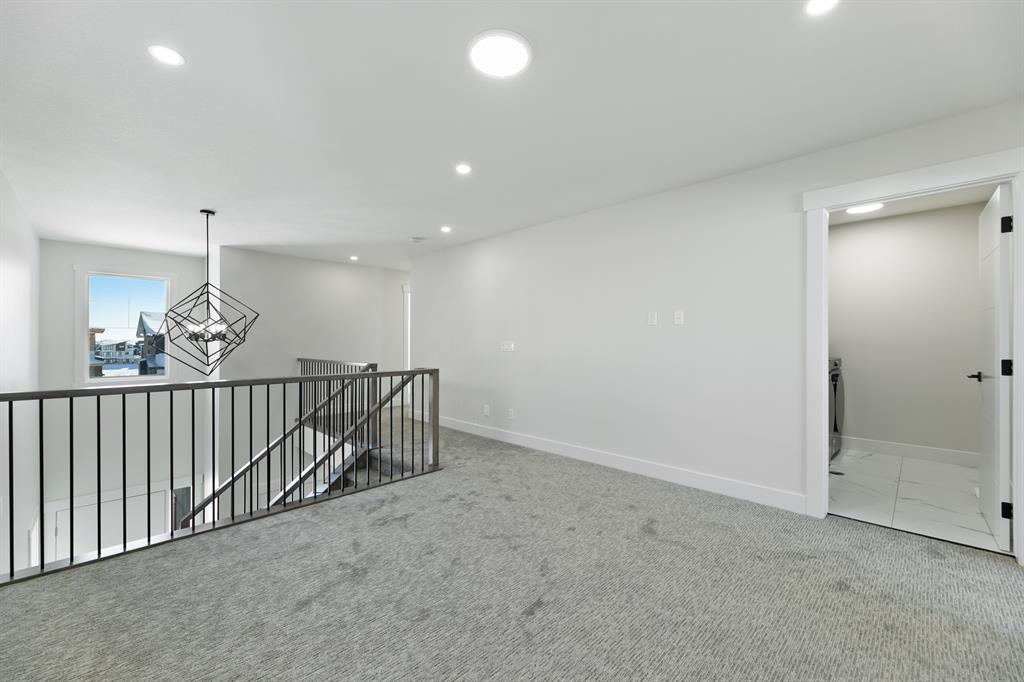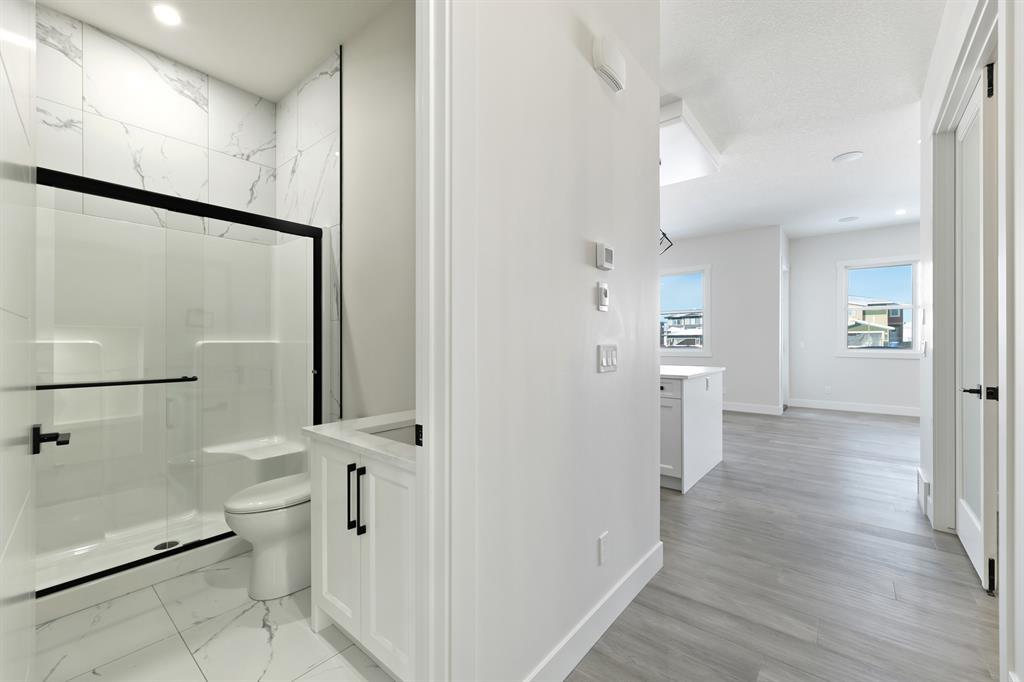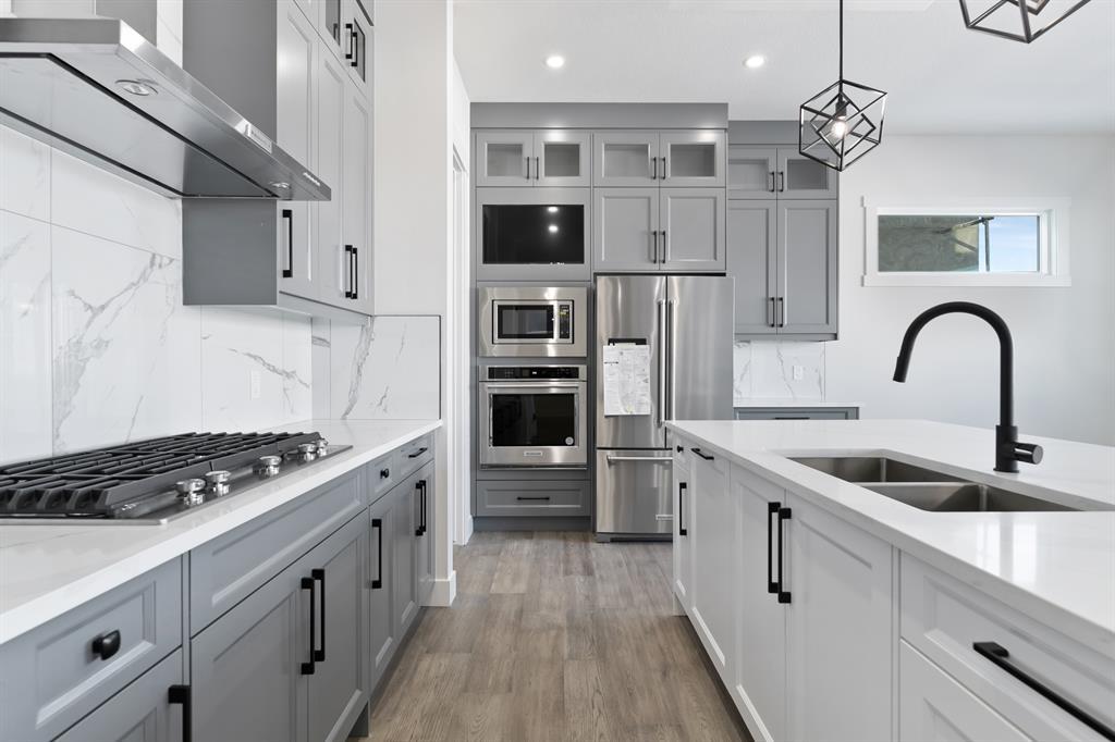 ***Please visit 43 Waterford Heights (ShowHome) for all OPEN HOUSES***INCREDIBLE VALUE to be had in this beautiful estate home in Waterford, Chestermere! Devine Custom Homes prides themselves on showcasing superior build quality, upgrades, safety, and putting out a finished product that we are proud to present. This home has upgrades that will appeal to even the most discerning buyer. Featuring over 2600 square feet of developed living space on the top two levels, TRIPLE ATTACHED GARAGE...AND a walk-out basement (unfinished) BACKING ONTO GREEN-SPACE; this home is perfect for large families. Upon entry you are greeted by a beautiful open to above feature and a meticulously designed floor plan. The main floor features stunning upgrades throughout such as engineered hardwood, ceiling height cabinetry, executive fire place feature, 8 ft doors and a massive spice kitchen that is almost 1.5X bigger than similar builders. The spice kitchen features beautiful upper cabinetry, electric cooktop and is completed with a sink and dishwasher. The floor plan itself is perfectly laid out with a flowing kitchen to dining and great room, FULL BATHROOM on the main floor and den/flex room which serves perfectly for an at home office, additional bedroom or prayer room. Venture upstairs where you are greeted by a thoughtfully laid out 4 bedroom + bonus room floor plan. What makes our product stand out is a DOUBLE MASTER SETUP with 2 full en-suites and a large bonus room where the kids can relax or you can host and entertain. All bedroom closets feature custom MDF shelving Vs the inexpensive wire shelving that you normally see on the market today. Just when you thought it couldn't get better you make your way to the basement... (Note that the basement is unfinished; this description is what our finished basement package contains). Our mechanical room is thoughtfully tucked away to maximize the space of the lower level. Two additional bedrooms, big bright windows cascading with natural lig ht from your walk-out basement, full wet bar and additional bathroom complete this lower level. This floor plan features 9 ft ceilings on the main, upper and lower level; another thing that makes Devine Custom Homes truly unique. If you're looking for a quality product and a safe place for your family to call home; then look no further. Please contact to book your private tour today. (id:22211)
