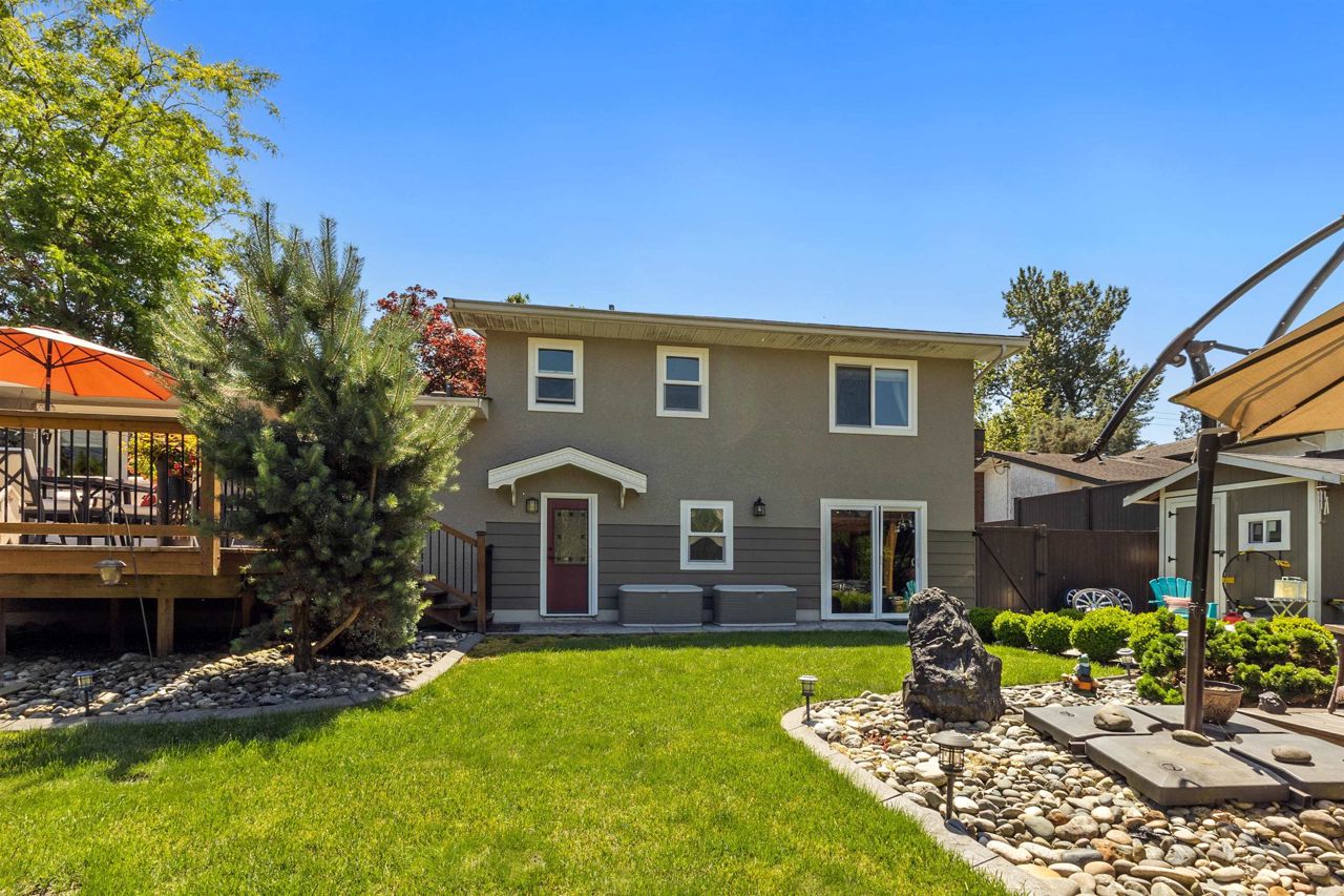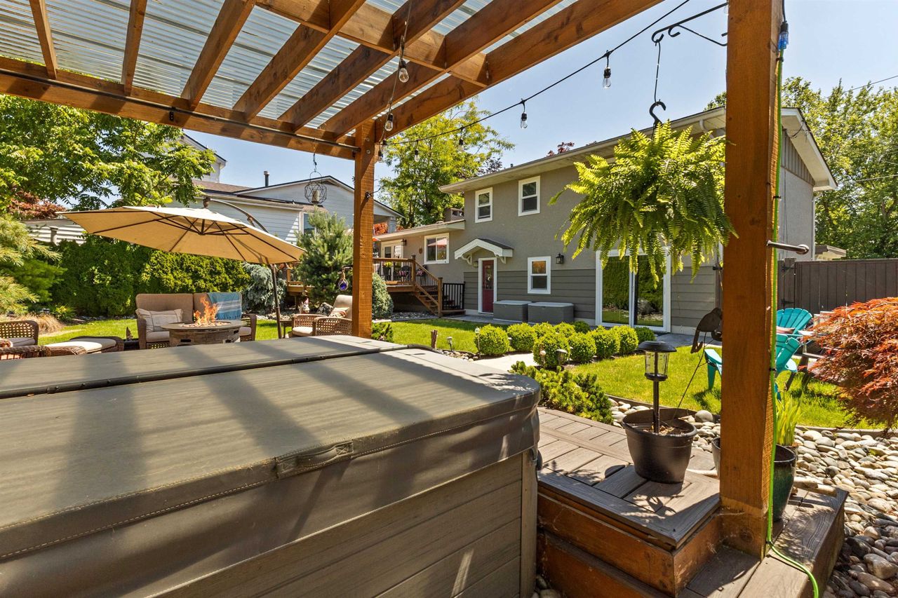 FULLY RENOVATED executive home with a great floorplan with easy access to amazing outdoor living spaces. Exclusive location along Hope River with 80 ft frontage and views, professionally landscaped 8,712 sf property. Formal level entry, living room with fireplace, south facing windows with motorized blinds, kitchen with quality wood shaker cabinets, quartz countertops, inlay sink and island open to dining room with french doors to a large 11’7 x 16’8 sundeck. Top to bottom this home shines! 3 good sized bedrms up and a gorgeous 5 pce main bath. Lower level with full bathrm, laundry and family room with doors to a pathway to the hot tub and gazebo. Large stamped concrete driveway and RV parking. That elusive renovated home on property you just have to own. View today.