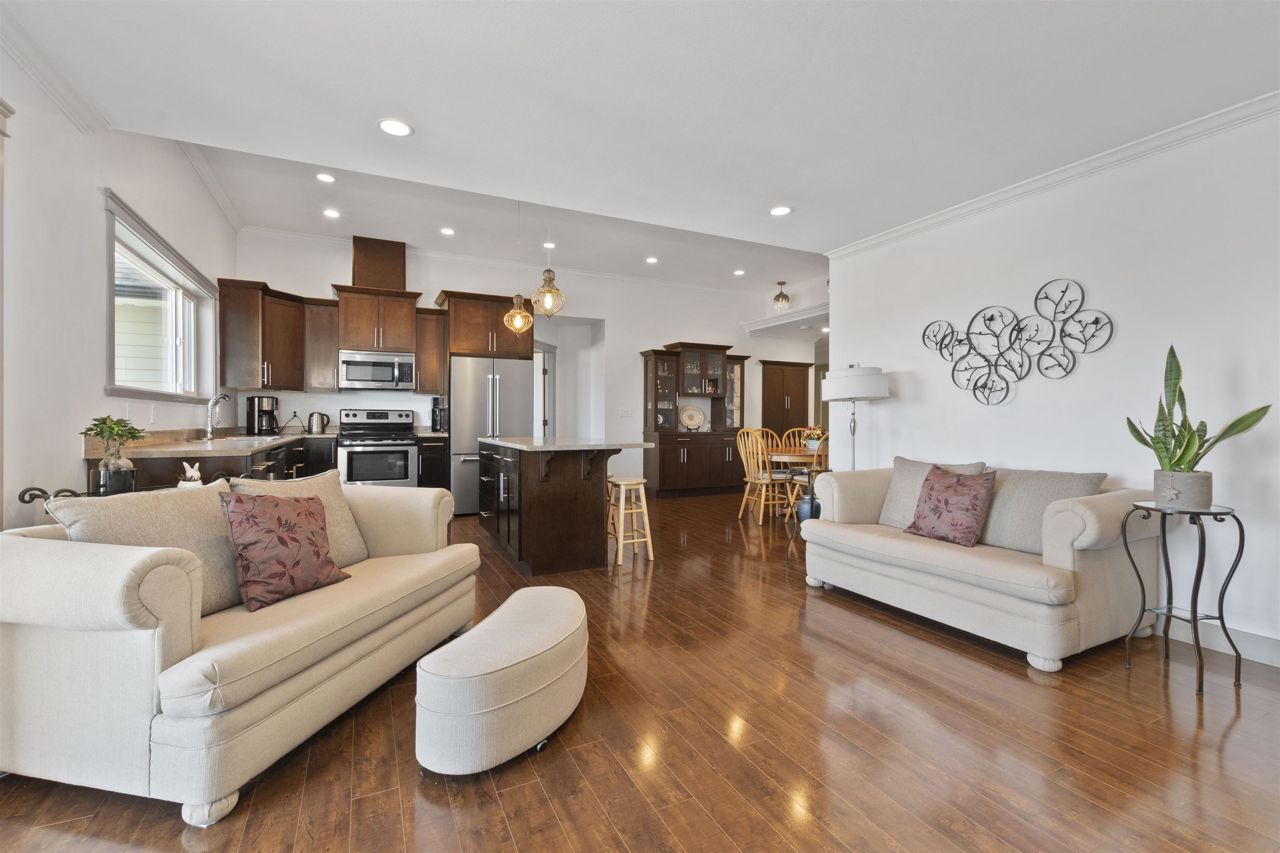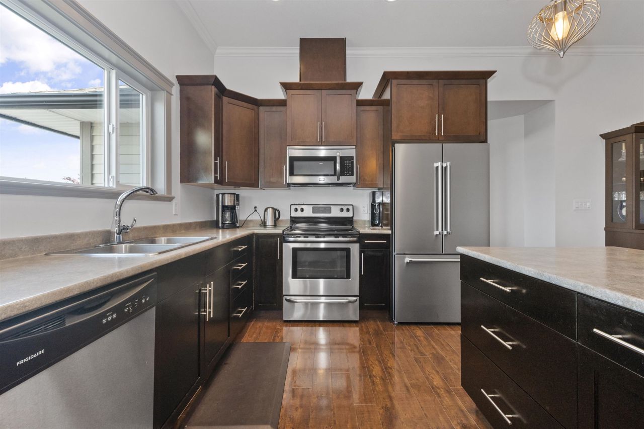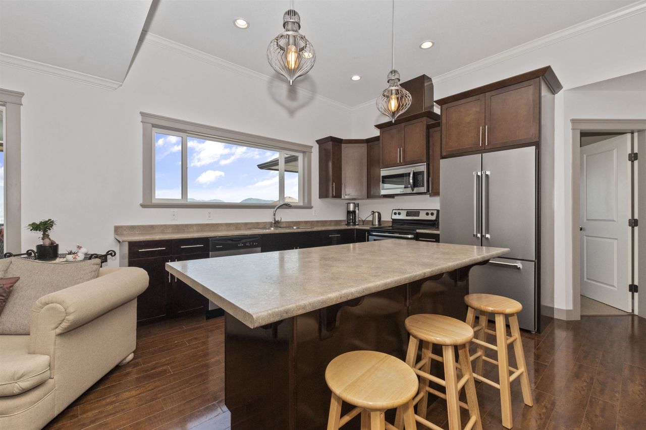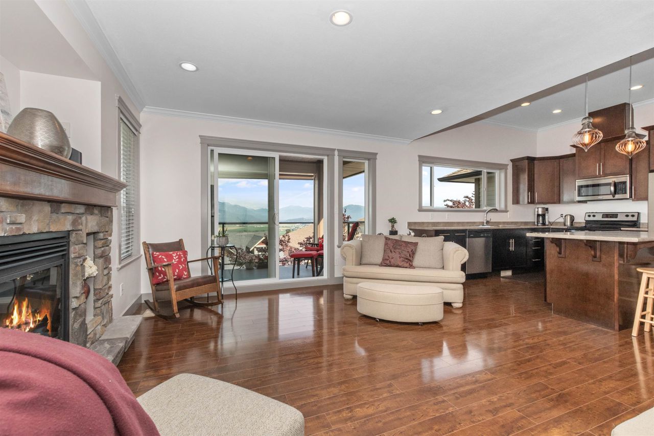 OH WHAT A VIEW! Endless mountain & valley views from this 4196sq ft home. It features 3 bed, Office( which could be a 4th bedroom) and 3.5 baths on 2 floors with a dbl garage. But wait there is a bonus! The 2 bedroom suite (unauthorized)with separate entrance & its own single garage & driveway, separate meter . The main floor is open and spacious with the master suite & bedroom/office, beautiful stone fireplace & large deck so you can take in the views. The next level has a huge family room, with stone gas fireplace, 2 bedrooms, 2 full baths(1 is an ensuite) and a very large finished area waiting for your ideas, maybe ANOTHER SUITE, a theatre room, man/lady cave, craft room or a gym. Here is your new home where you can enjoy the sunsets all year long!