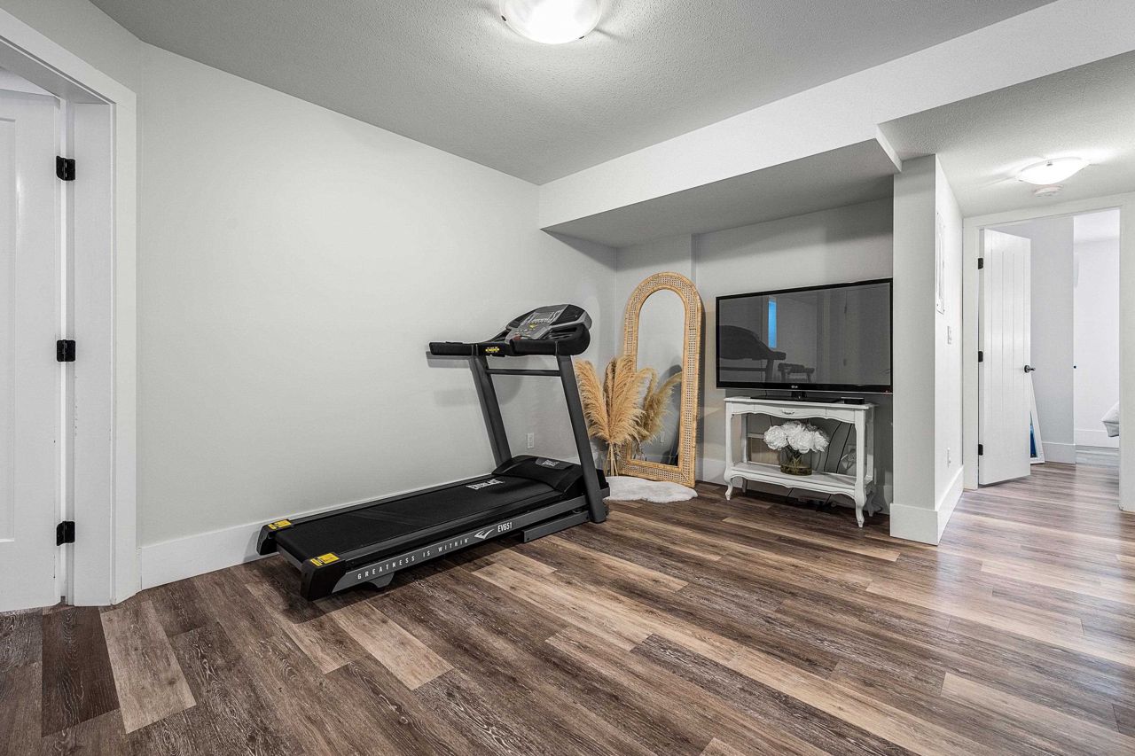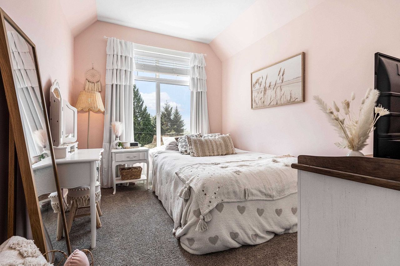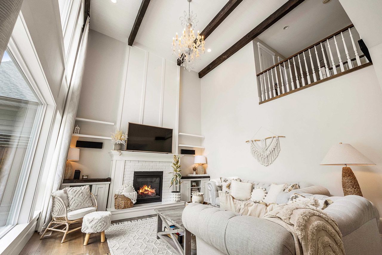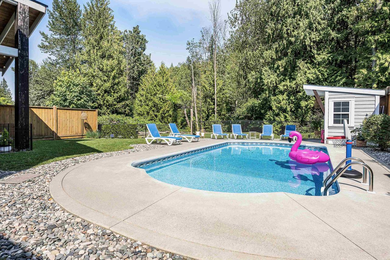 STUNNING CUSTOM home featuring IN GROUND POOL W/BREATHTAKING VIEWS! The impressive Great Room showcases high ceilings w/wood beams, gas fireplace & large windows. The beautiful white kitchen boasts a large island, new S/S appliances & quartz countertops. Also includes spacious Dining Room, playroom/office & mudroom w/built ins. Upstairs the large Primary bdrm offers 2 closets & an elegant 5 piece ensuite w/soaker tub, dble sinks & large W/I shower. Additionally there are 3 more generous sized bdrms & laundry w/new washer/dryer. The basement provides a 1 or 2 bdrm suite, gym area & rec room. Outside the lovely outdoor living space is complete w/covered patio area, in ground pool, pool house w/bthrm, gas & hot tub hookup, fully fenced w/extra green space & backing onto a creek for privacy!