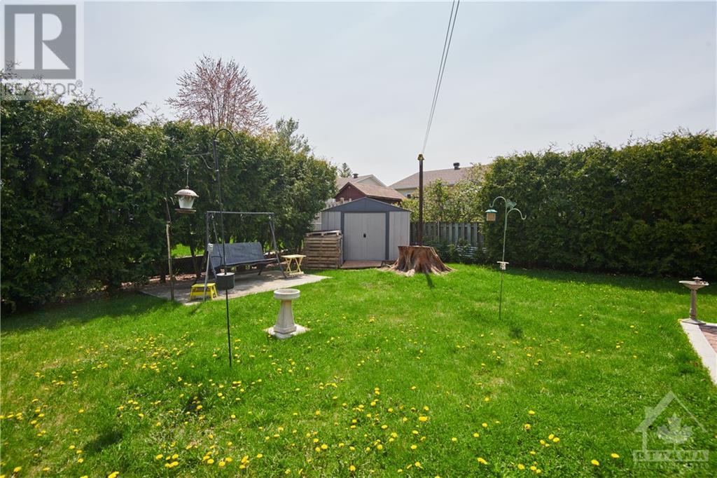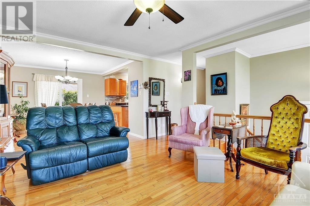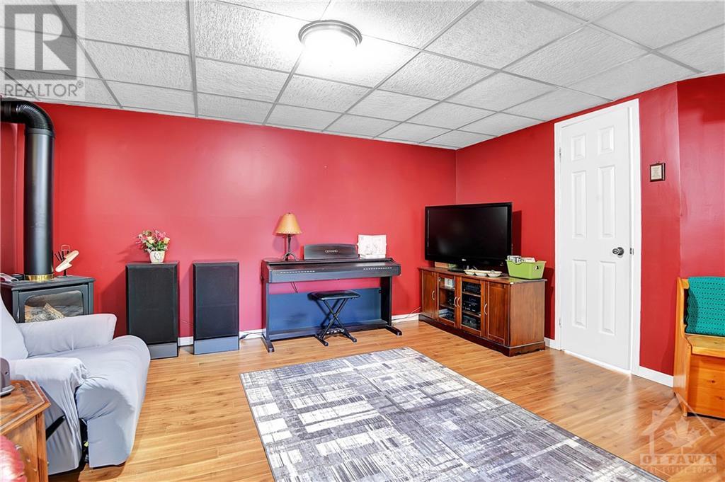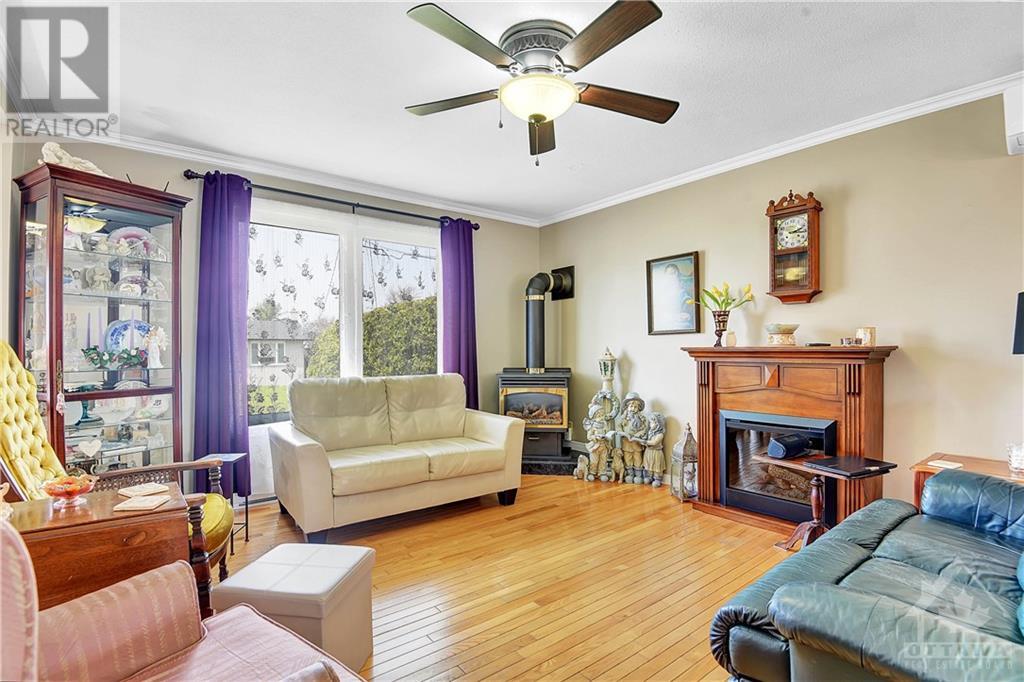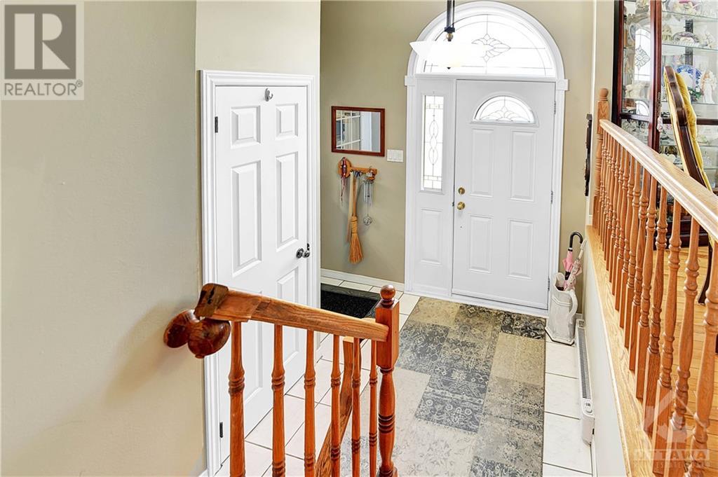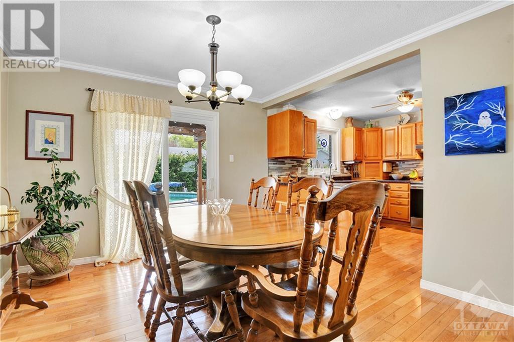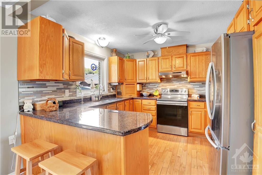 Five minutes from Rockland golf Club, 3+1 Bedroom Side Split w/oversized double car garage. Ample parking on a private lot w/well-maintained front & back yard surrounded by mature trees. View of Gatineau Hills too. The nicely sized foyer, has garage access, & you'll notice hardwood & ceramic flooring on main and 2nd level. The large living room flows into the dining room, and in turn into an abundant kitchen w/ a new layout that provides double the number of cabinets as the original. Stainless steel appliances 2020. Patio door off the dining room leads out to your expansive yard w/above-ground pool, a two-tiered oversized deck & covered deck & 2 patios! Upstairs are 3 good sized bedrooms & laundry room. Primary Bedroom has ensuite privileges to the oversized main bathroom renovated 2020. Downstairs you will find a fully finished basement that includes a spacious Rec room w/floating floor & natural gas standing furnace, a fourth bedroom & second bath. Heat Pump & Central Vac 2022. (id:22211)