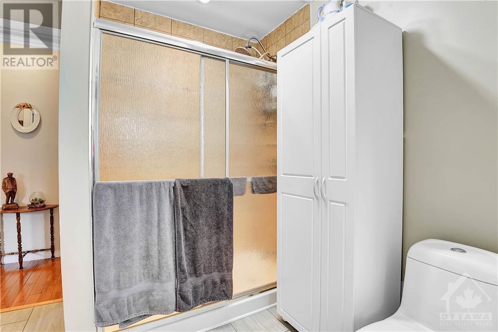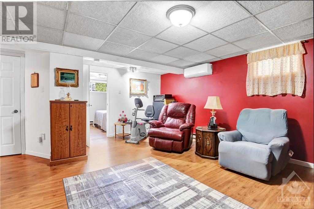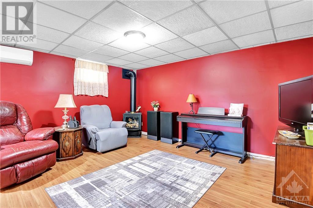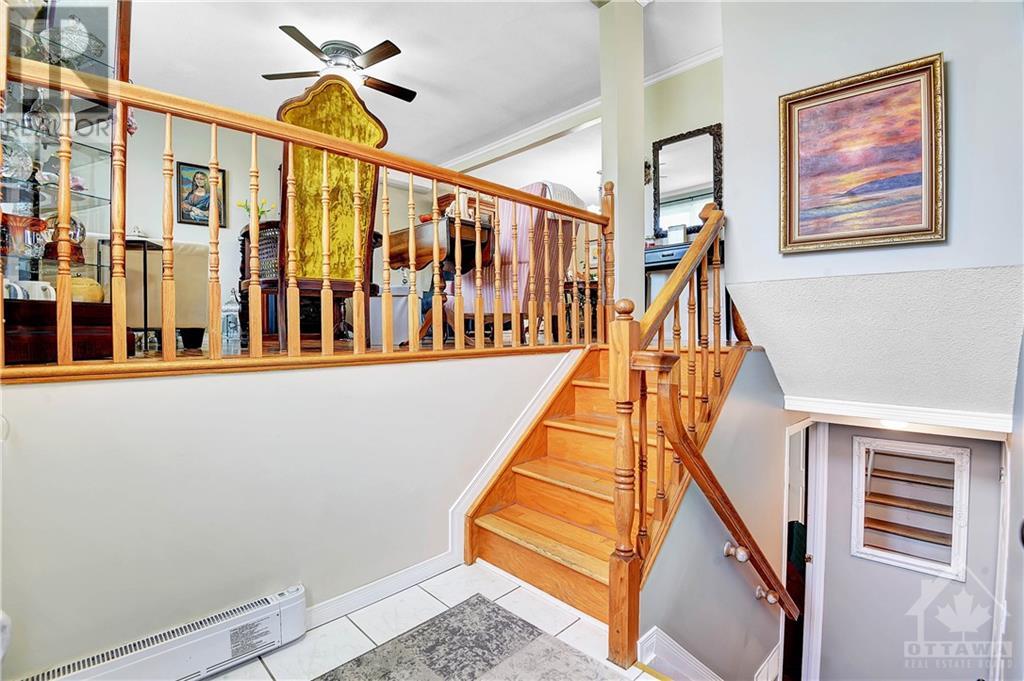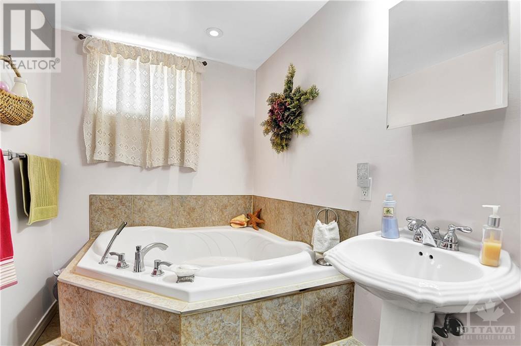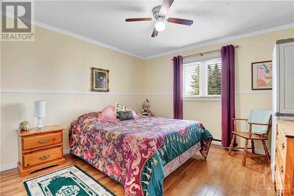 Five minutes from Rockland golf Club, 3+1 Bedroom Side Split w/oversized double car garage. Ample parking on a private lot w/well-maintained front & back yard surrounded by mature trees. View of Gatineau Hills too. The nicely sized foyer, has garage access, & you'll notice hardwood & ceramic flooring on main and 2nd level. The large living room flows into the dining room, and in turn into an abundant kitchen w/ a new layout that provides double the number of cabinets as the original. Stainless steel appliances 2020. Patio door off the dining room leads out to your expansive yard w/above-ground pool, a two-tiered oversized deck & covered deck & 2 patios! Upstairs are 3 good sized bedrooms & laundry room. Primary Bedroom has ensuite privileges to the oversized main bathroom renovated 2020. Downstairs you will find a fully finished basement that includes a spacious Rec room w/floating floor & natural gas standing furnace, a fourth bedroom & second bath. Heat Pump & Central Vac 2022. (id:22211)