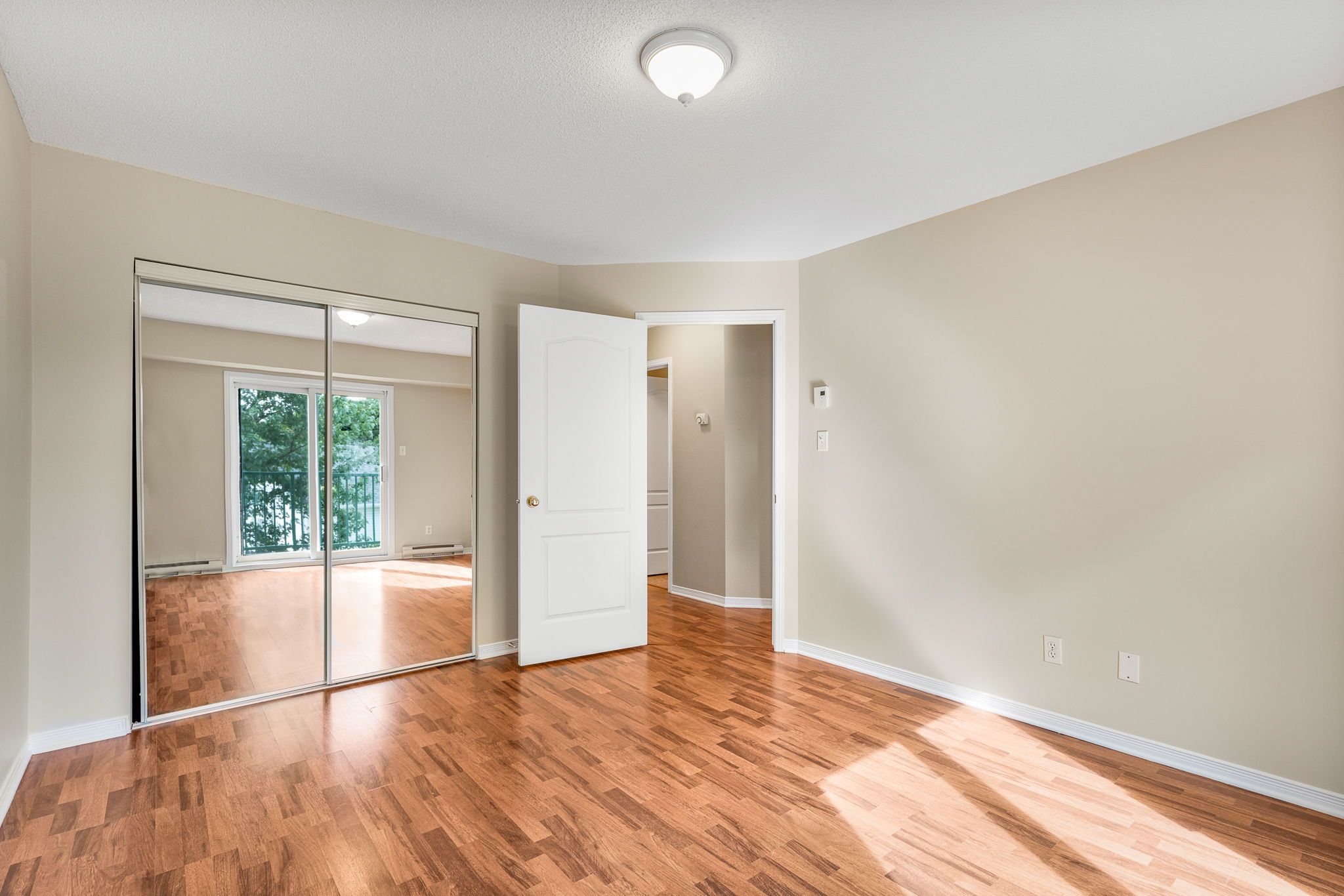 MOVE-IN READY! Welcome to the reputable Place Clement located in heart of Rockland with walking distance to shopping, dining and all amenities. This charming condo gives you a peace of mind lifestyle in lovely and mature neighborhood. Bright upper unit with vaulted ceiling, a full bathroom and two nice size bedrooms with the primary having its own balcony. The kitchen is equipment with newer stainless steel appliances and plenty of cabinetry. Spacious living area with with large windows brings in lots of natural light and easy access to a large west facing balcony perfect for your morning coffee or relaxing in the evening. The spacious laundry area has a window and extra room for storage. This unit also comes with additional exterior storage and one parking spot included.