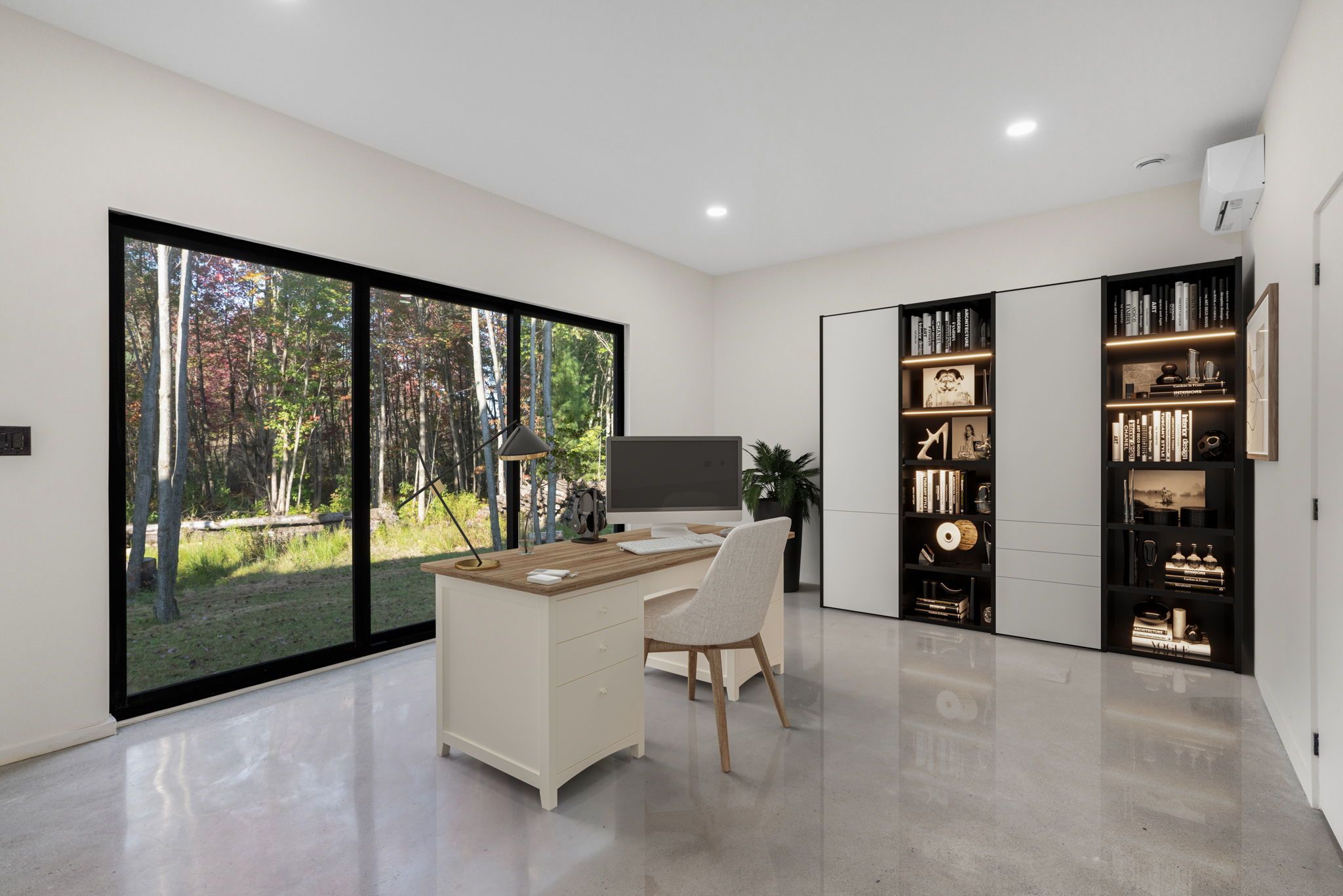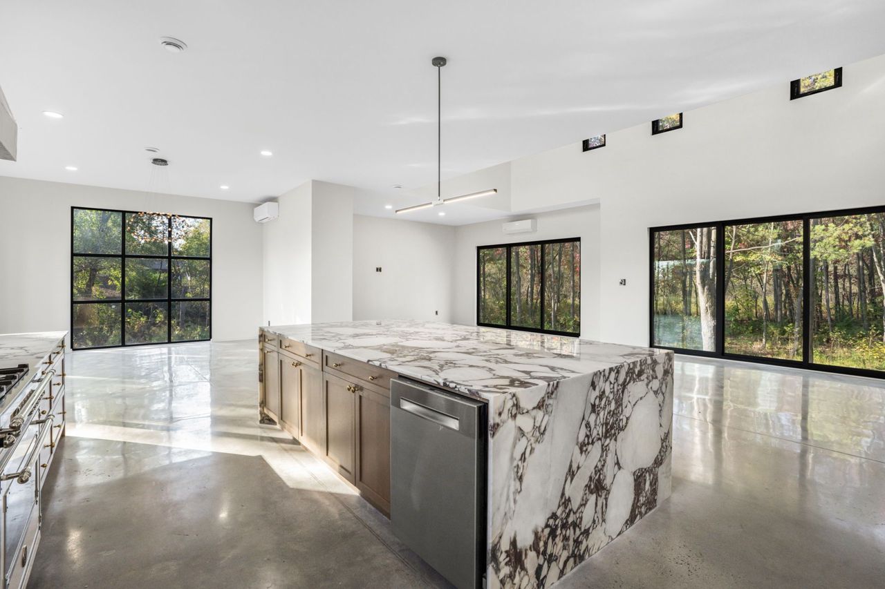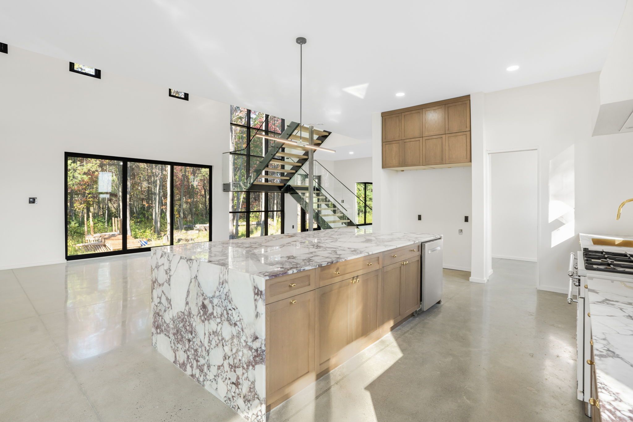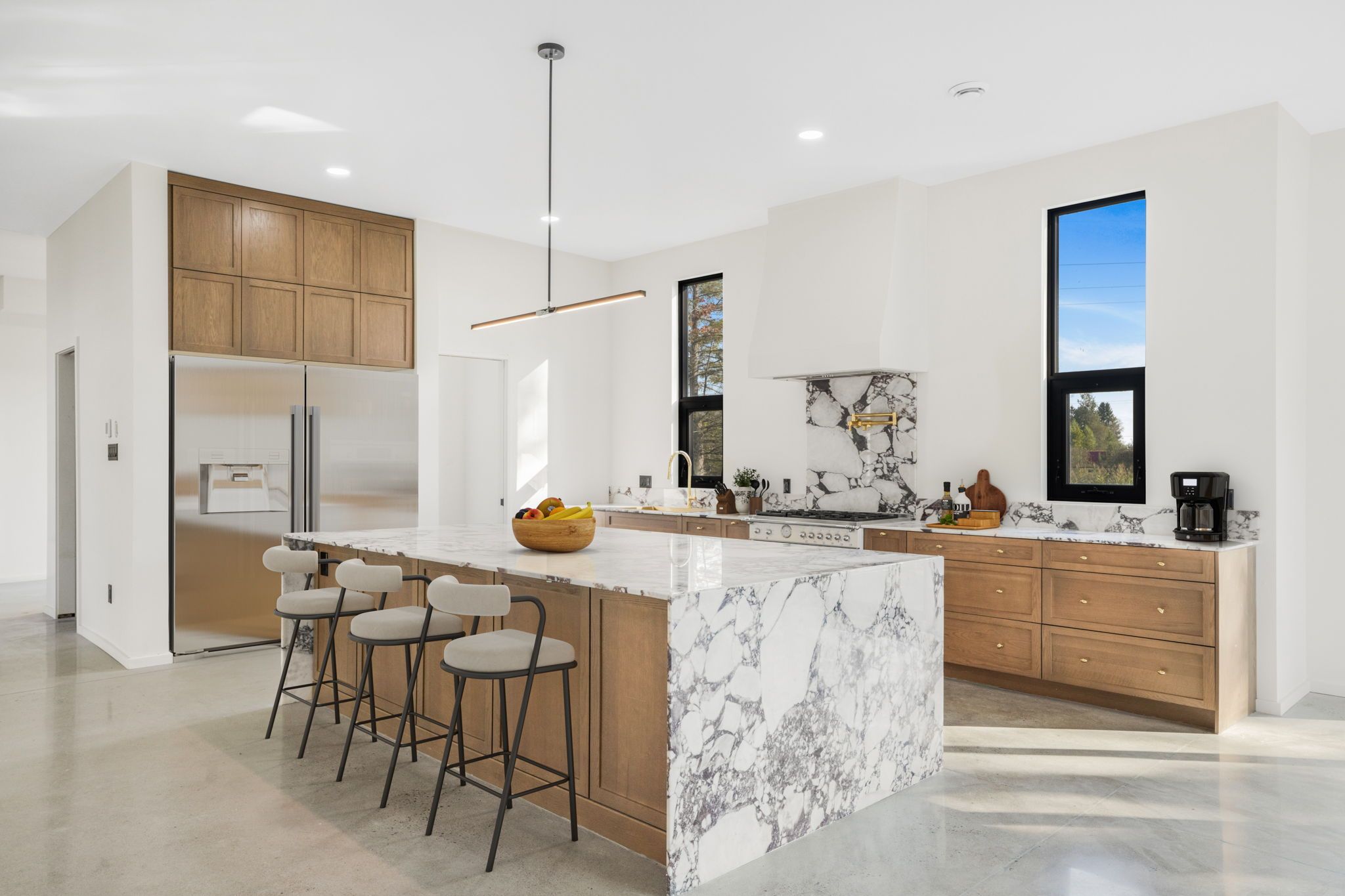 步入这座精美的定制住宅,精致设计与现代舒适在此完美交融。主层通铺的抛光混凝土地面营造出时尚现代的美感,而美食厨房更是令人惊艳。卡拉卡塔大理石台面、Bertazzoni 36英寸燃气灶、Baril水龙头及吊架式注水龙头,让这个厨房兼具实用与格调。宽敞的中岛台和步入式食品储藏室,使其成为款待宾客与备餐的理想空间。