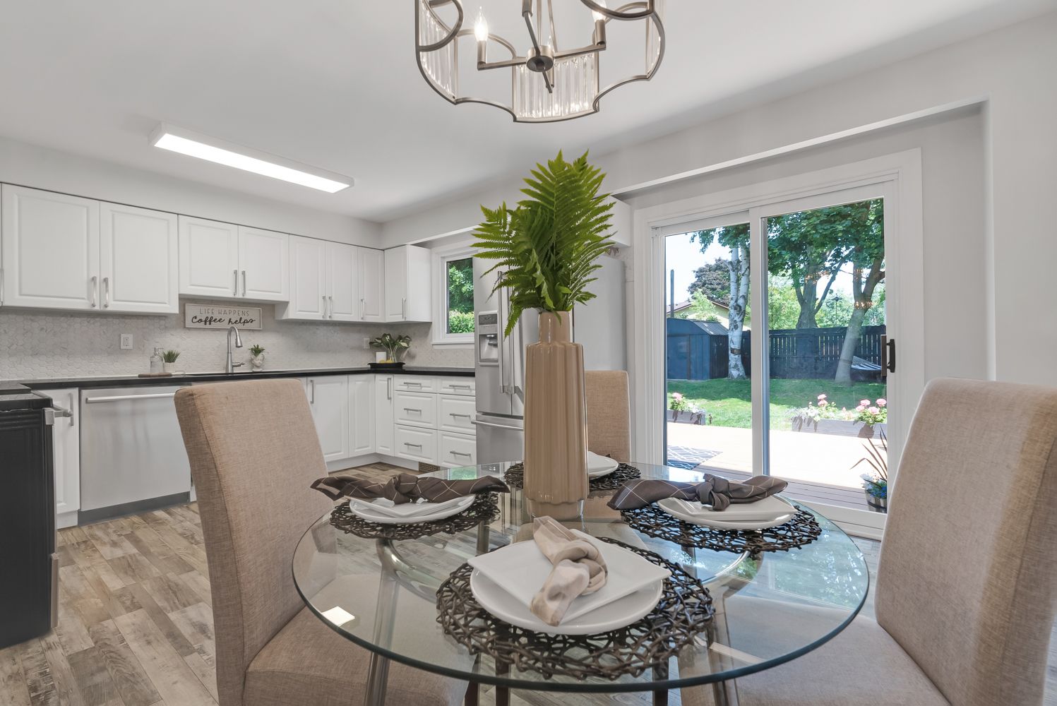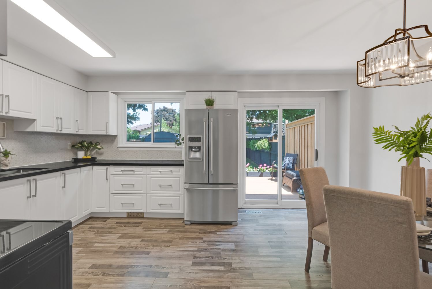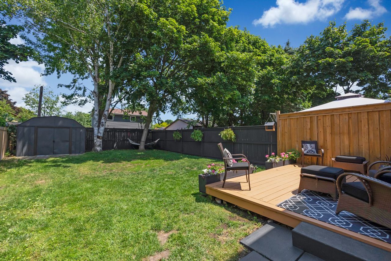 This beautifully updated semi-detached home offers 3+1 Bedrooms, a separate office, 1.5 Bathrooms, a bright and airy Eat-In Kitchen, large Living Room and Finished Basement! Walkout to a deck in a fully fenced private yard with perennial gardens, mature trees and garden shed. Just Move in and enjoy! New soffits, fascia and eaves, new entry door, vinyl siding and fencing in the backyard. Newly finished basement with recreation room, office and 4th bedroom. Freshly painted top to bottom. High-quality vinyl throughout the main level & 4pc Bath. Updated Bathrooms. Updated kitchen with custom backsplash, quartz countertops and brand new Maytag fridge with ice/water dispenser & stove with air fry control. Built-In Dishwasher and Microwave Range. All new light fixtures and ceiling fans. Rooftop shingles are newer and in good shape. Furnace 2011, A/C 2018, 100 AMP Breaker Panel, HWT 2010 (rental). Wonderful family-friendly neighbourhood close to schools, transit, shopping, Hospital & HWY 401.Open House Sat June 24 & Sun June 25 from 2PM - 4PM