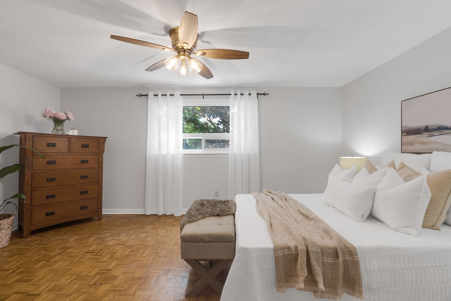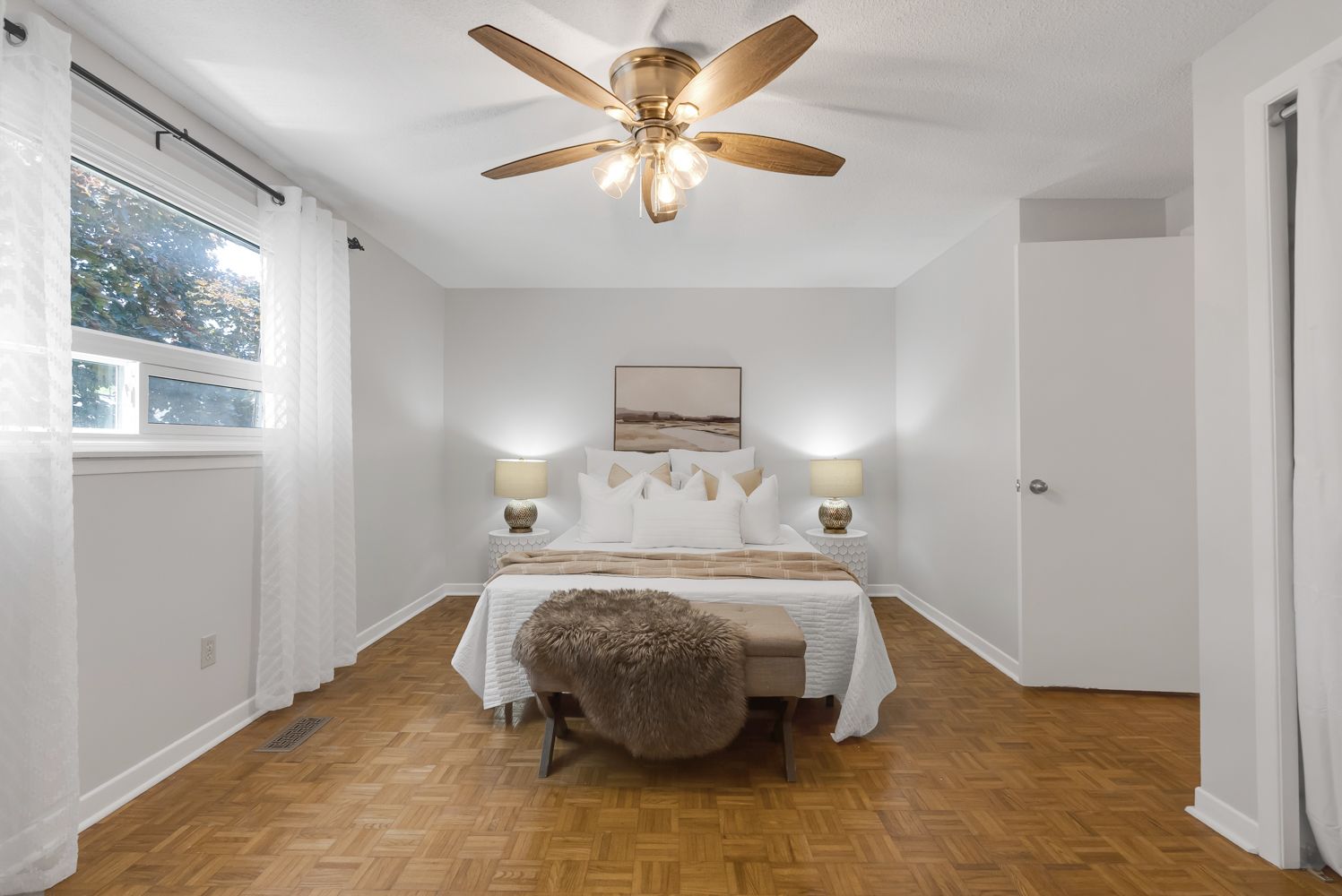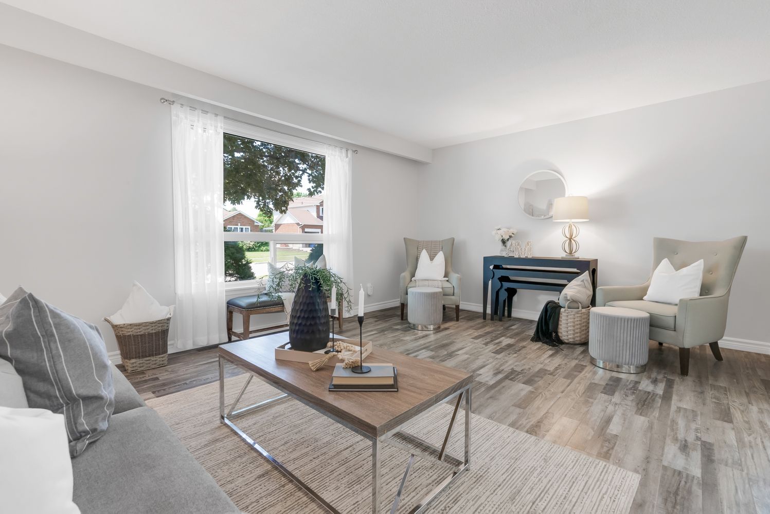 This beautifully updated semi-detached home offers 3+1 Bedrooms, a separate office, 1.5 Bathrooms, a bright and airy Eat-In Kitchen, large Living Room and Finished Basement! Walkout to a deck in a fully fenced private yard with perennial gardens, mature trees and garden shed. Just Move in and enjoy! New soffits, fascia and eaves, new entry door, vinyl siding and fencing in the backyard. Newly finished basement with recreation room, office and 4th bedroom. Freshly painted top to bottom. High-quality vinyl throughout the main level & 4pc Bath. Updated Bathrooms. Updated kitchen with custom backsplash, quartz countertops and brand new Maytag fridge with ice/water dispenser & stove with air fry control. Built-In Dishwasher and Microwave Range. All new light fixtures and ceiling fans. Rooftop shingles are newer and in good shape. Furnace 2011, A/C 2018, 100 AMP Breaker Panel, HWT 2010 (rental). Wonderful family-friendly neighbourhood close to schools, transit, shopping, Hospital & HWY 401.Open House Sat June 24 & Sun June 25 from 2PM - 4PM